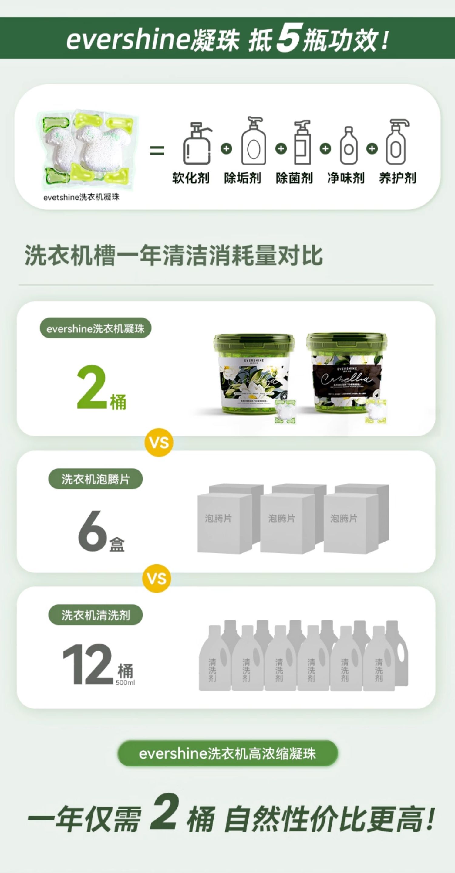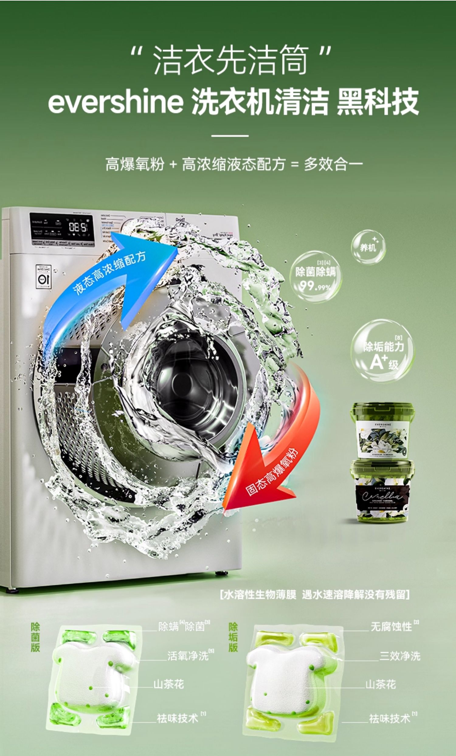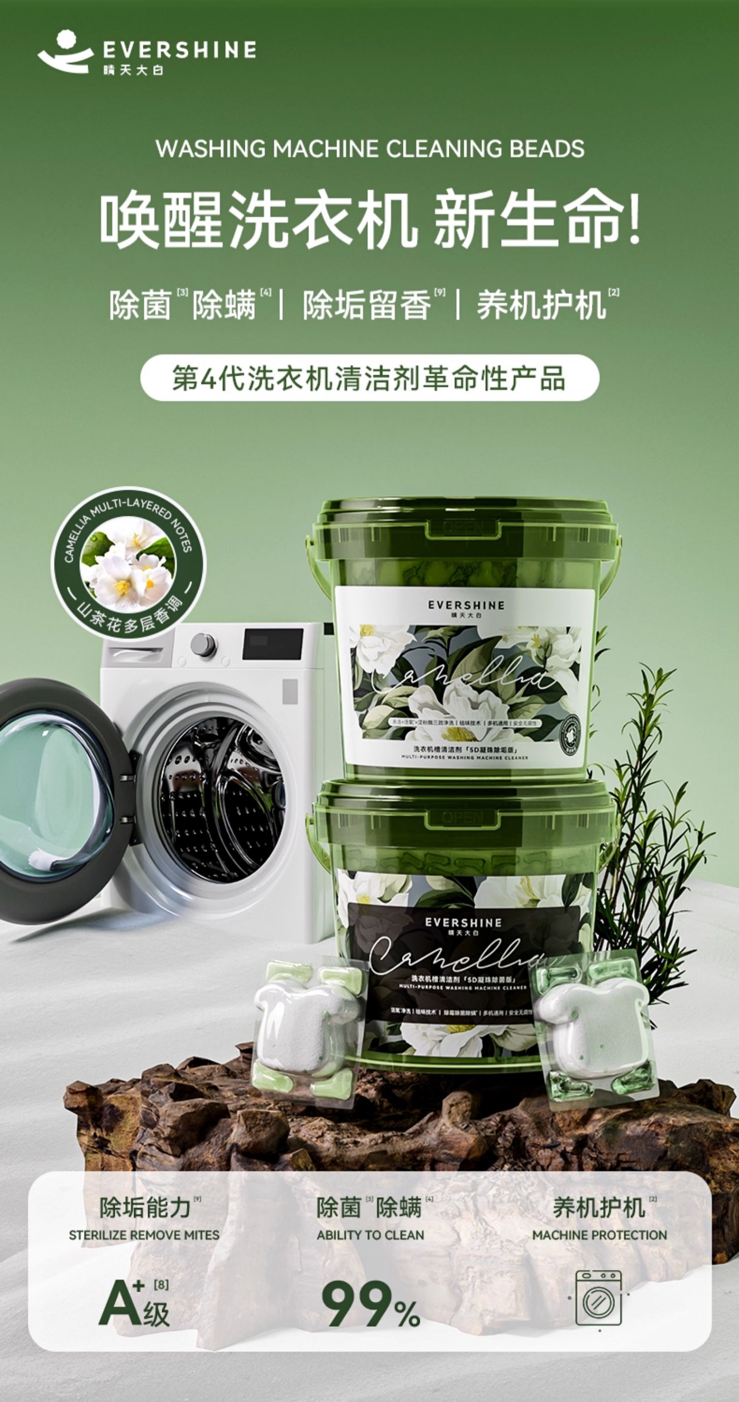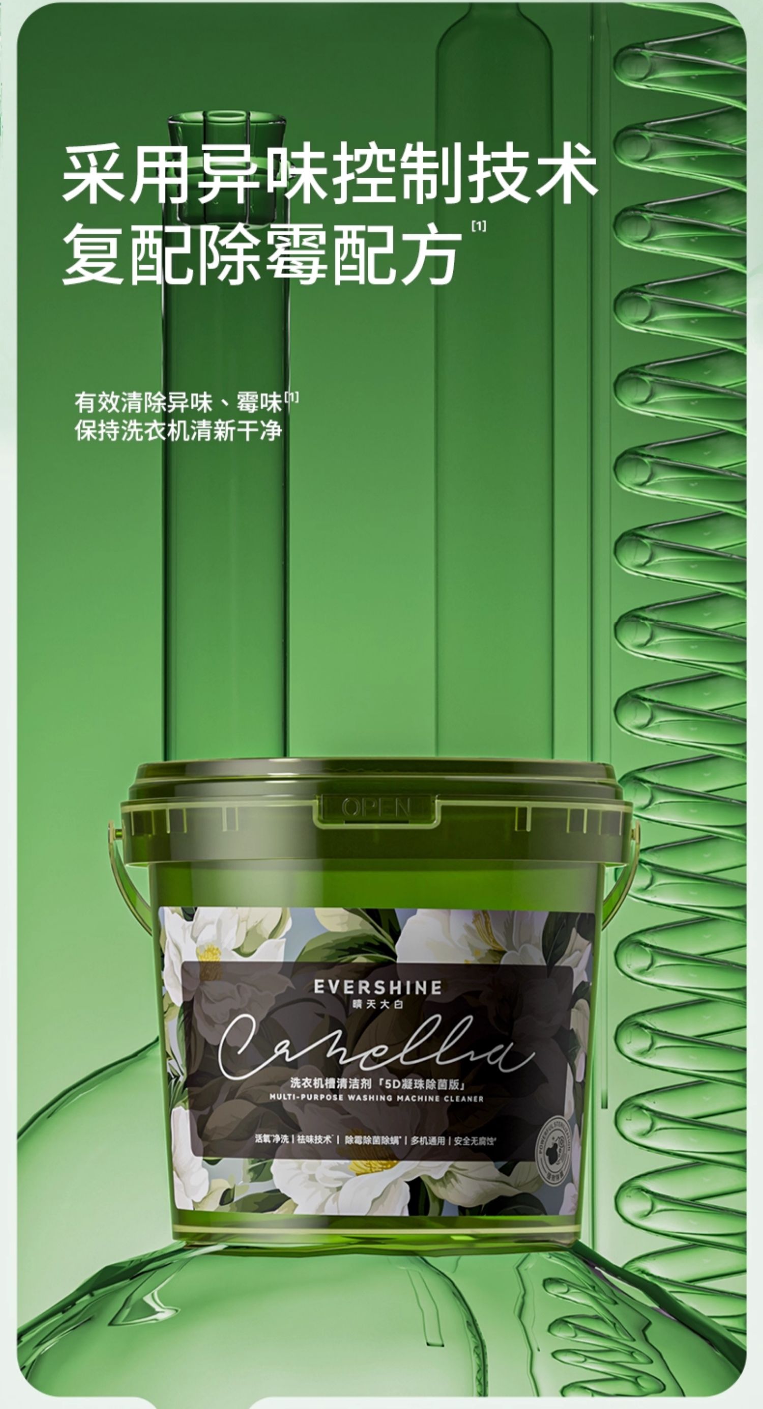 evershine 洗衣机清洁剂强力除垢杀菌 山茶花-除菌版 30g*12颗 曜石黑(单位:瓶)