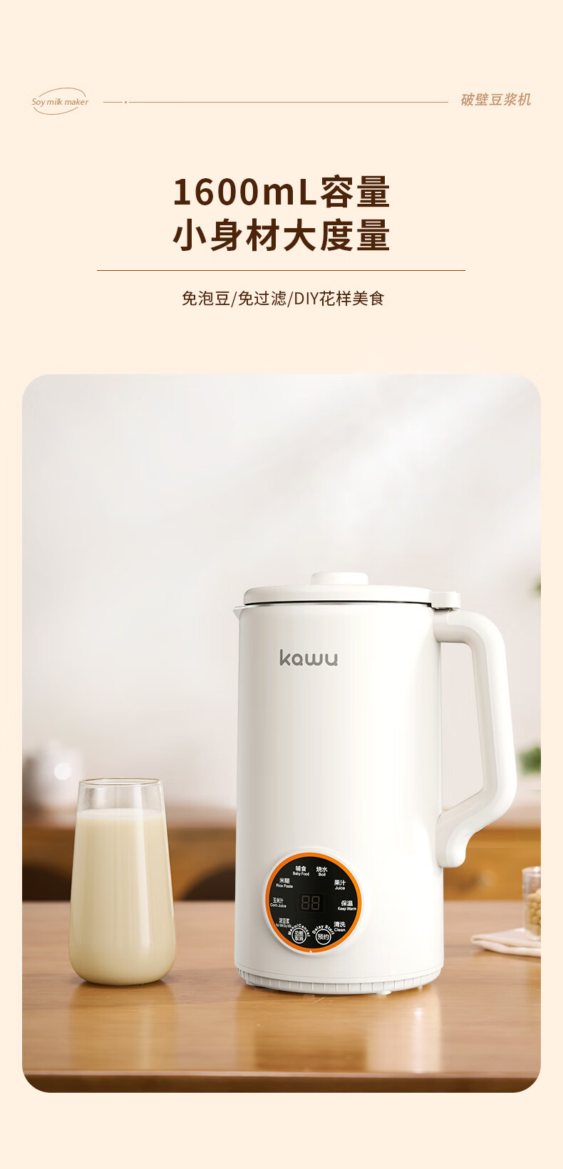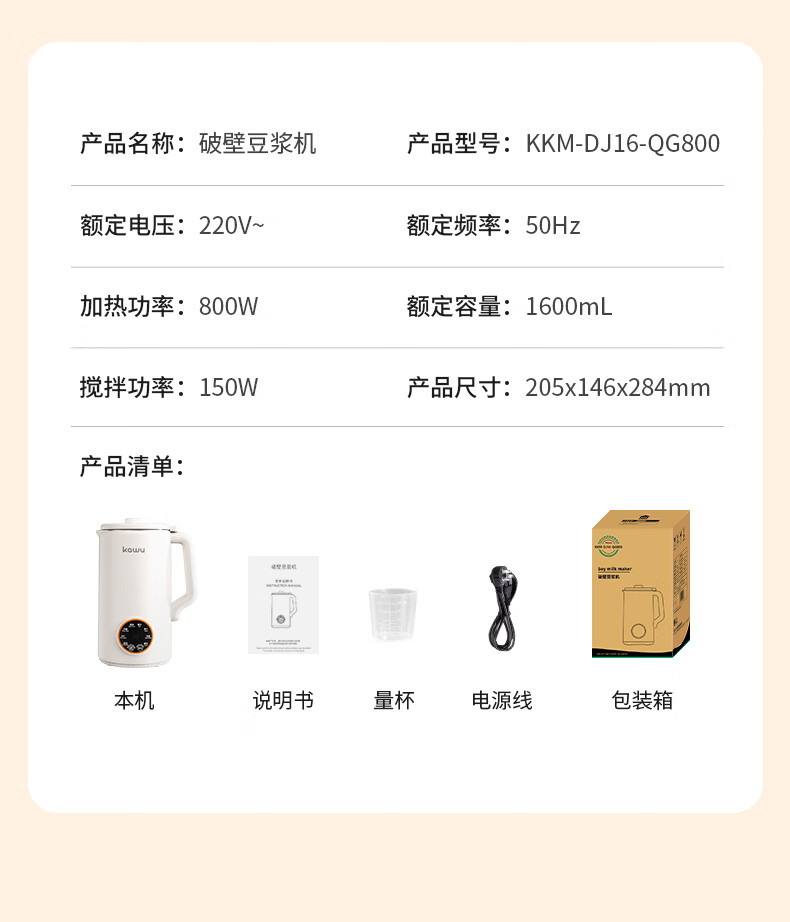 卡屋(kawu) 智能加热破壁豆浆机 KKM-DJ16-QG800 1.6升 白色(单位:台)