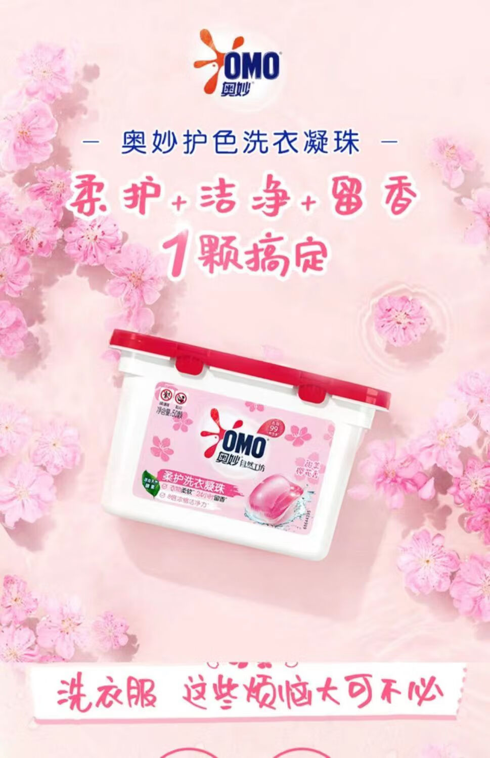 奥妙(OMO) 洗衣凝珠 樱花 50颗*2盒 粉色(单位:组)