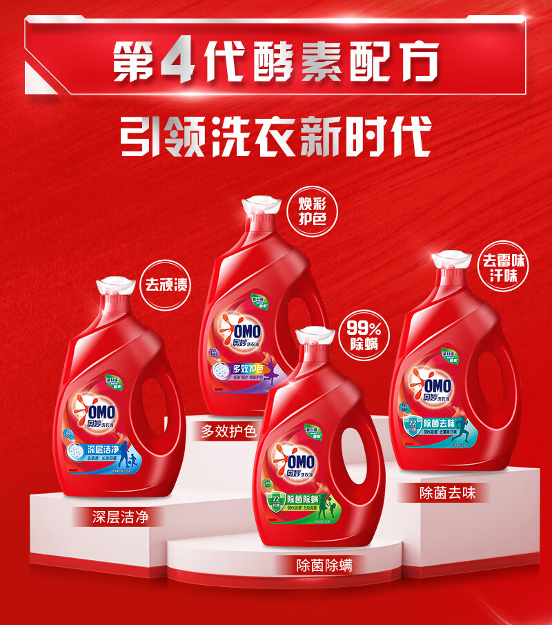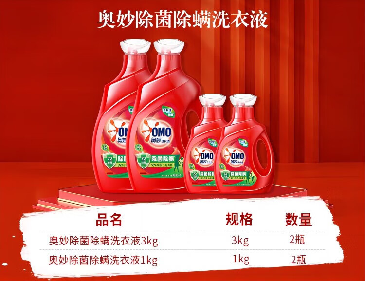 奥妙(OMO) 洗衣液 除菌除螨 3kg*2+1kg*2 红色(单位:组)