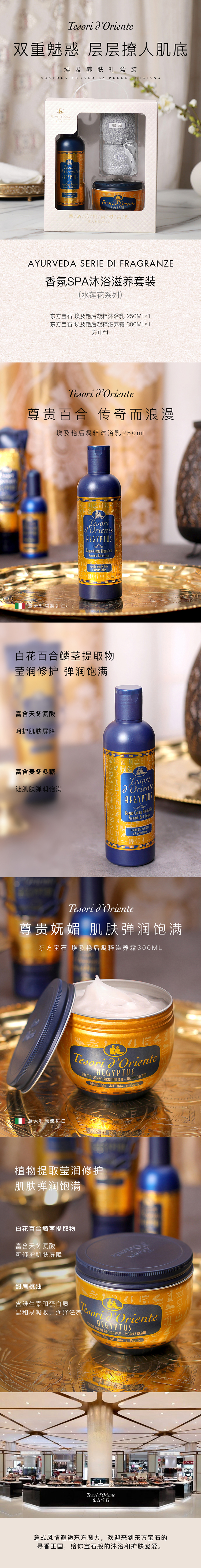 东方宝石(Tesori D’oriente) 淋浴滋养套装 埃及艳后 550ml 白色(单位:盒)