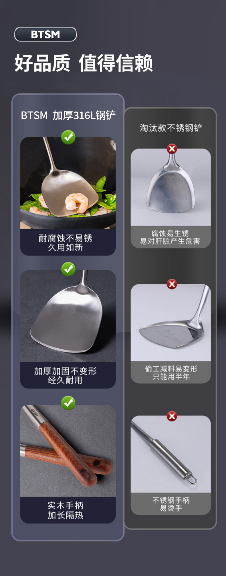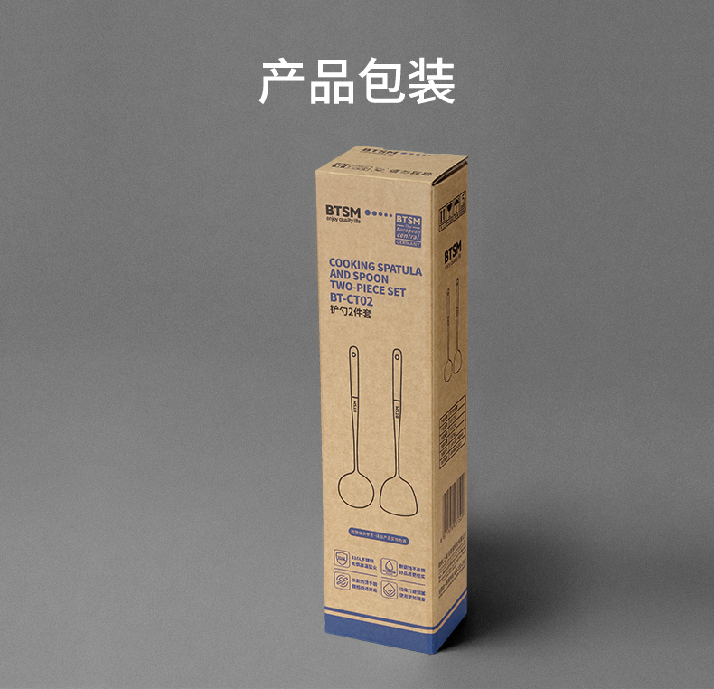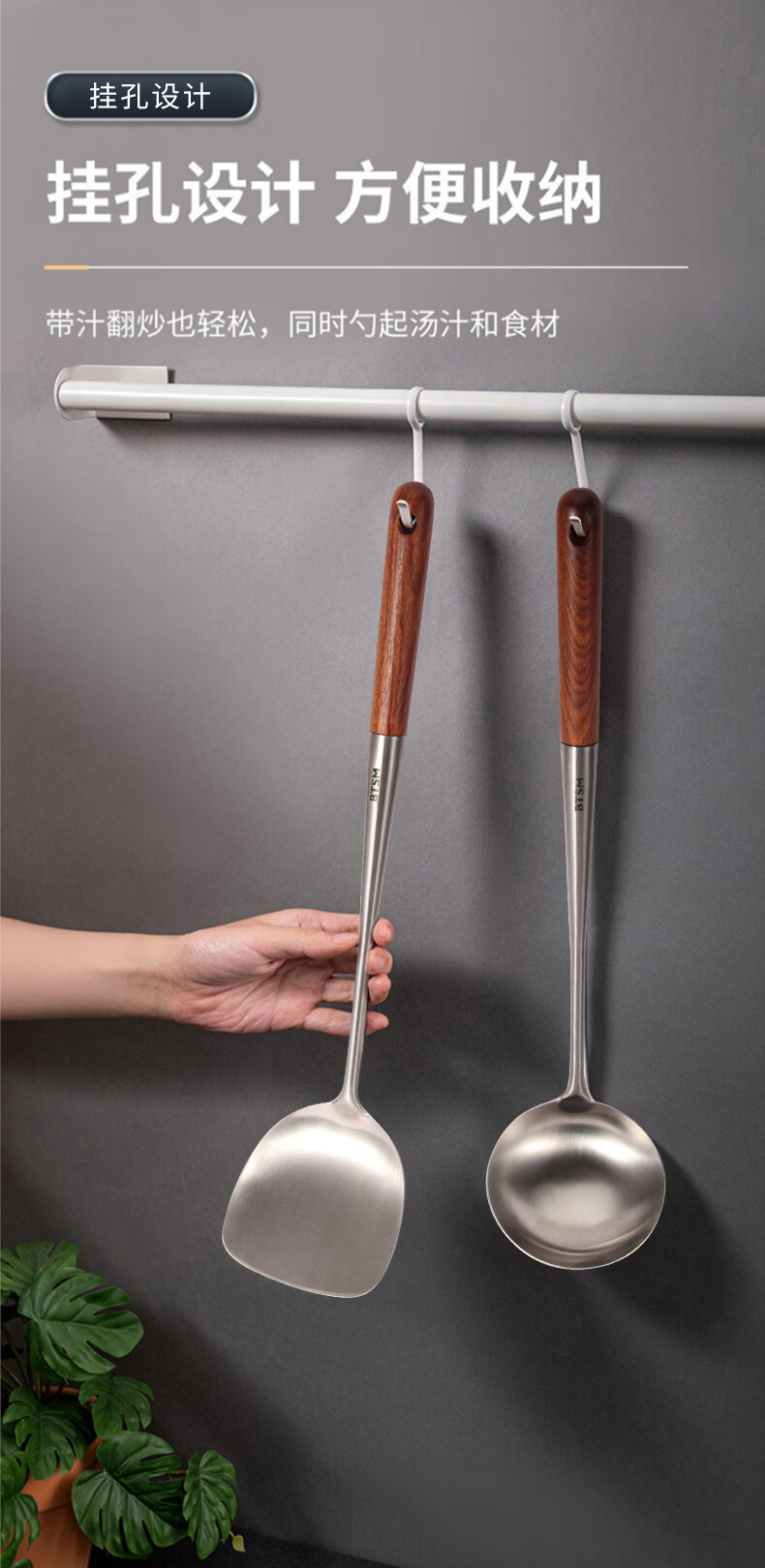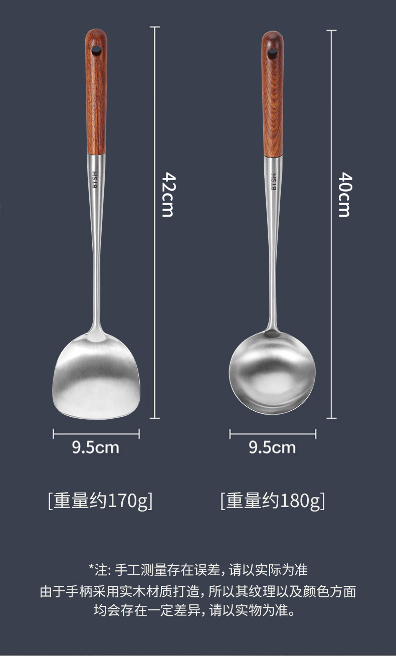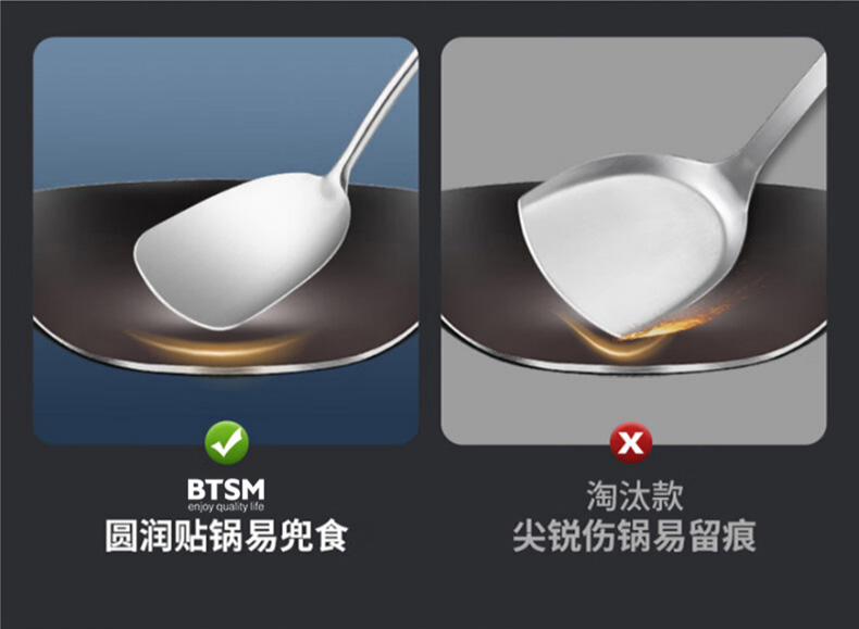 BTSM 加厚加长316L不锈钢铲勺 锅铲+汤勺 2件套 BT-CT02 产品净重:0.35kg 银色(单位:套)