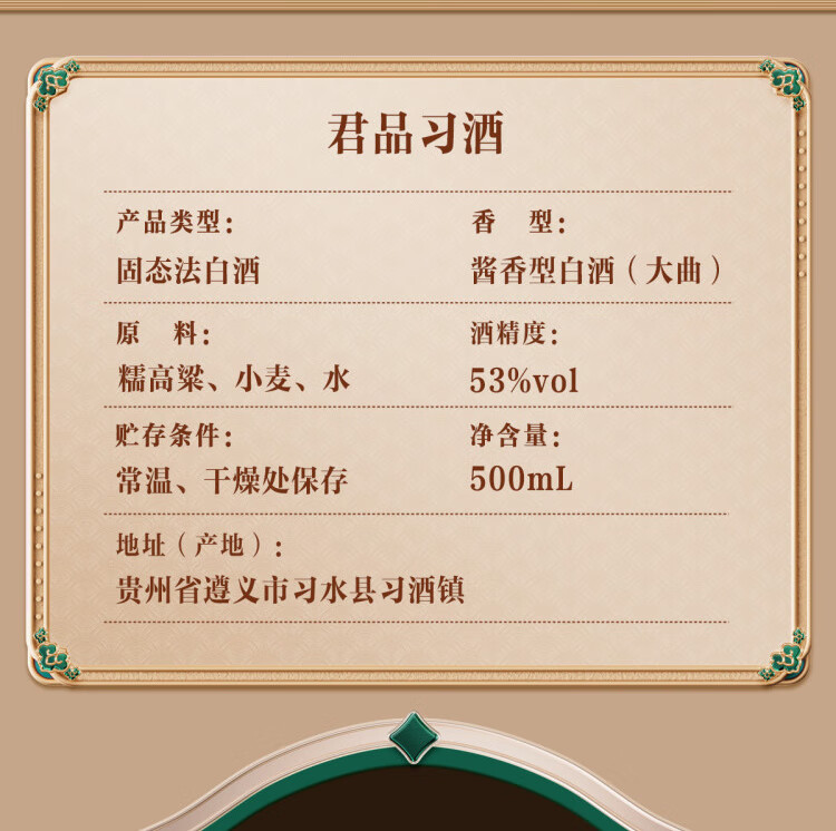 习酒 酱香型白酒 君品 500ml*1瓶 混色(单位:瓶)