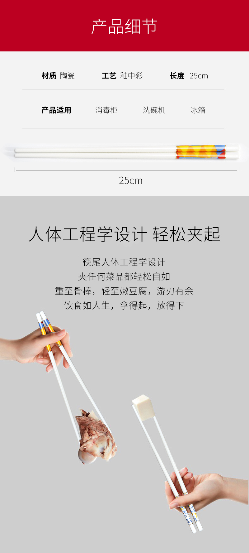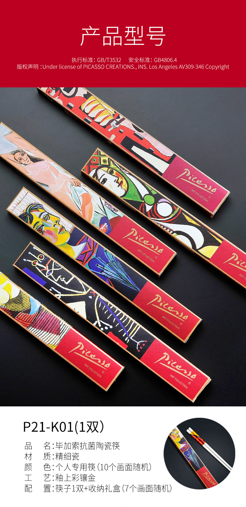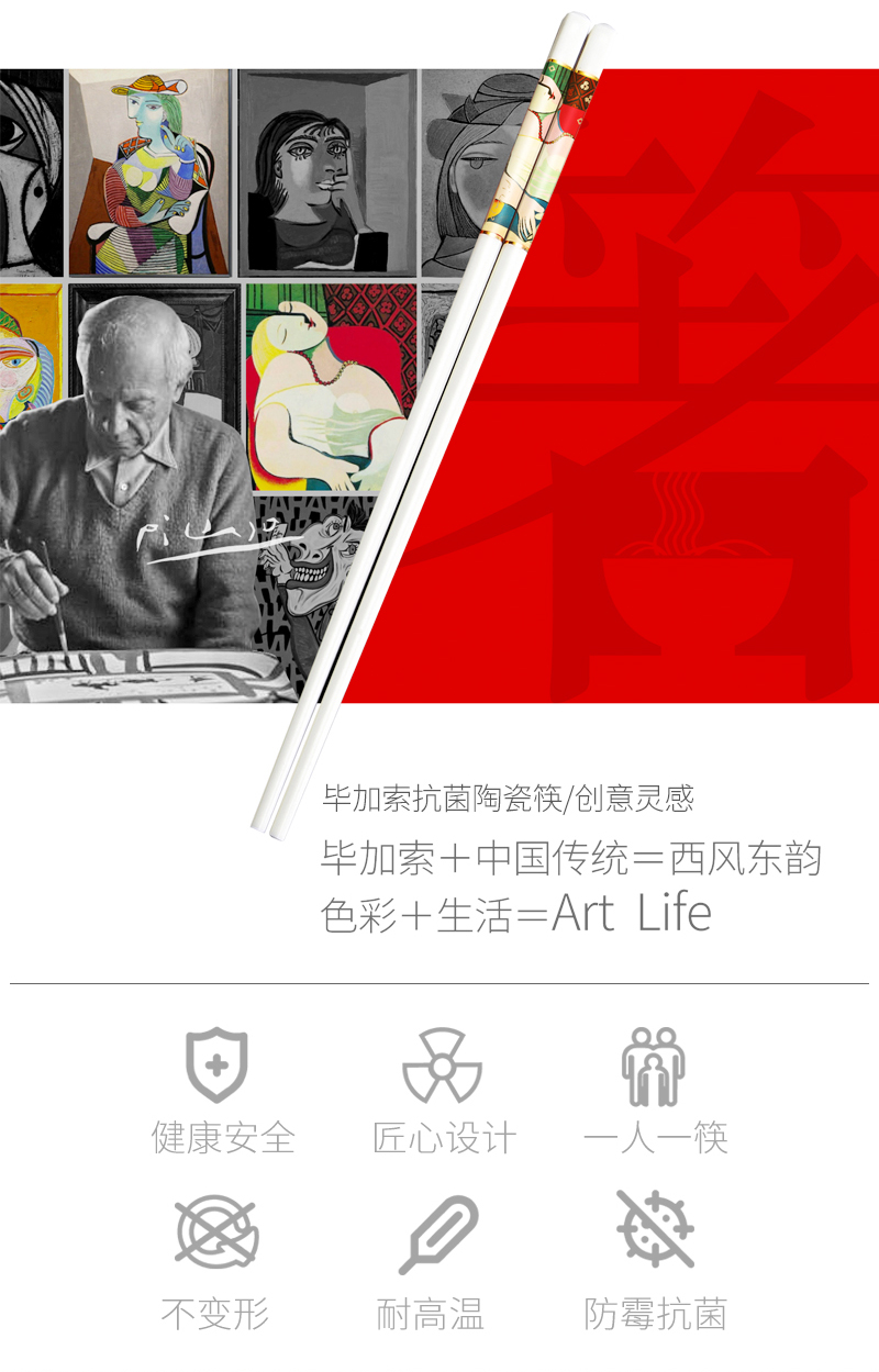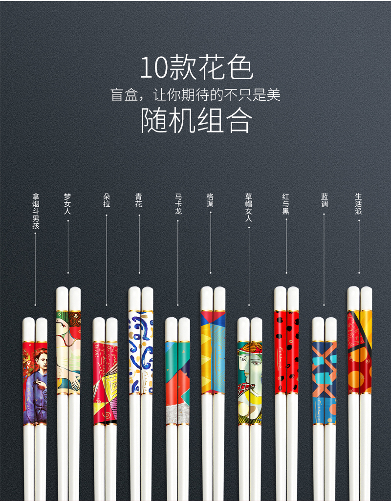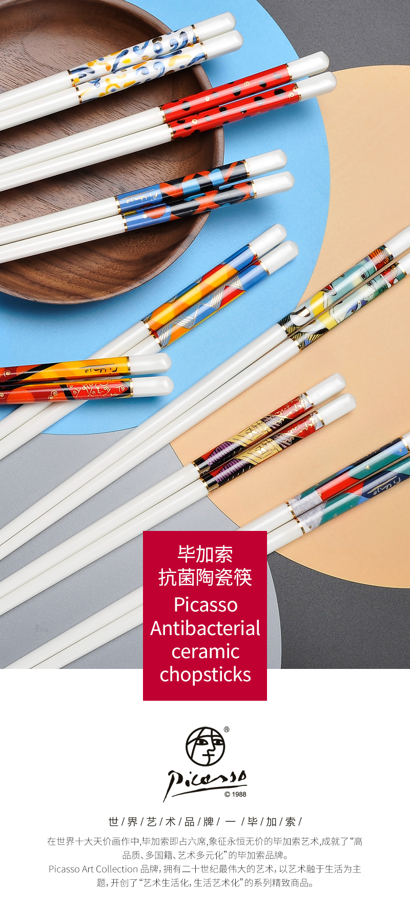 毕加索(PICASSO) 抗菌陶瓷筷 P21-K01 长25cm 混色(单位:套)