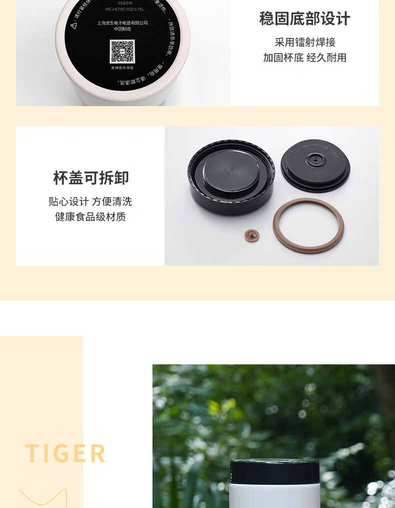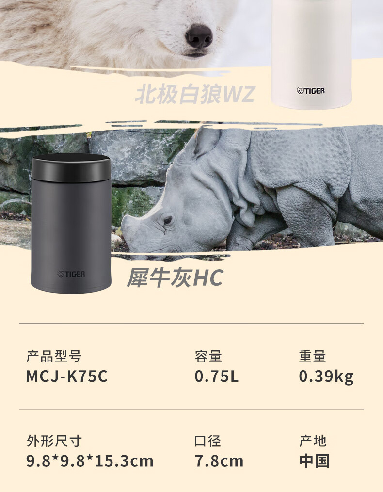 虎牌(TIGER) 不锈钢闷烧杯 MCJ-K75C 750ml 本白色(单位:个)
