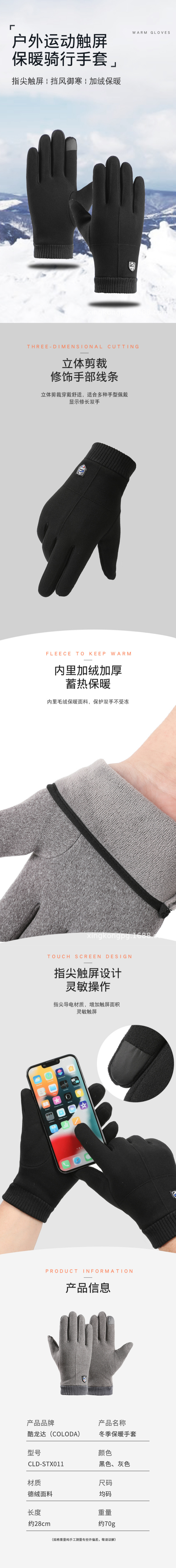酷龙达(Coloda) 保暖手套触屏防寒手套 CLD-STX011 均码 混色(单位:双)
