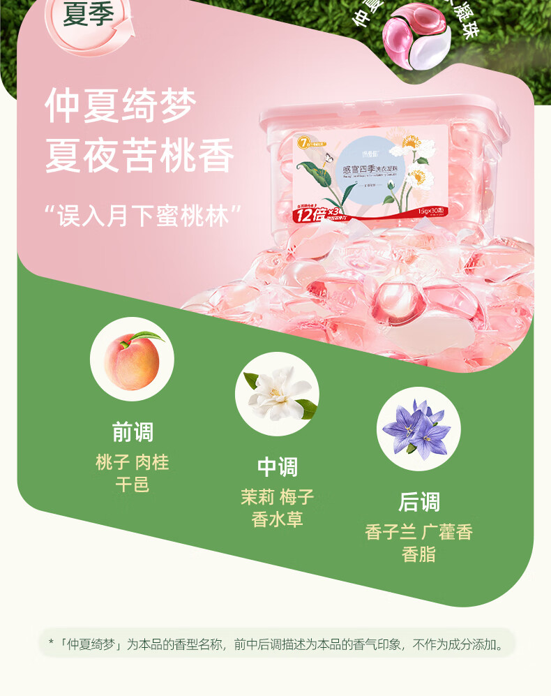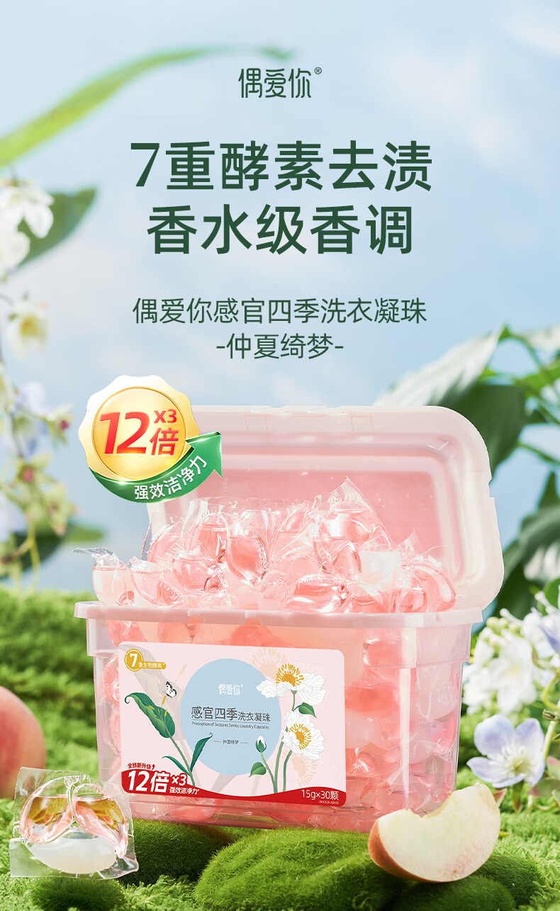 偶爱你 偶爱你感观四季洗衣凝珠 仲夏绮梦 15g*30颗 (2盒装) 粉色(单位:组)