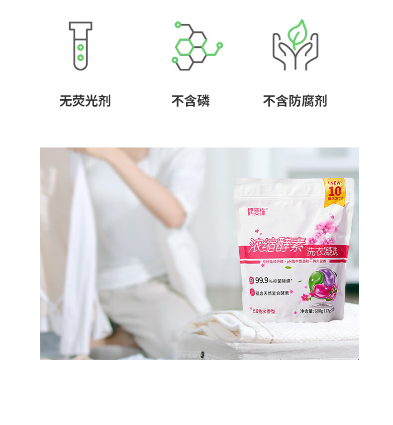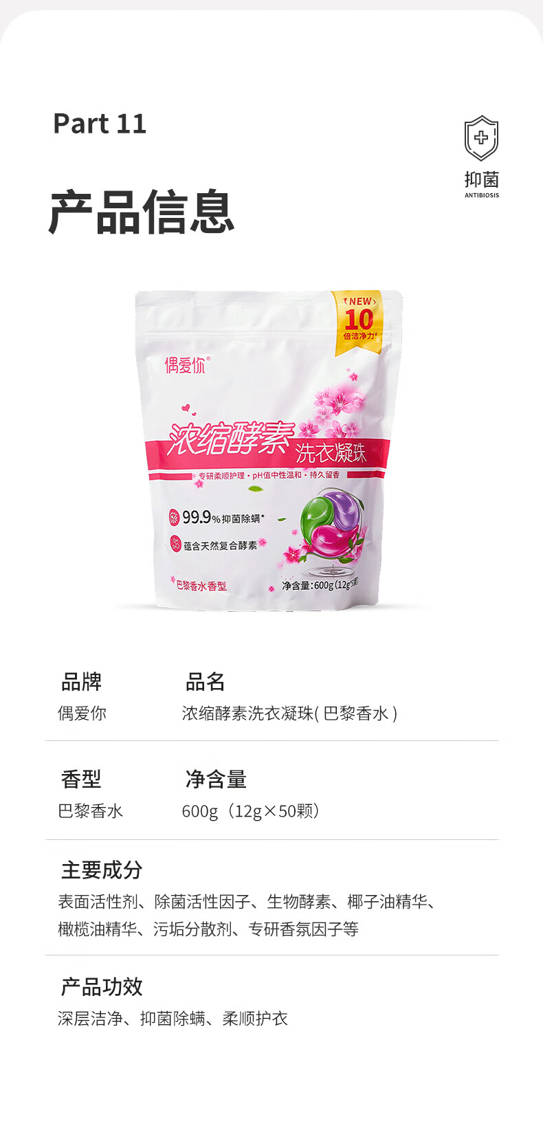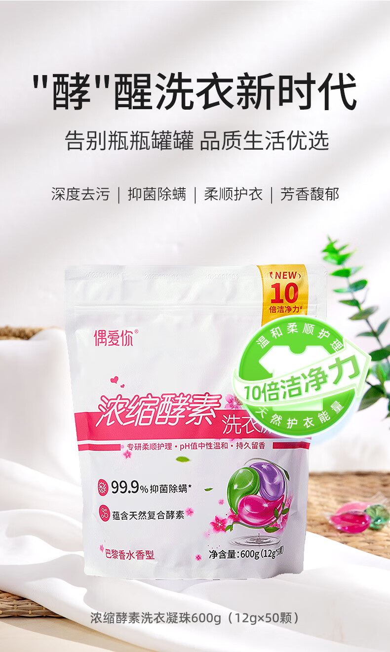 偶爱你 浓缩酵素洗衣凝珠 巴黎香水 12g*50颗*3袋 粉色(单位:组)