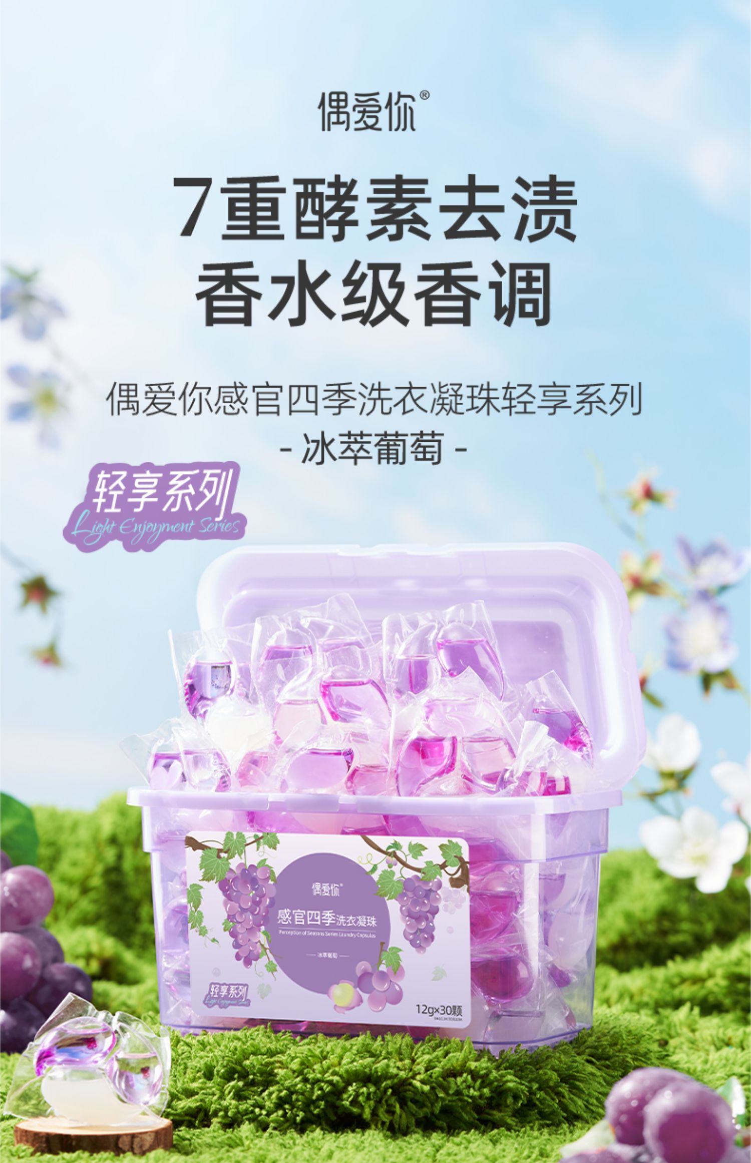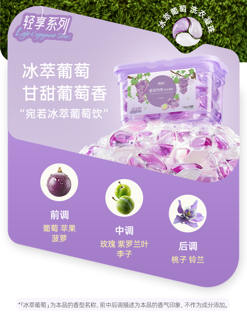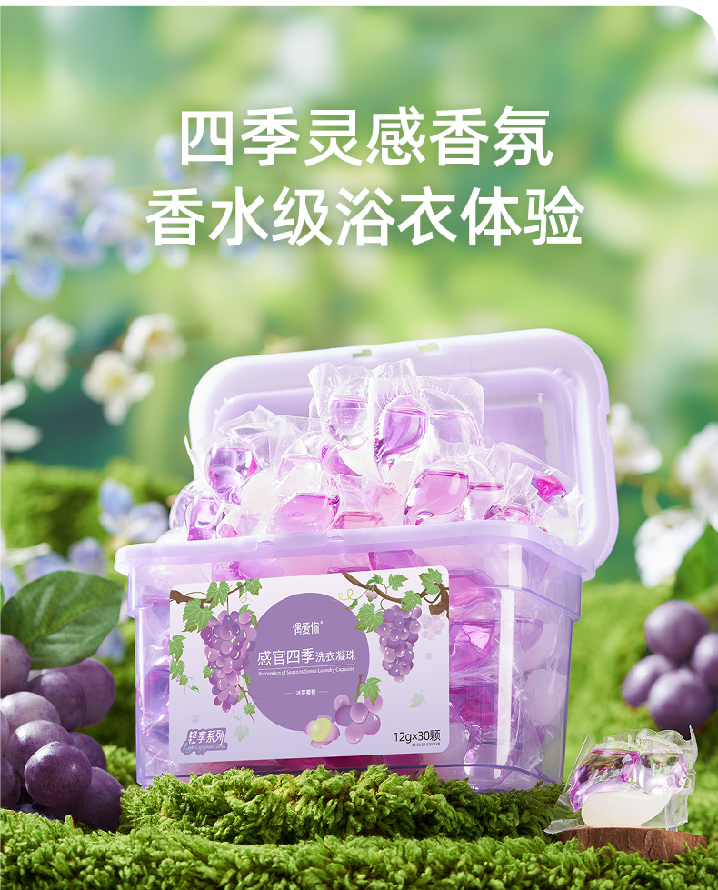 偶爱你 感官四季洗衣凝珠 冰萃葡萄 12g*30颗*2盒 紫色(单位:组)