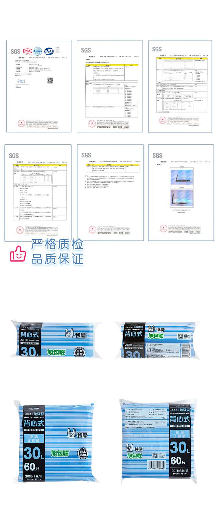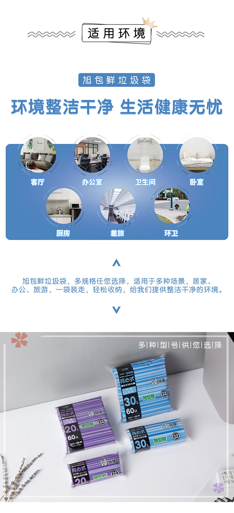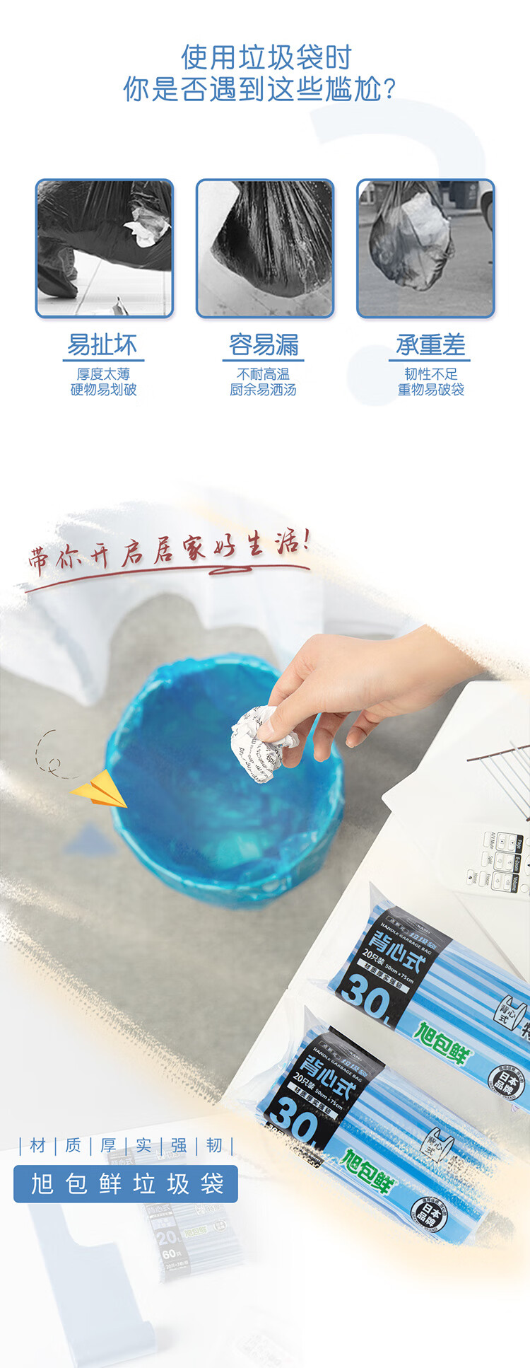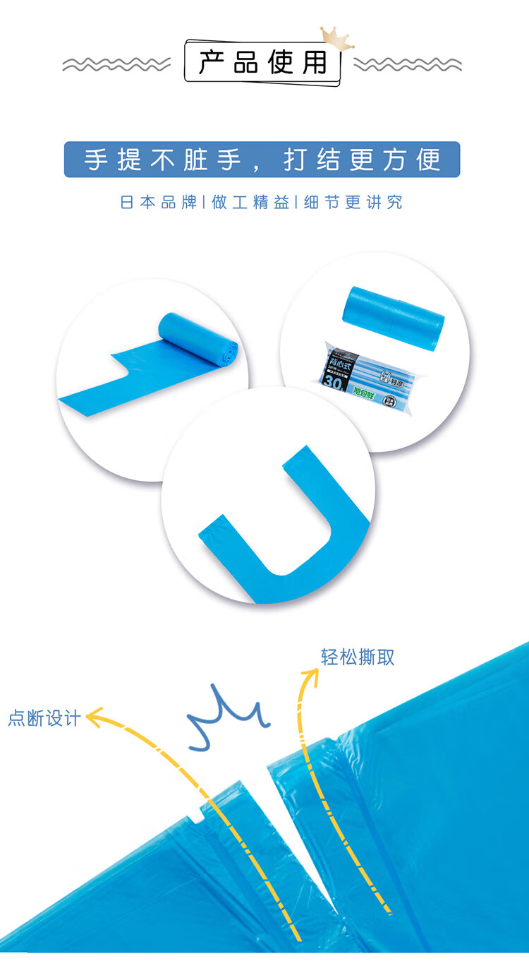旭包鲜 ®30L背心式垃圾袋 50cm×75cm 3卷60只*3组(共180只) 蓝色(单位:组)