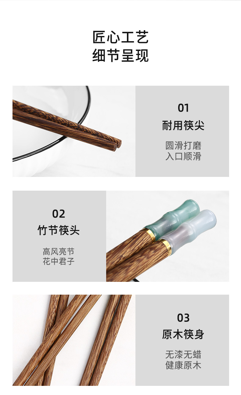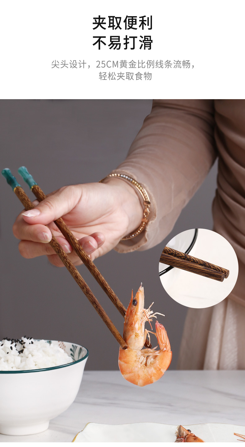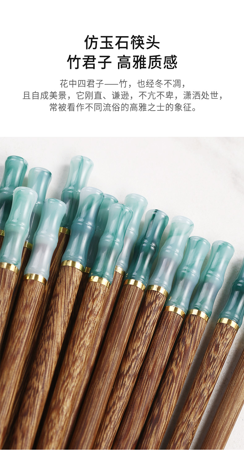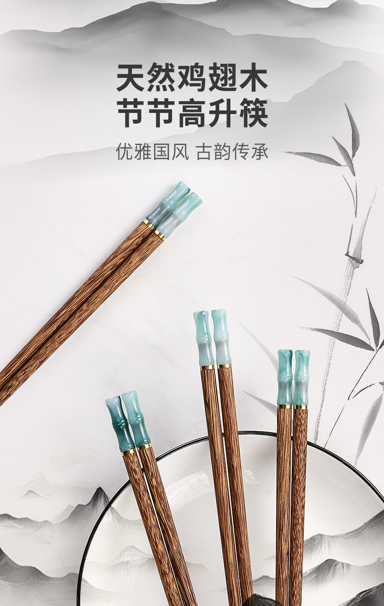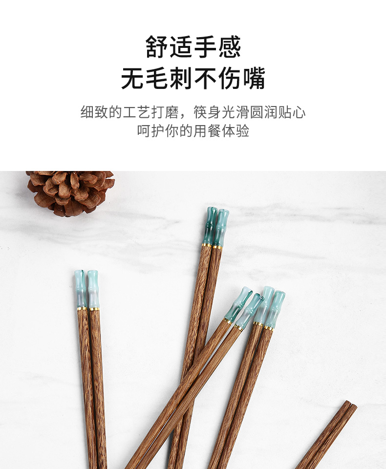 原森太 鸡翅木圆筷接富贵竹节绿 02.YSTKZ5082 5双装(25*0.75*0.47CM) 棕色(单位:组)