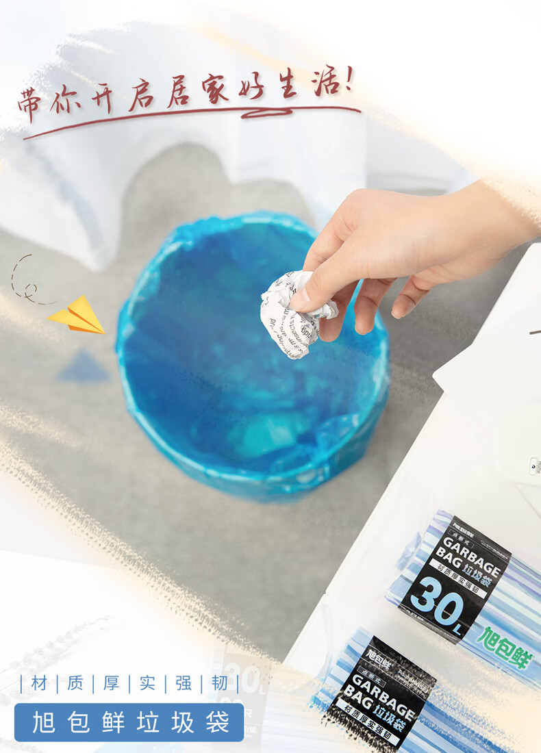旭包鲜 ®30L点断式垃圾袋 50cm*60cm 3巻装90只*5组(共450只) 蓝色(单位:组)