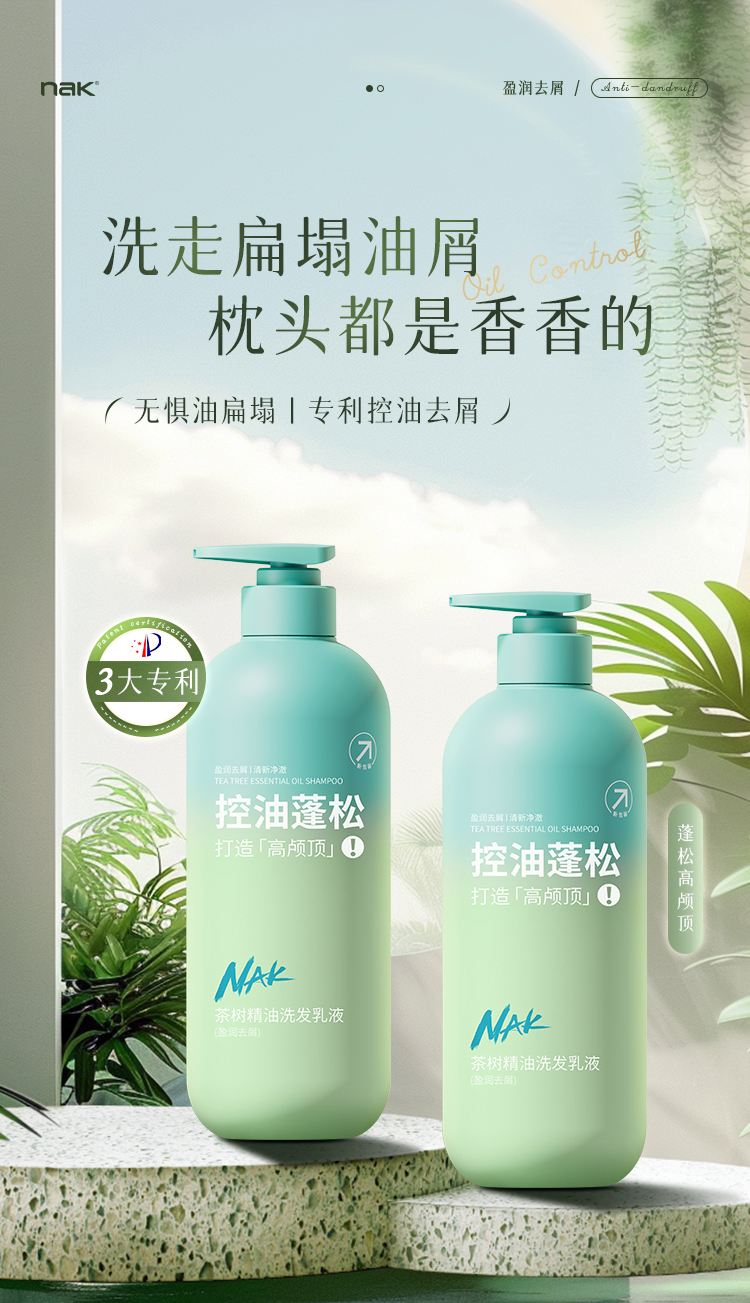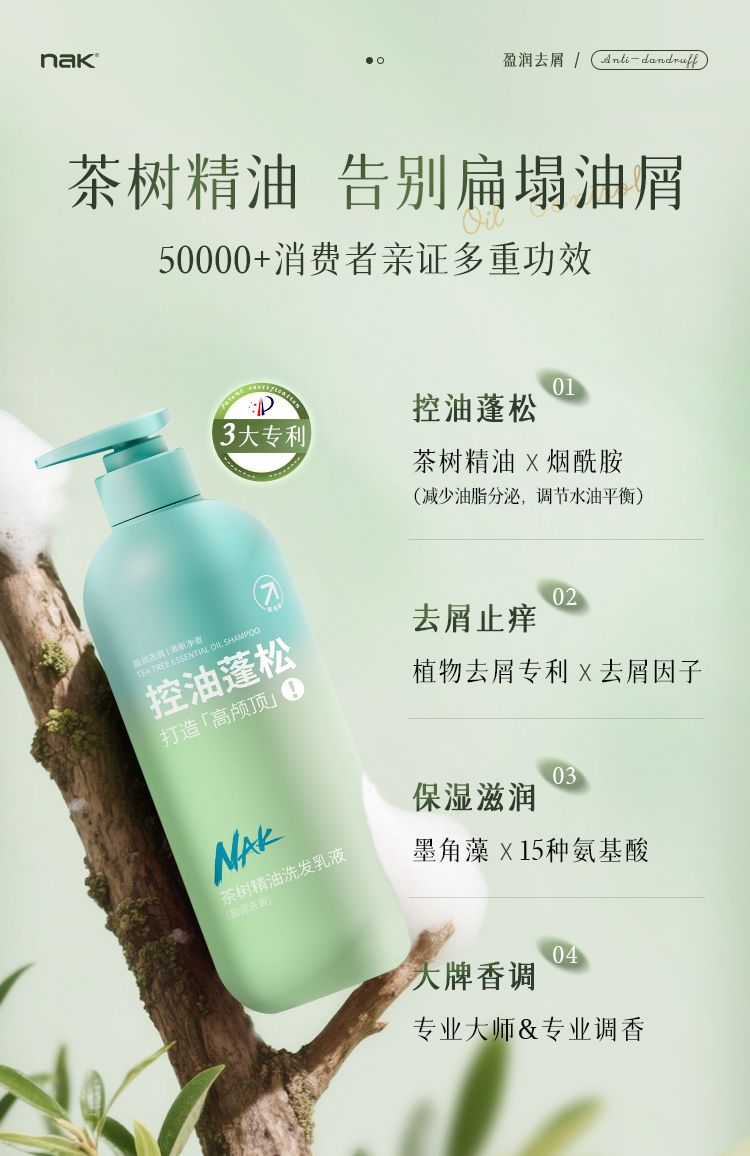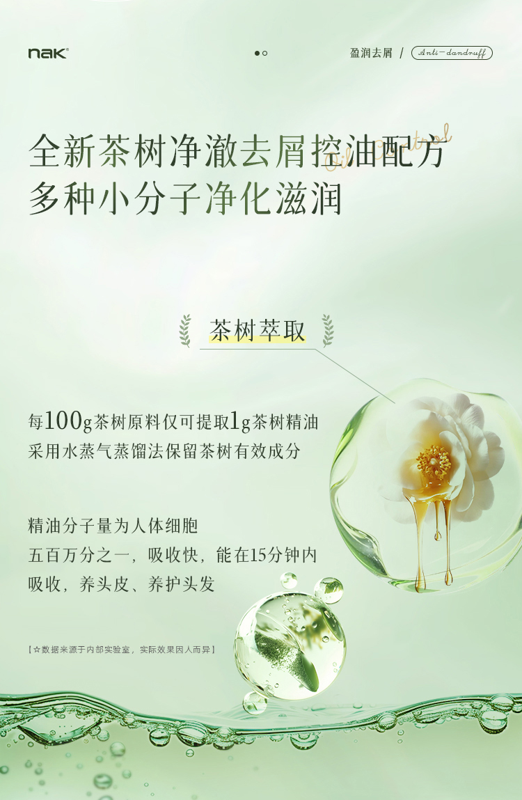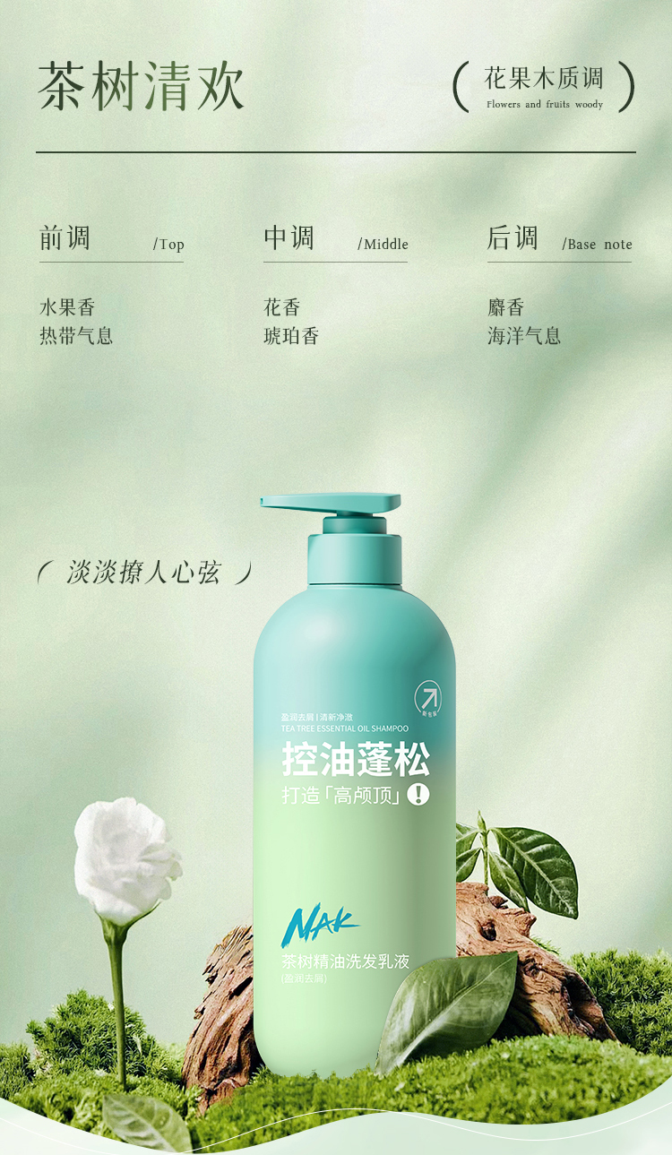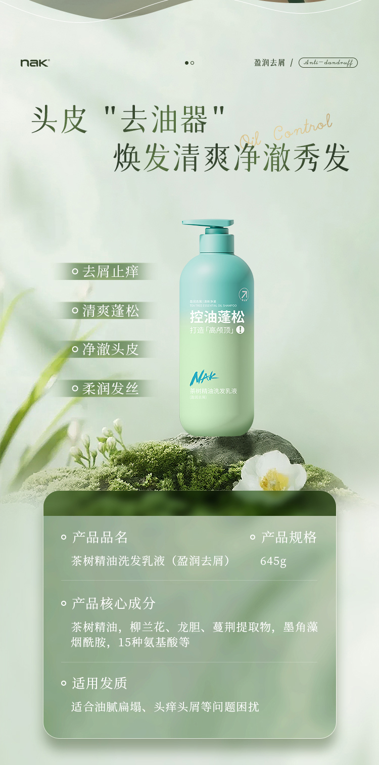 Nak 茶树精油洗发乳液 盈润去屑止痒控油持久蓬松丝滑柔顺男女通用 b02c-胖东来款 645g 渐变绿(单位:瓶)