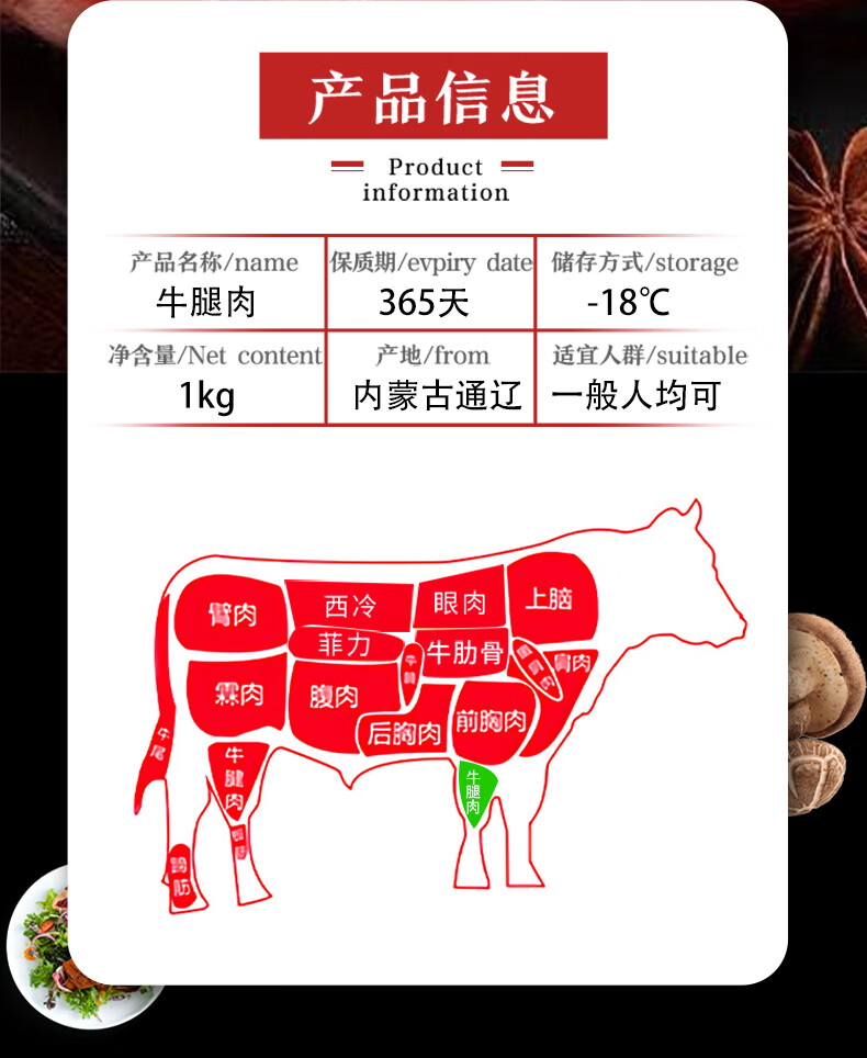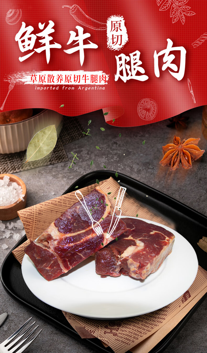沙漠甜心 内蒙古大草原散养原切无添加 牛腿肉 1kg/袋 红色(单位:袋)