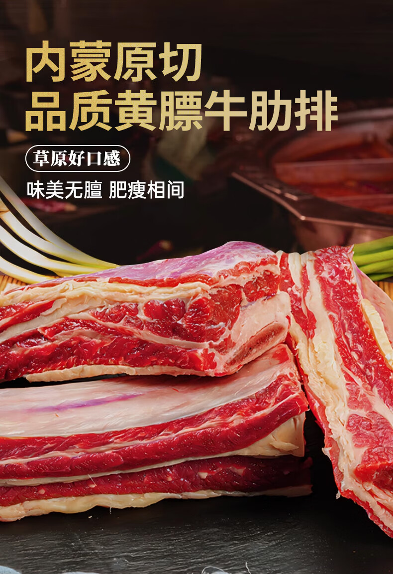 沙漠甜心 内蒙古大草原散养原切无添加 牛肋排 1.5kg/袋 红色(单位:袋)