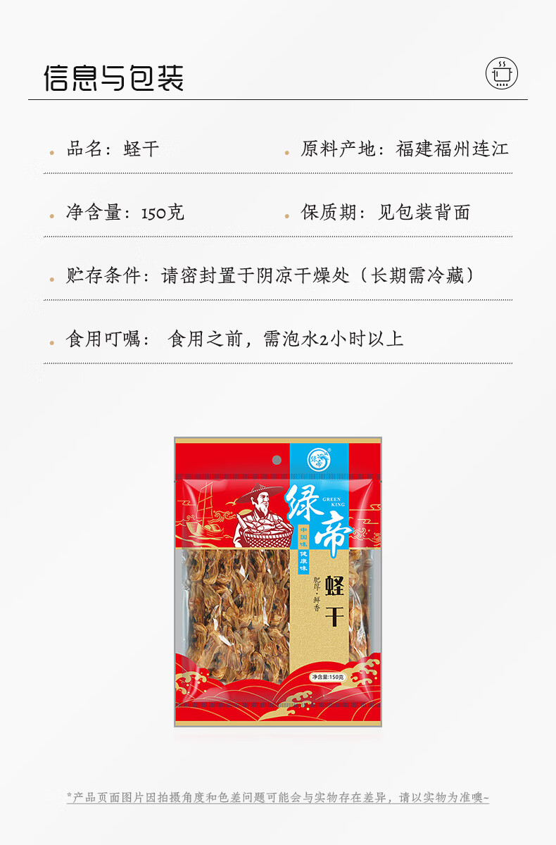 绿帝(GREEN KING) 海鲜干货 蛏干 150g 混色(单位:袋)