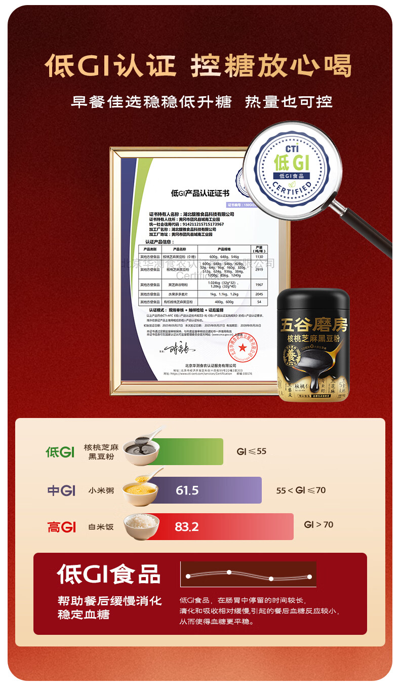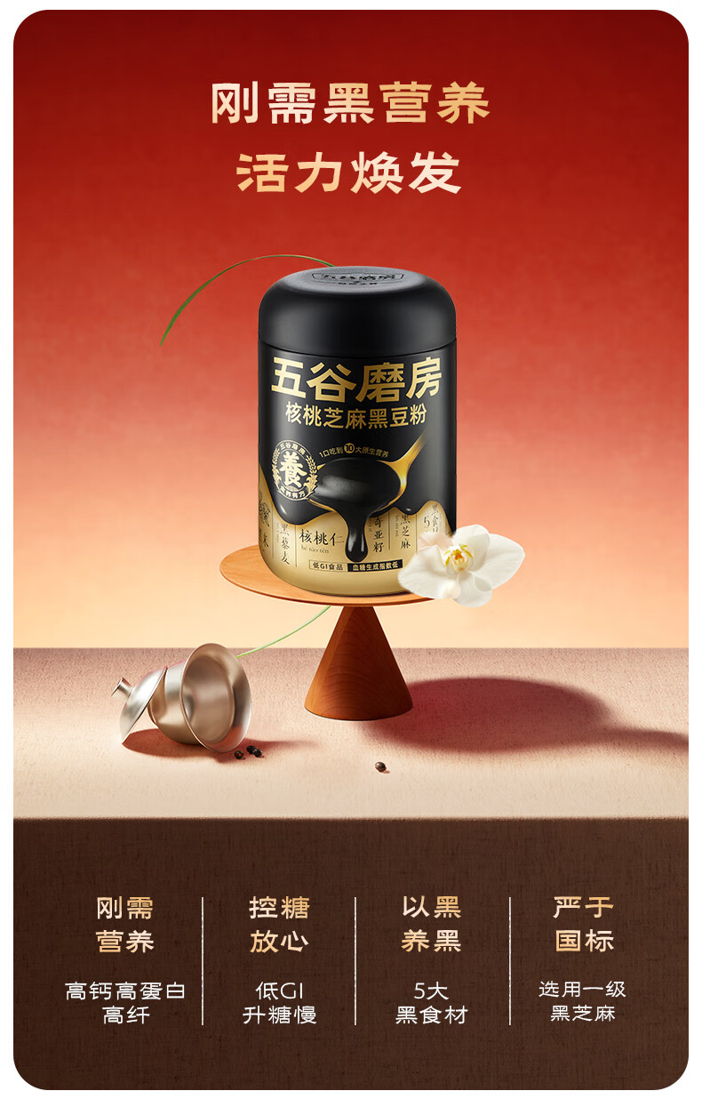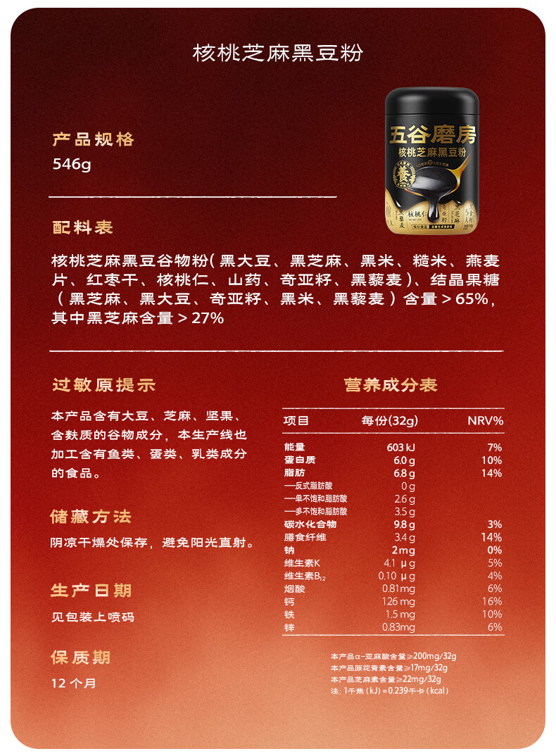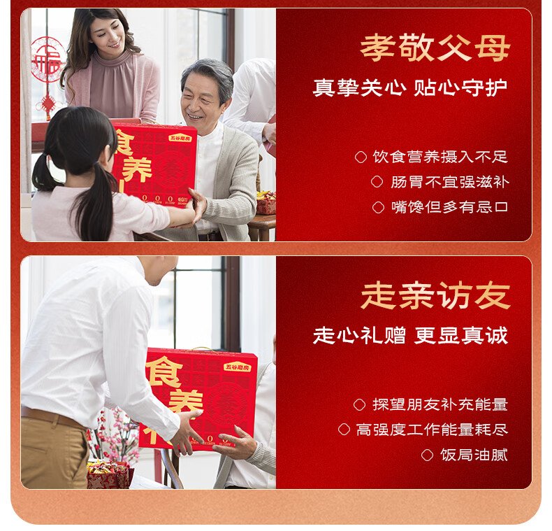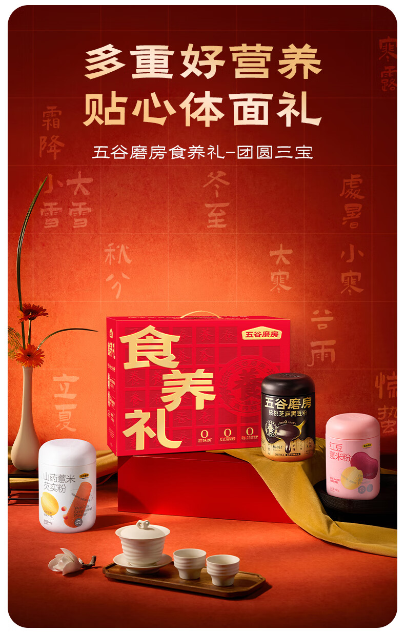五谷磨房 低GI黑芝麻糊养胃山药粉 送长辈父母礼盒 新团圆三宝礼盒 1638g 红色(单位:盒)