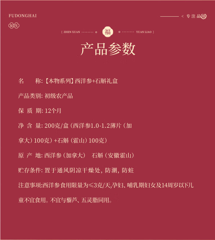 福东海(fudonghai) 西洋参 石斛 双拼礼盒 200g 红色(单位:盒)
