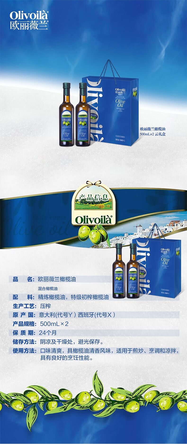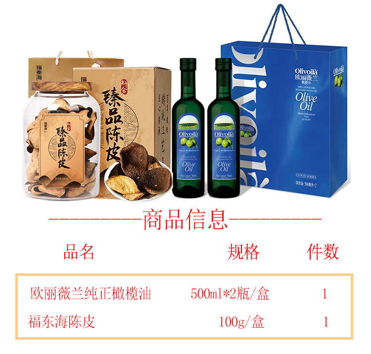 欧丽薇兰 福东海 陈皮橄榄油礼盒组套 100g+1L 蓝色(单位:组)