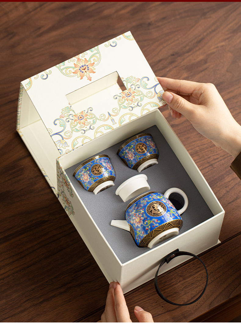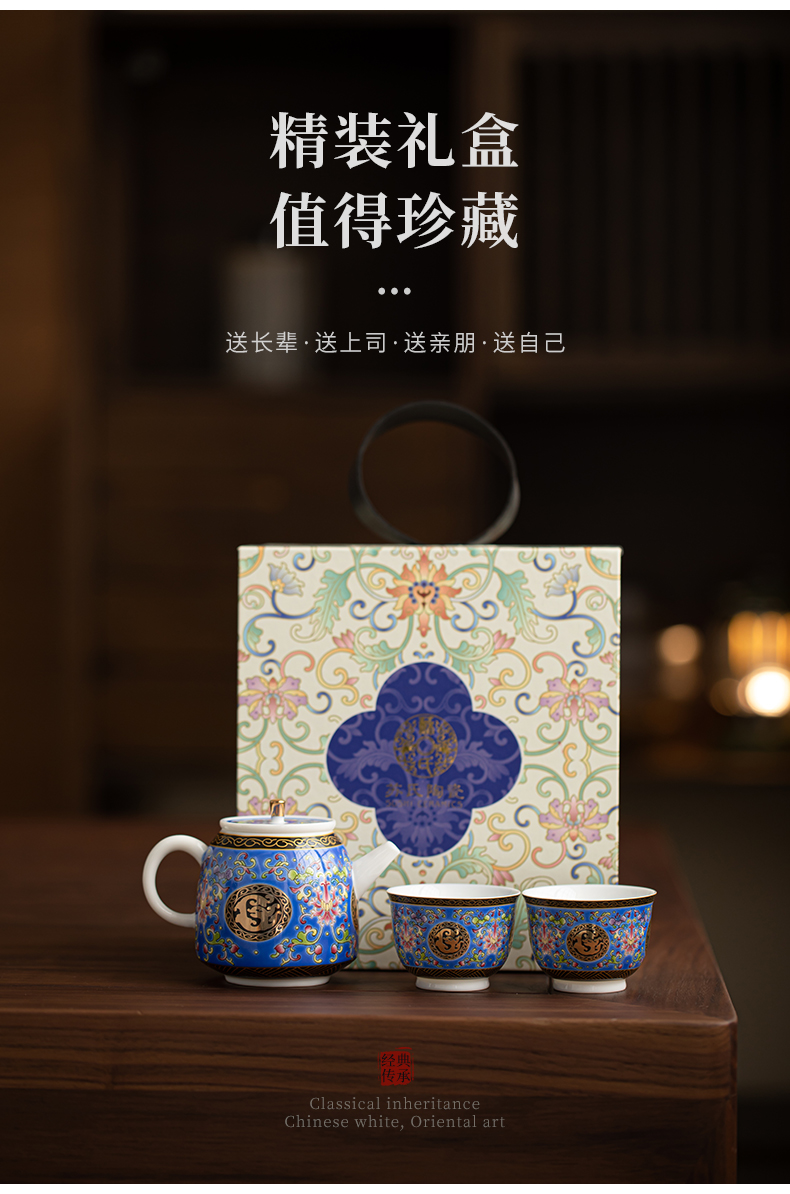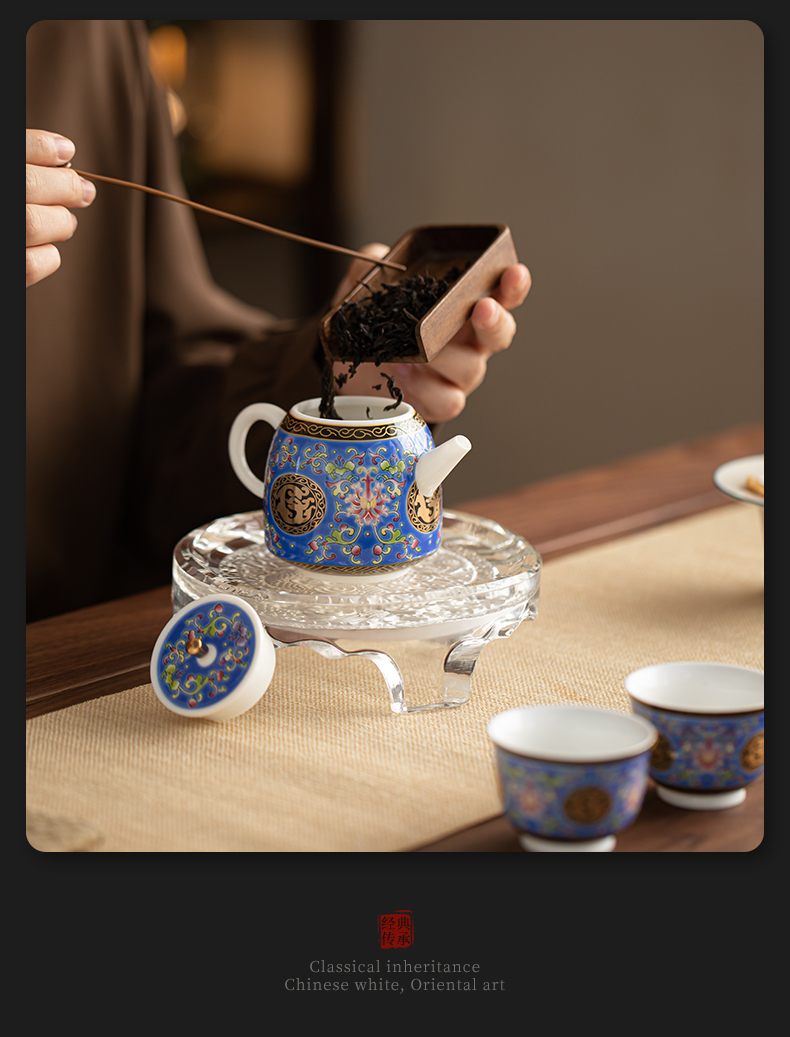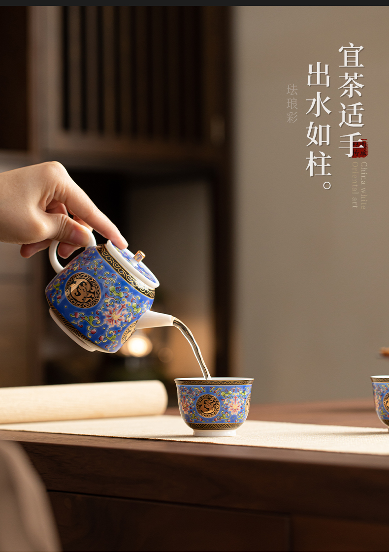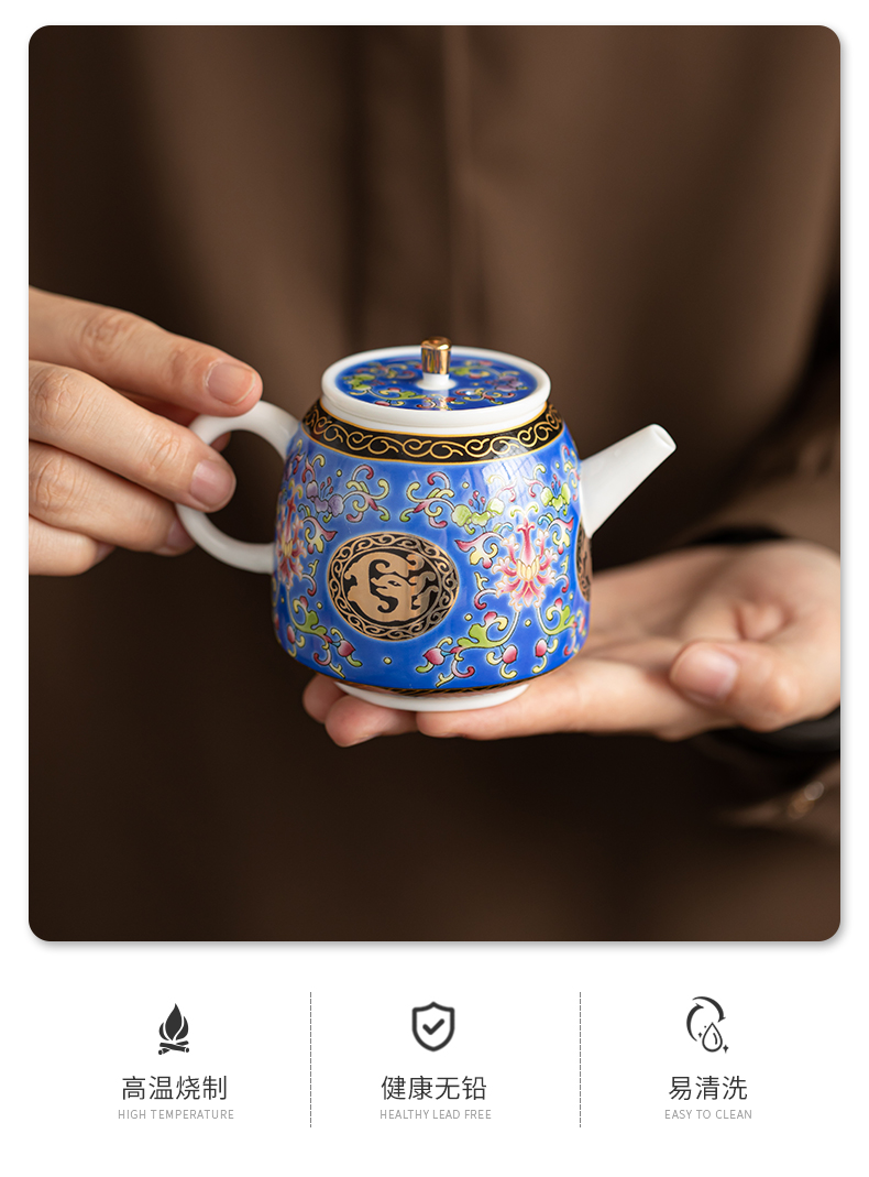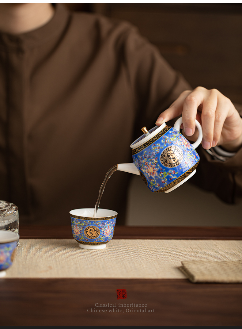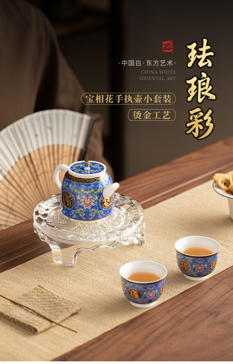 苏氏陶瓷(SUSHI CERAMICS) 珐琅彩宝相花蓝执手壶套装 J1170 茶具*3头 宝石蓝(单位:套)