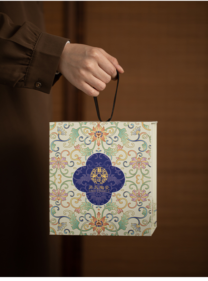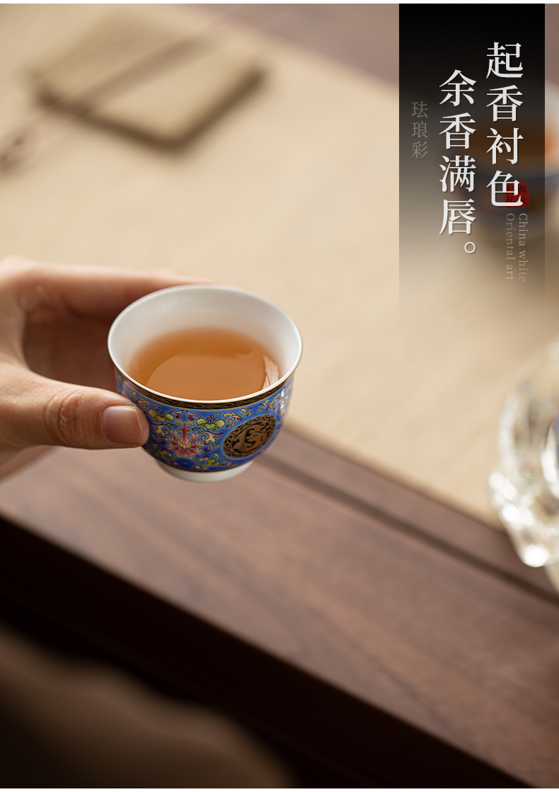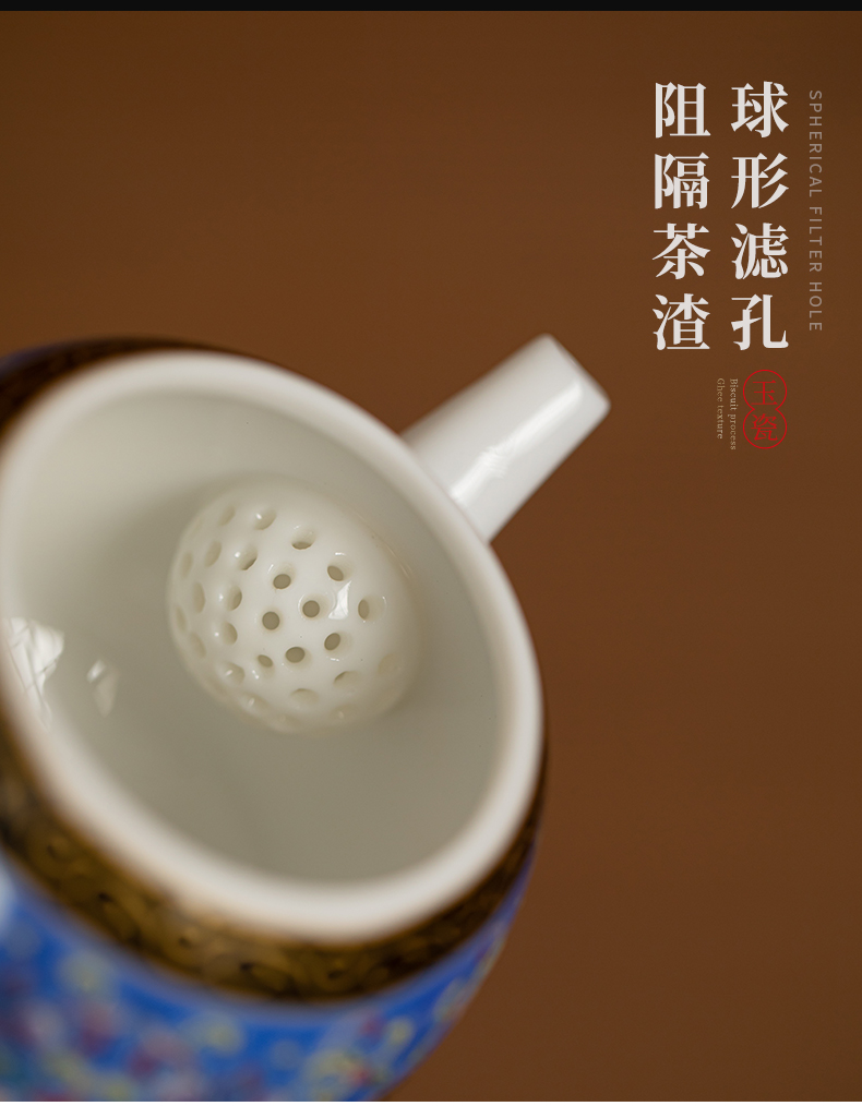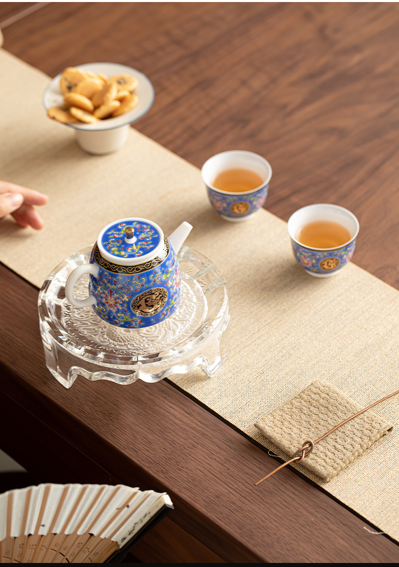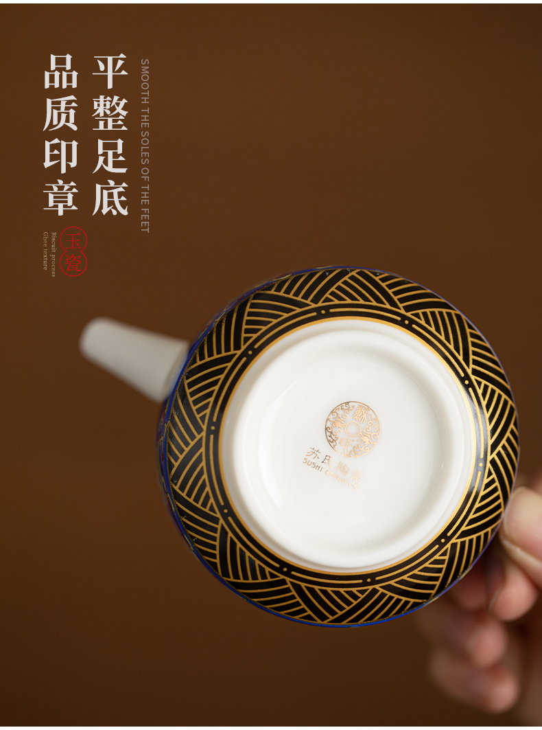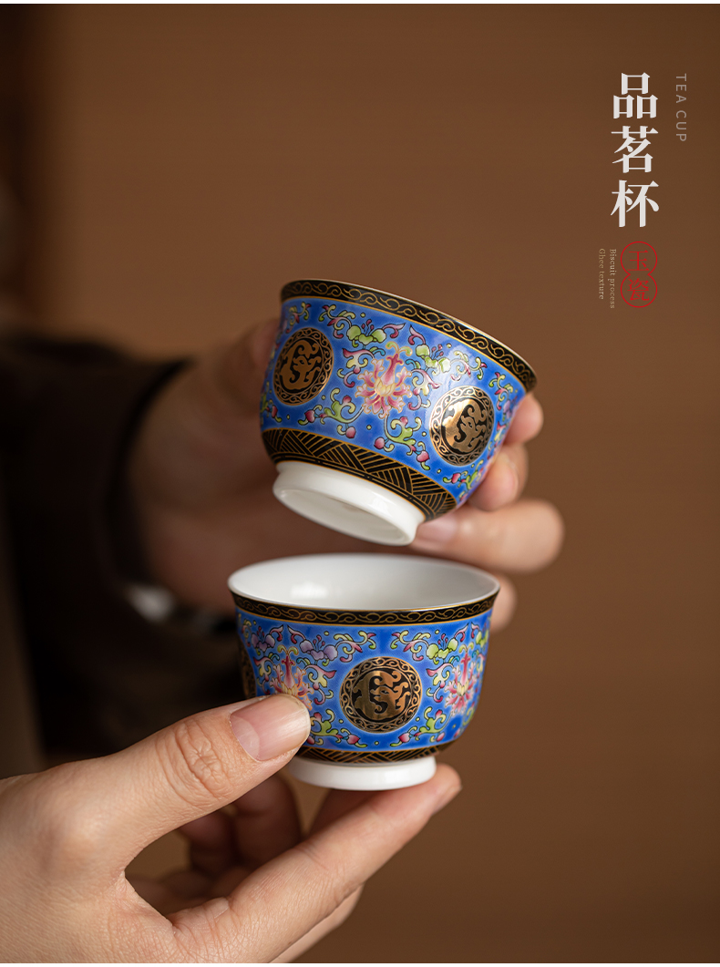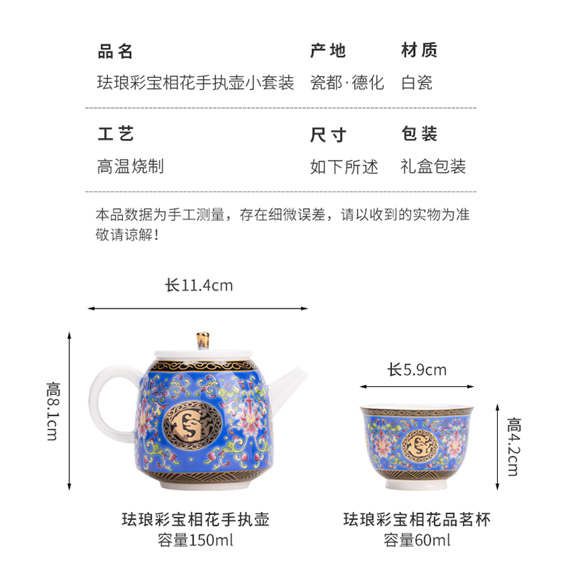 苏氏陶瓷(SUSHI CERAMICS) 珐琅彩宝相花蓝执手壶套装 J1170 茶具*3头 宝石蓝(单位:套)