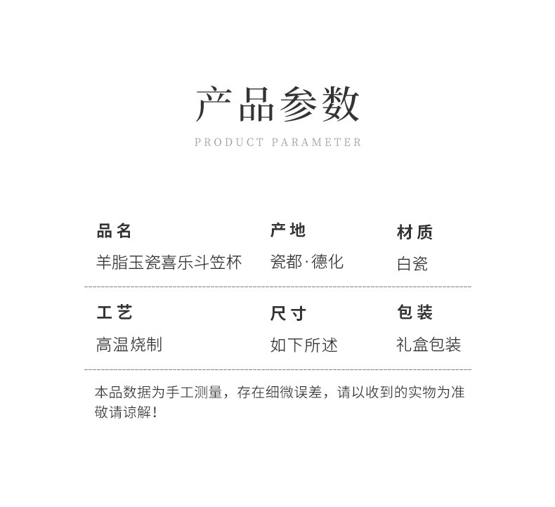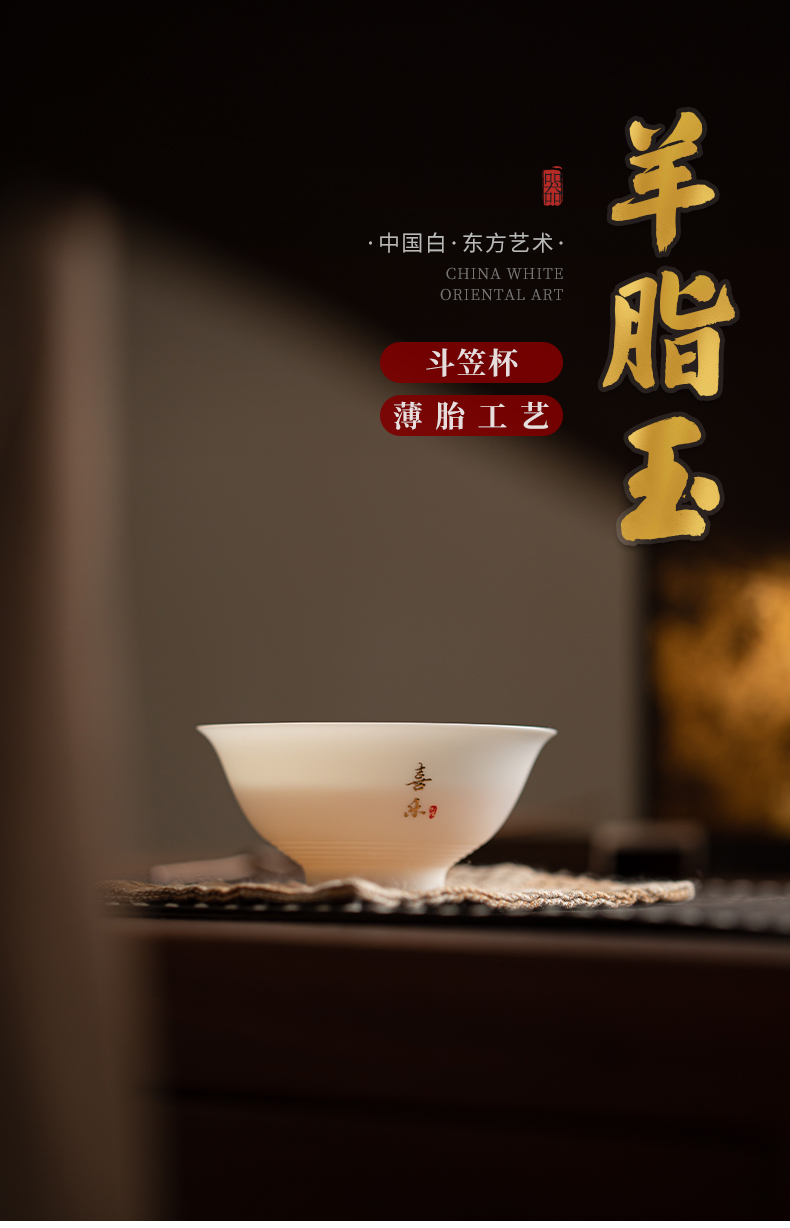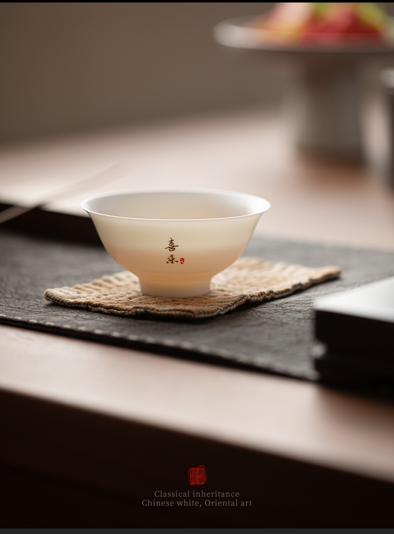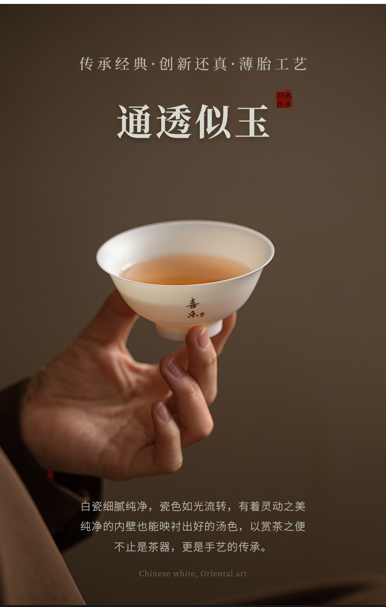苏氏陶瓷(SUSHI CERAMICS) 玉瓷超薄胎喜乐斗笠杯 J1185 茶杯80ml 白色(单位:个)