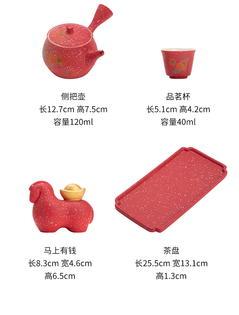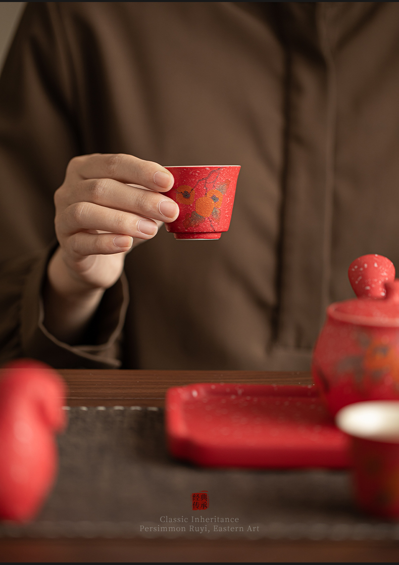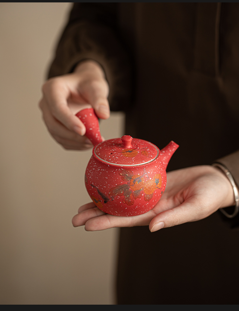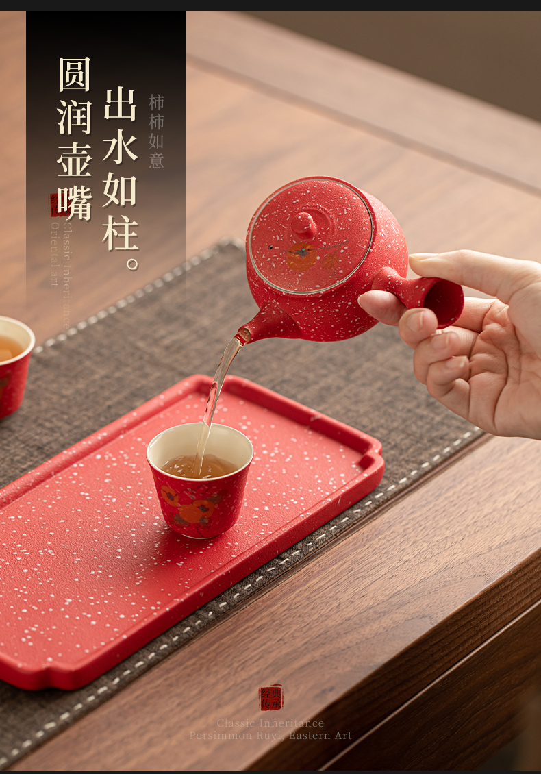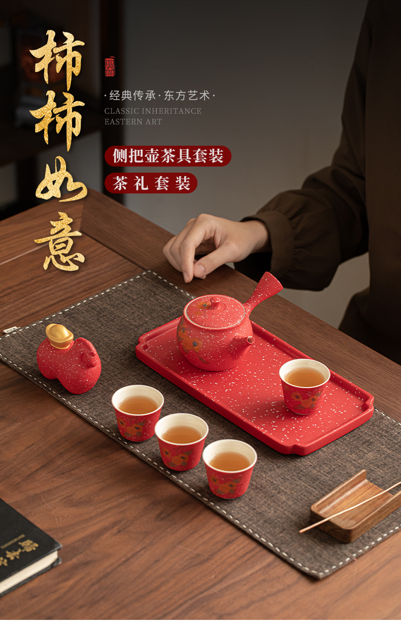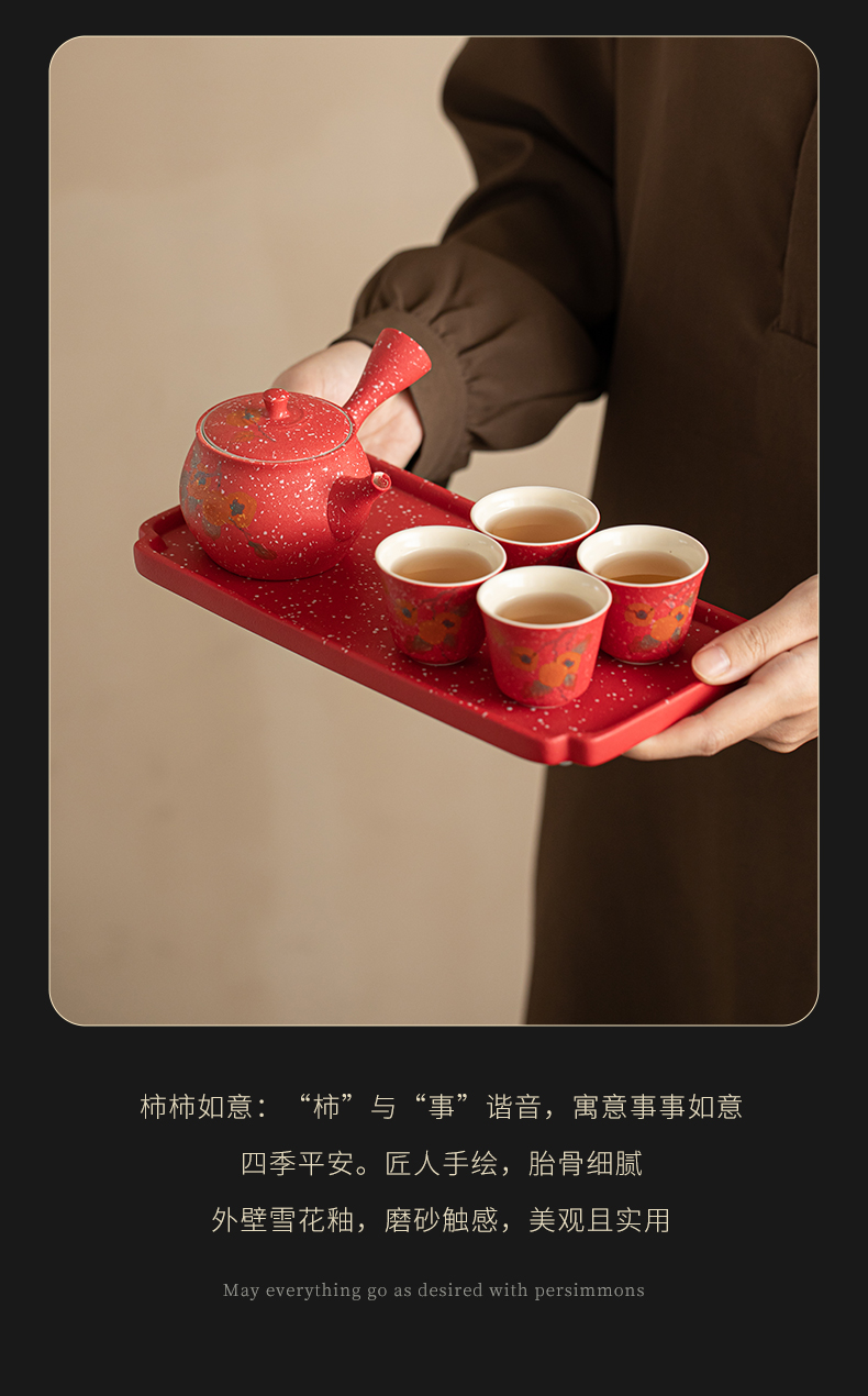 苏氏陶瓷(SUSHI CERAMICS) 柿柿如意侧把壶茶宠组 J1084 茶具套装*7头 粉红色(单位:套)