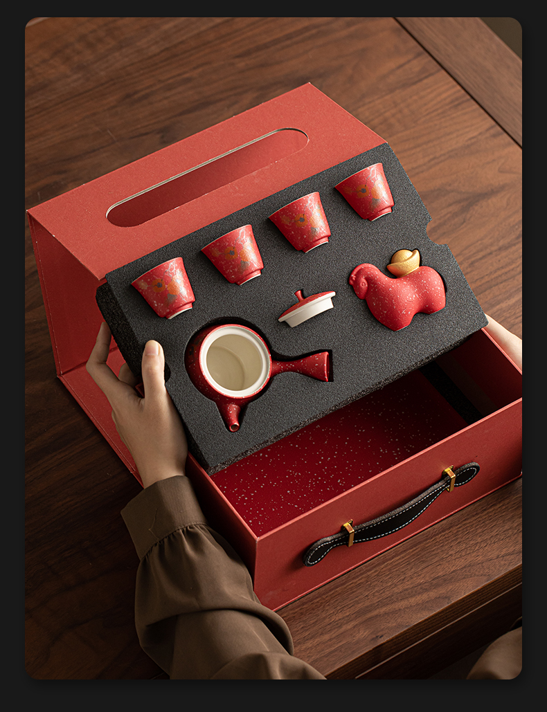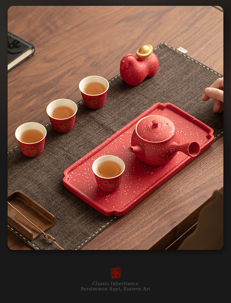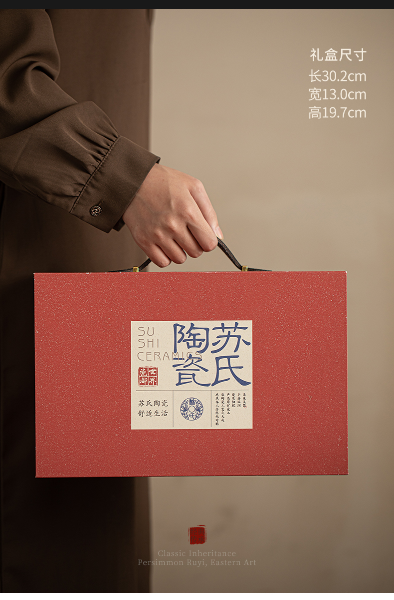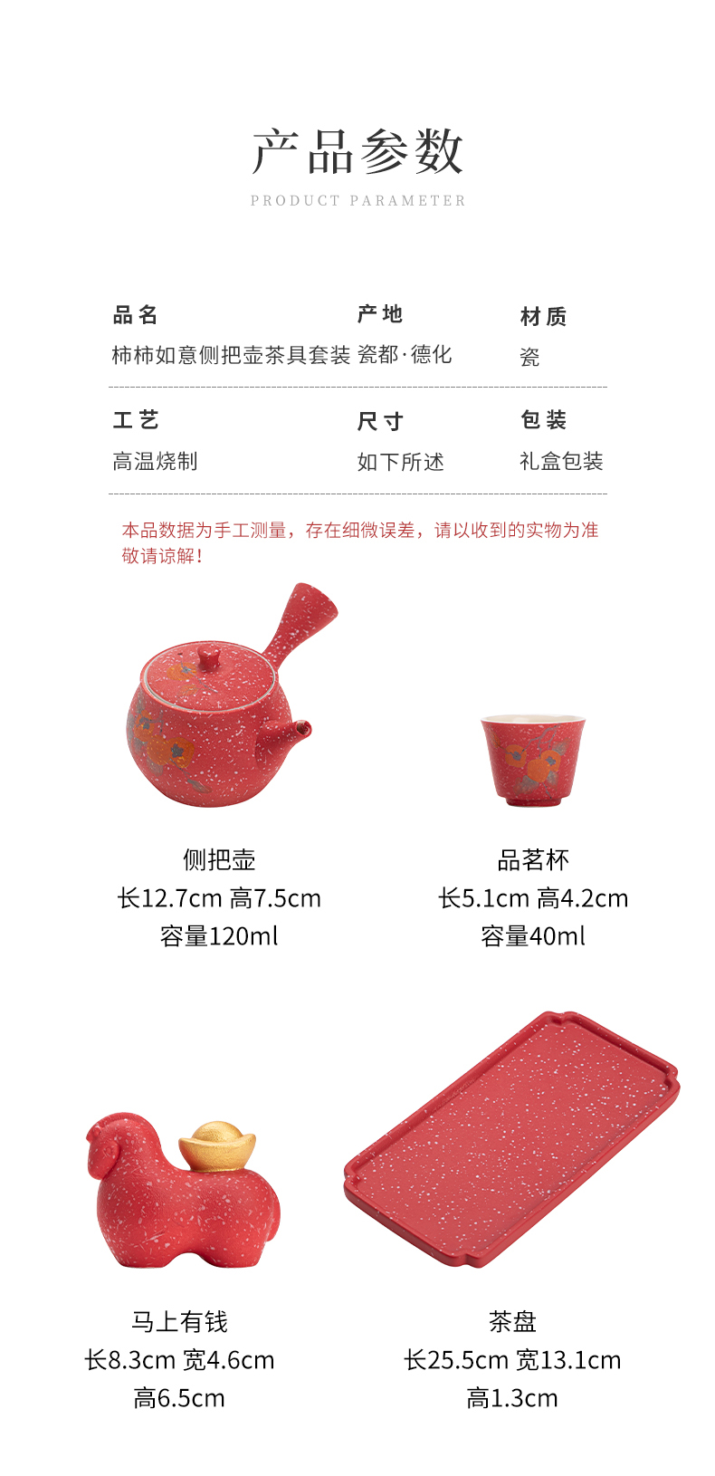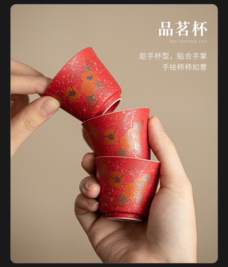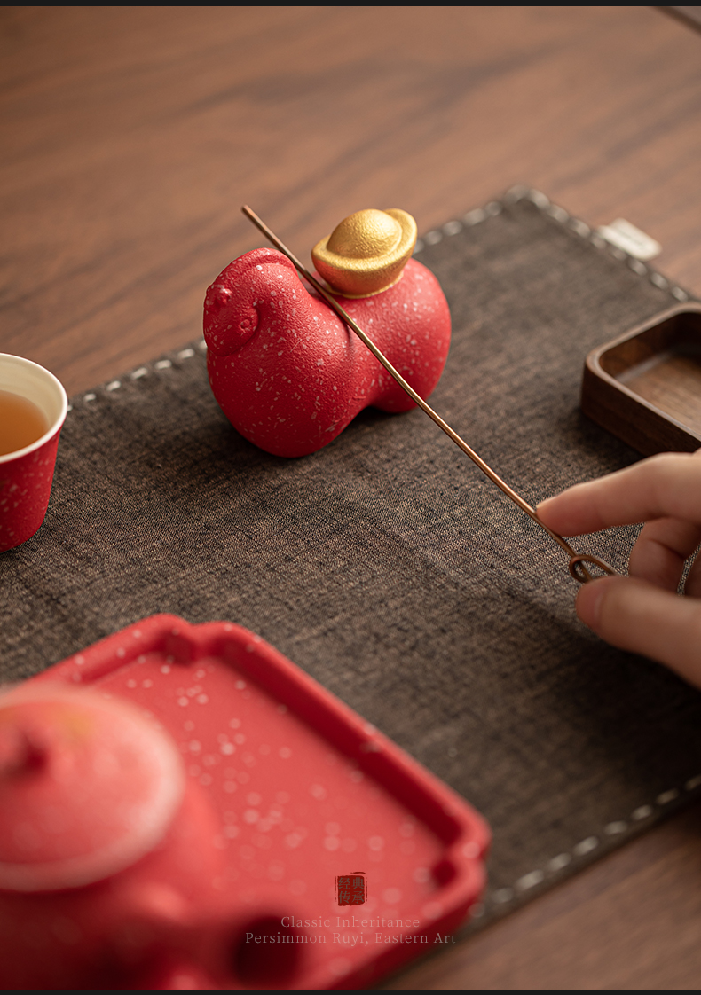 苏氏陶瓷(SUSHI CERAMICS) 柿柿如意侧把壶茶宠组 J1084 茶具套装*7头 粉红色(单位:套)