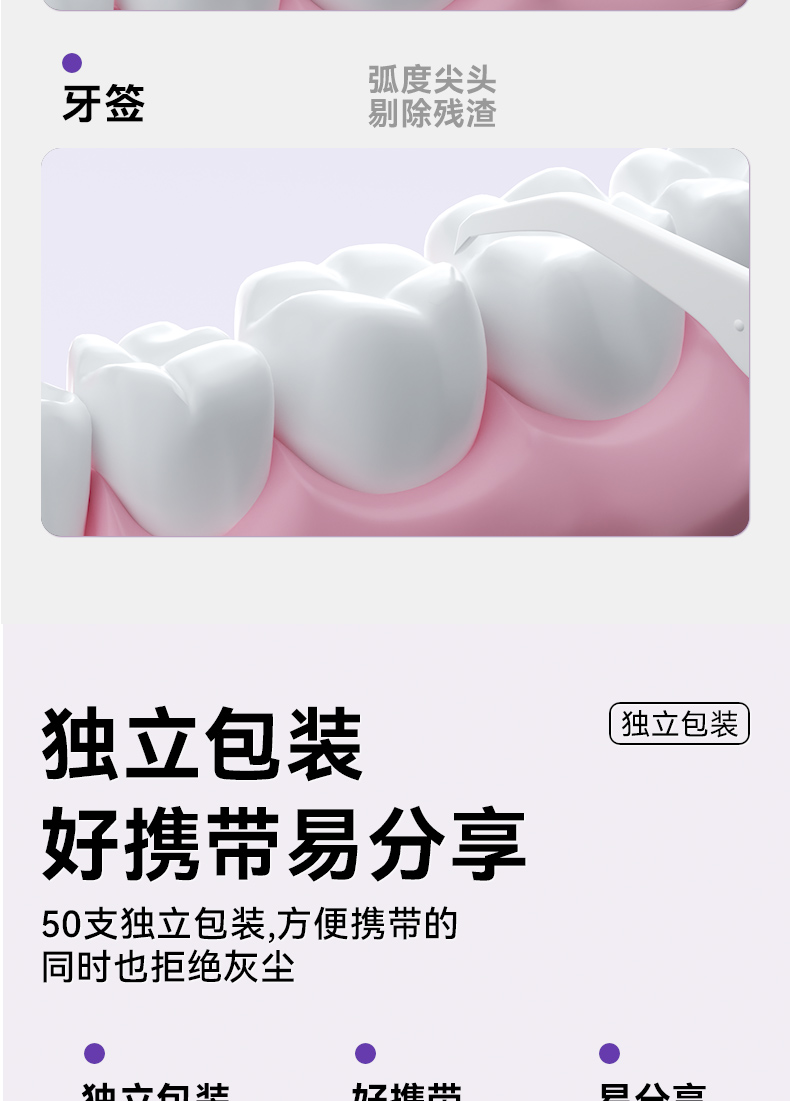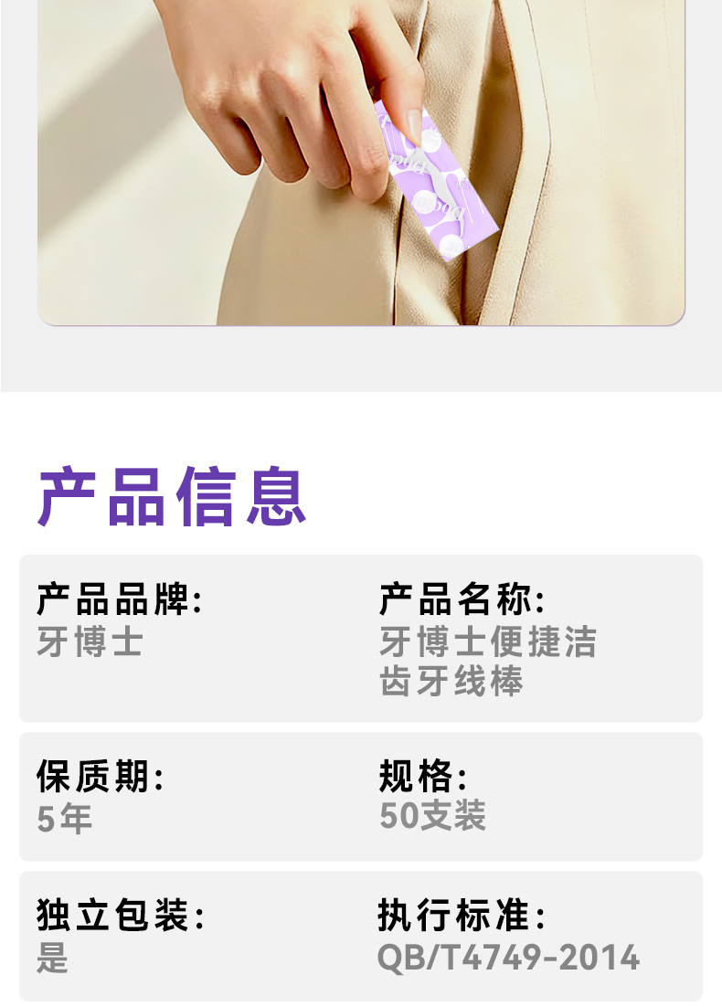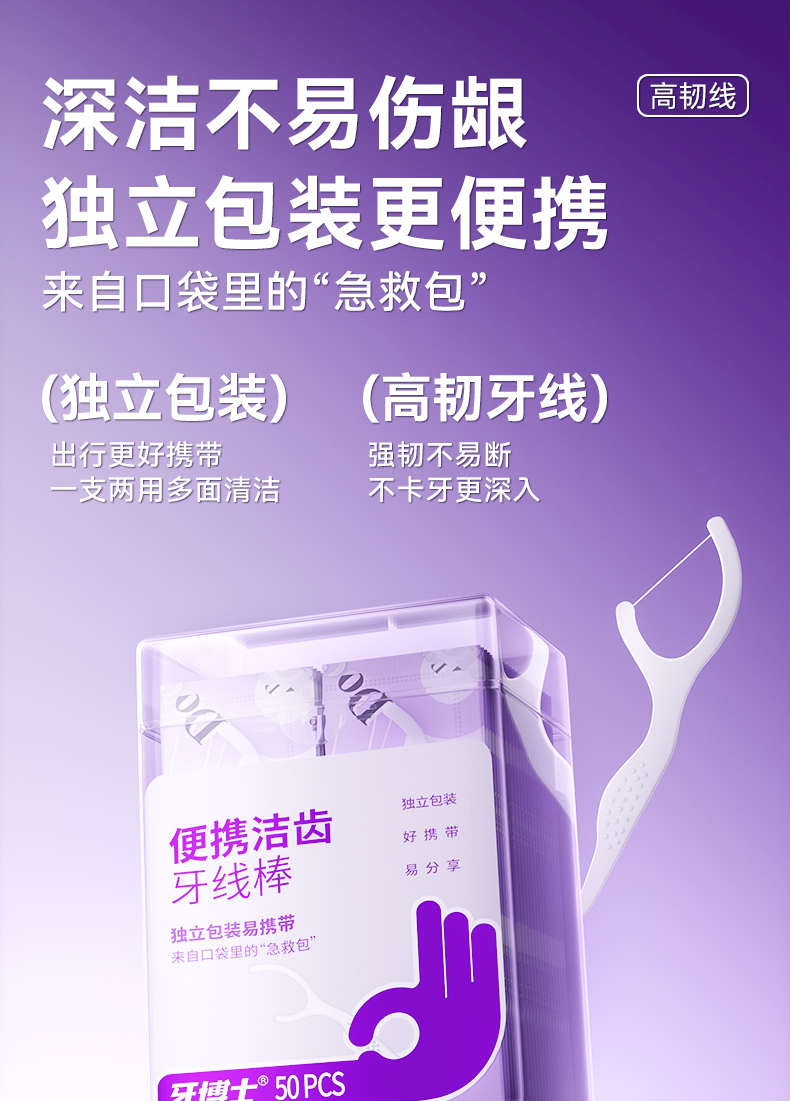 牙博士 牙线棒 便携洁齿 独立包装50支*4 白色(单位:组)