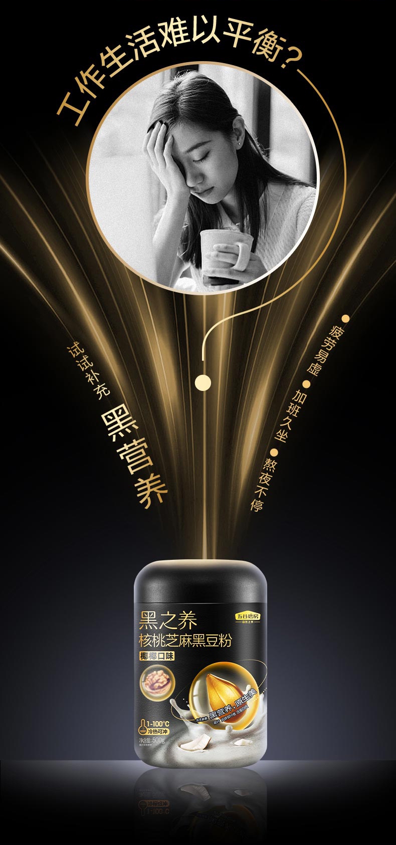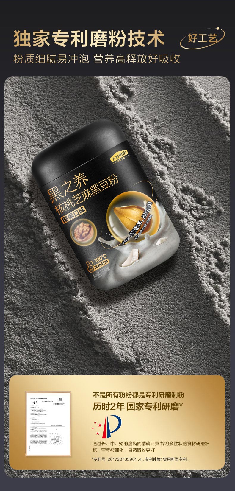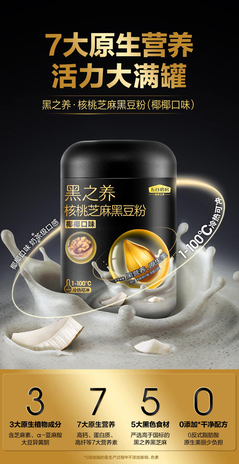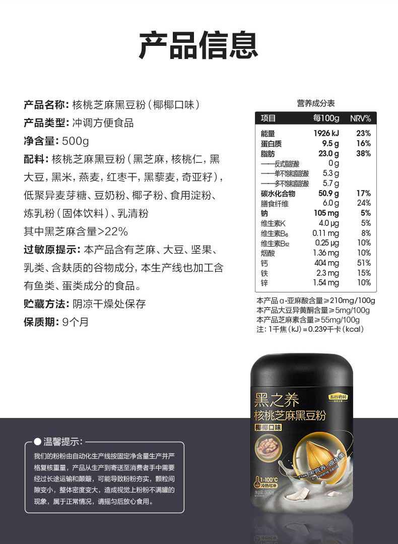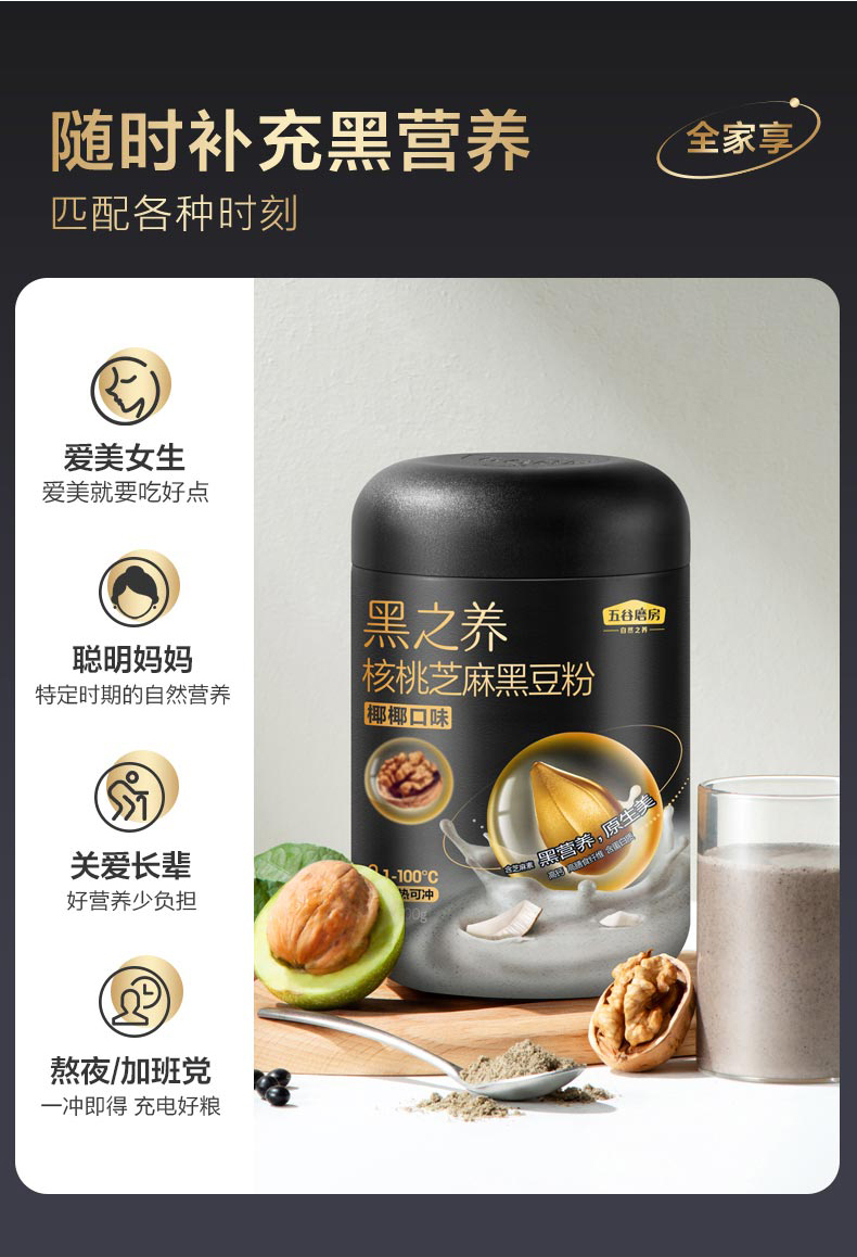 五谷磨房 七大原生营养 核桃芝麻黑豆粉(椰椰口味) 500g 黑色(单位:罐)