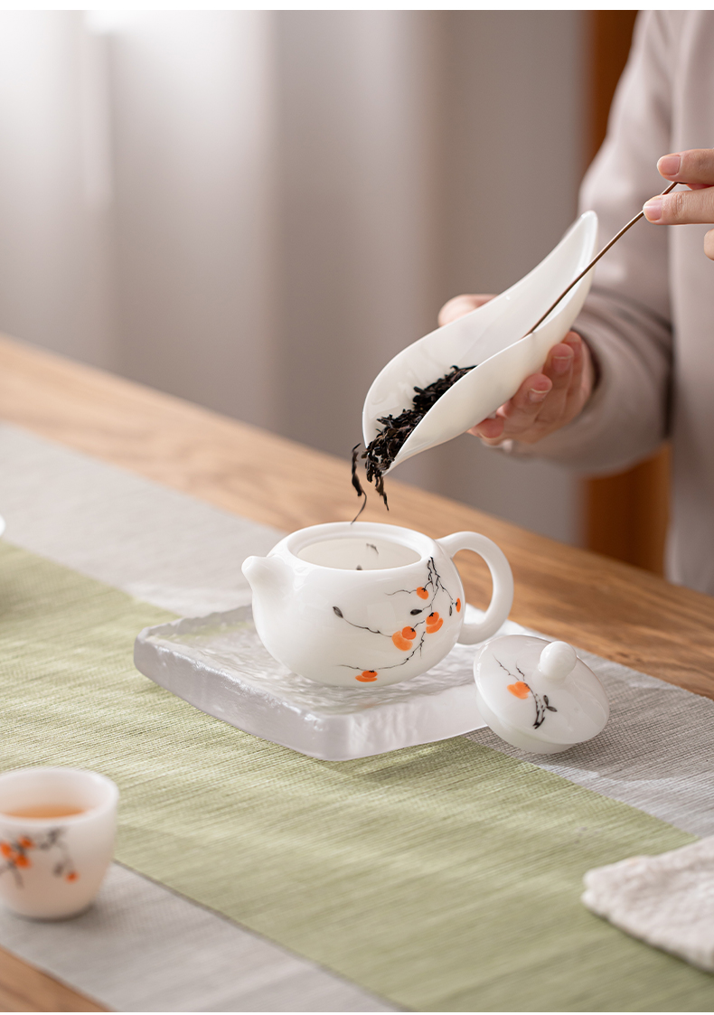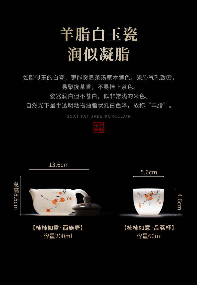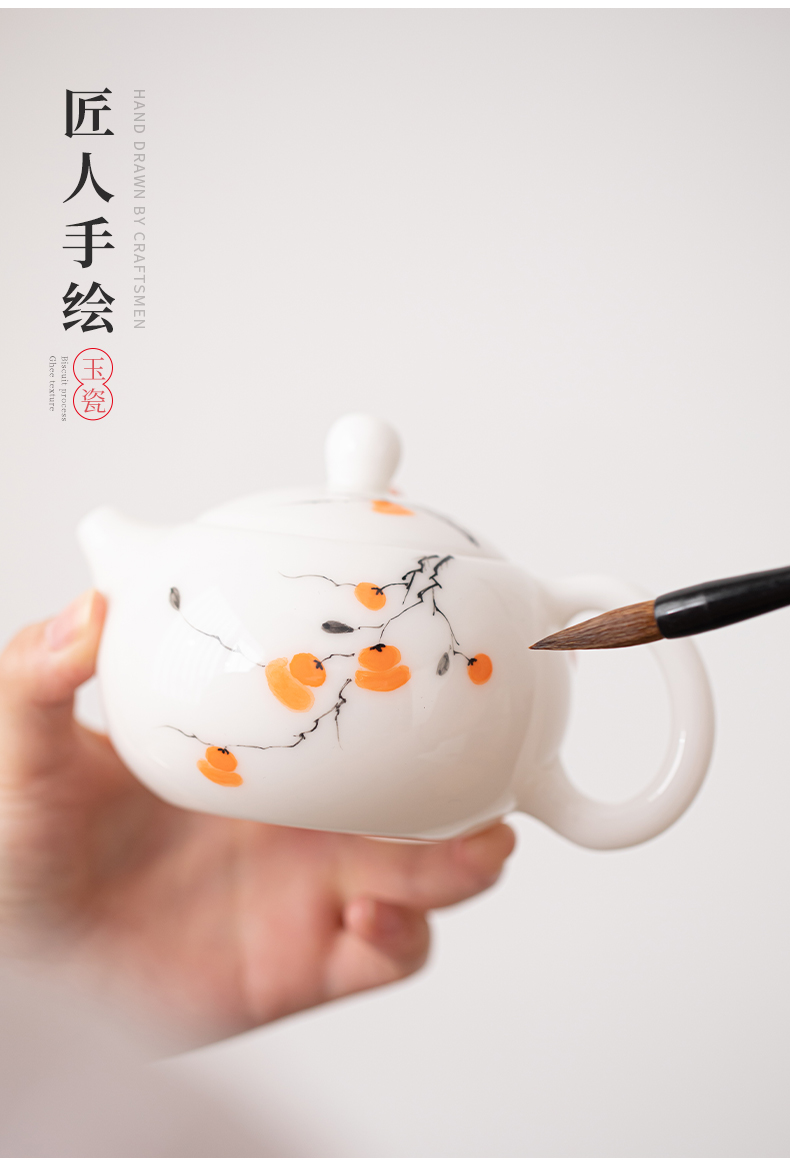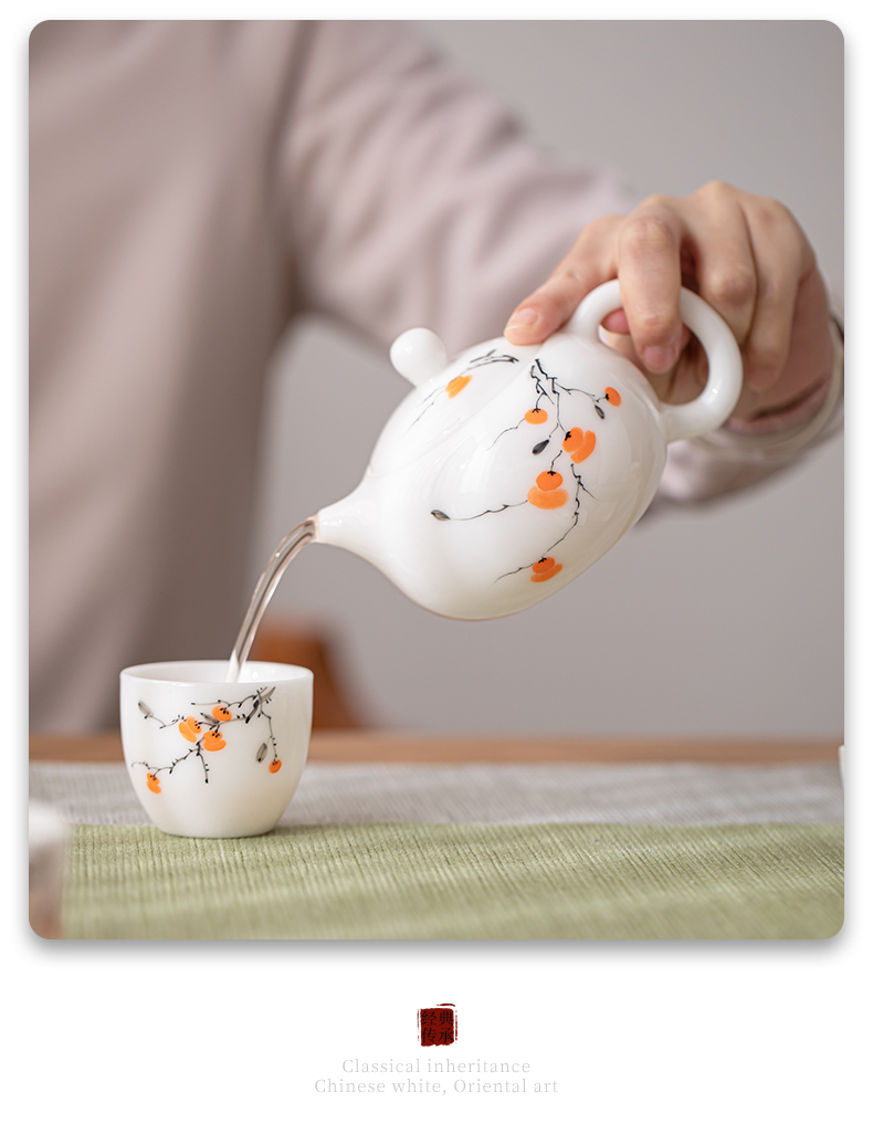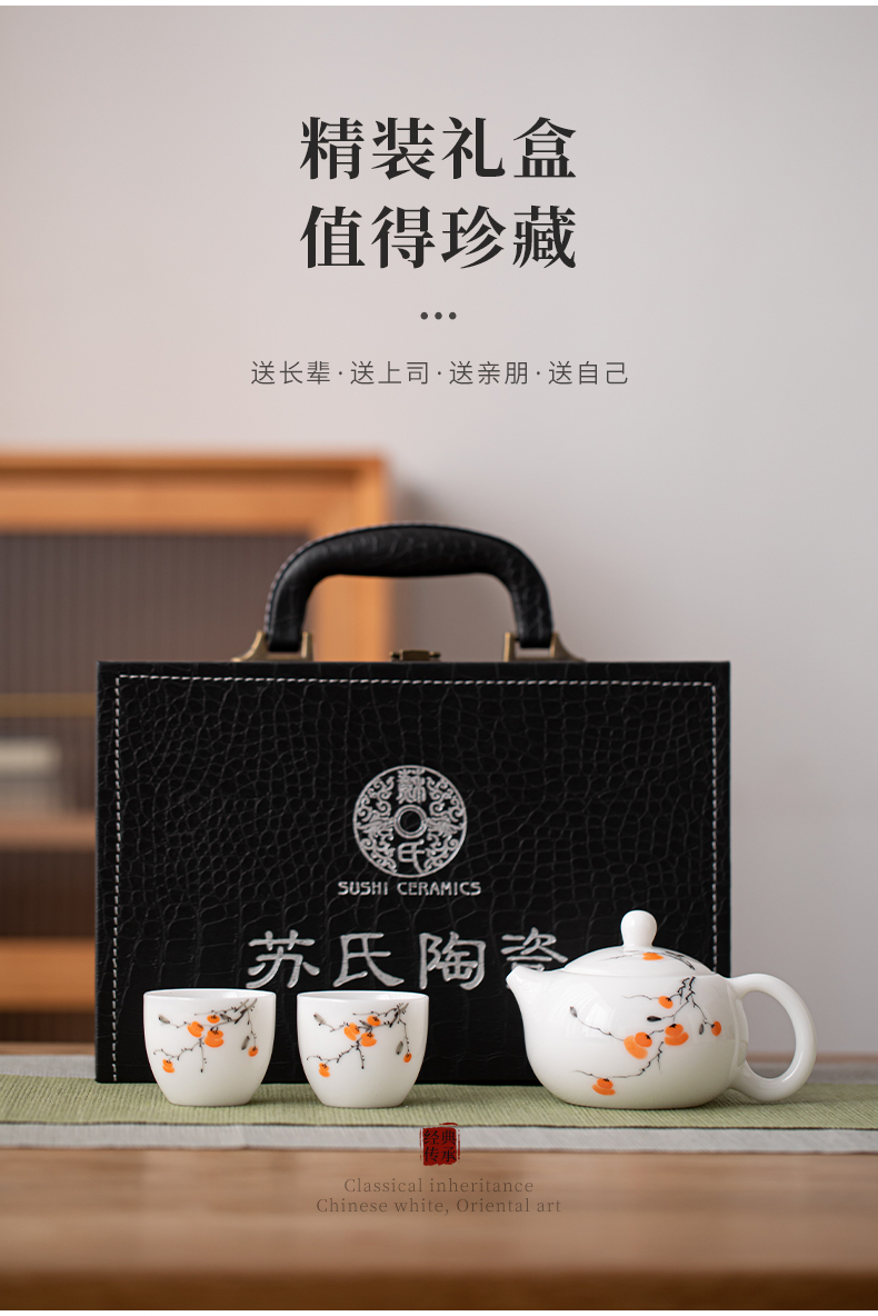 苏氏陶瓷(SUSHI CERAMICS) 柿柿如意西施壶两茶杯 J1183 茶具*3头 白色(单位:套)