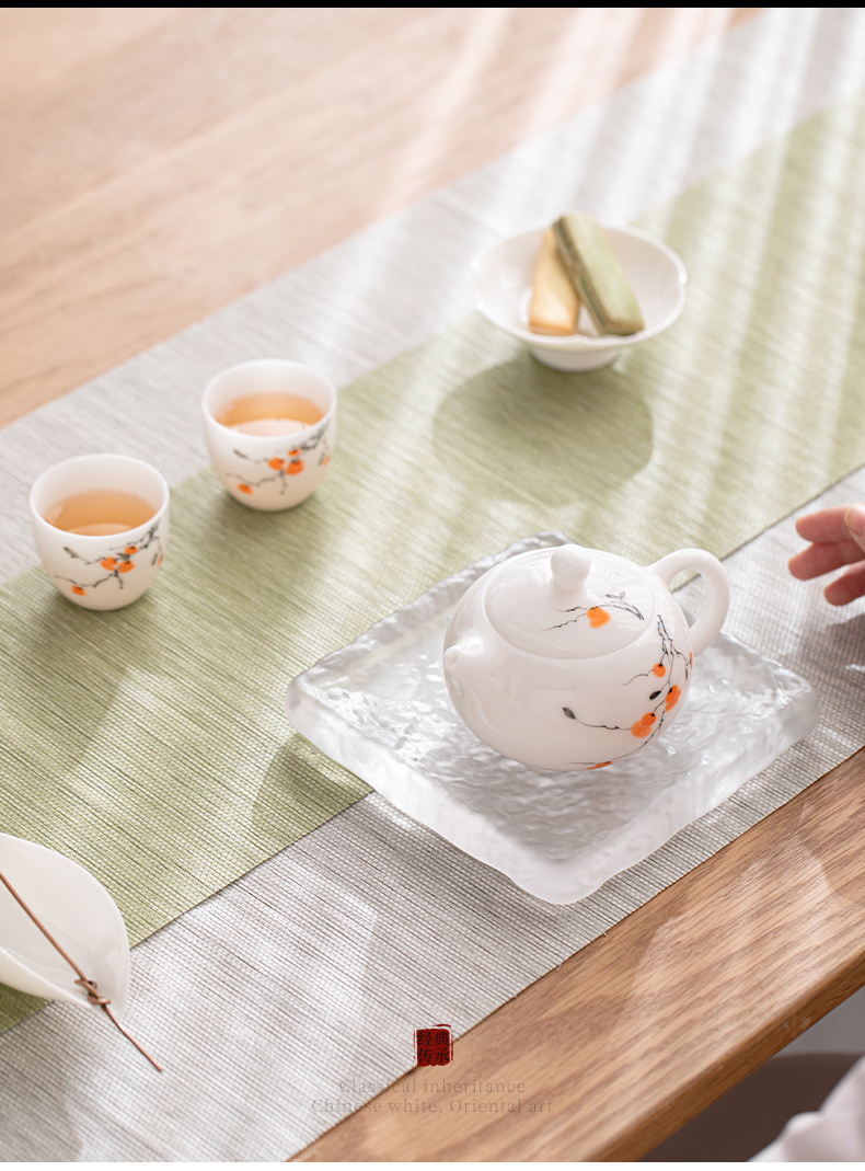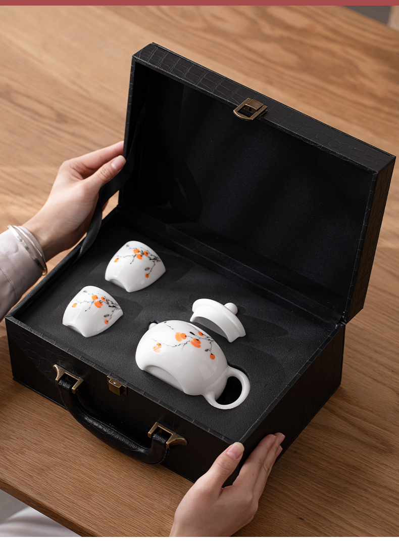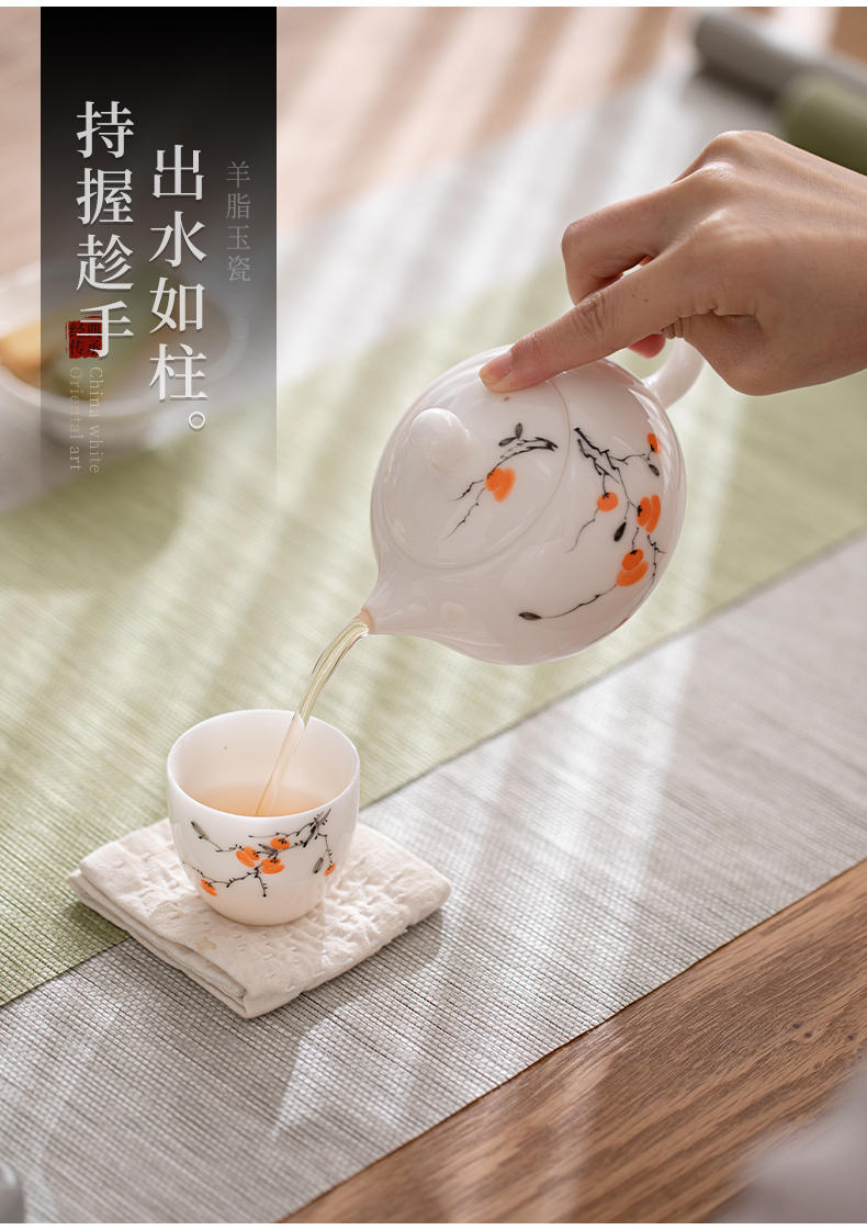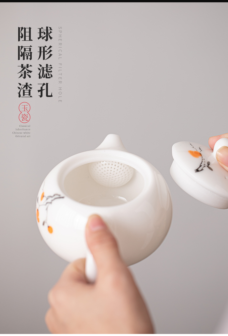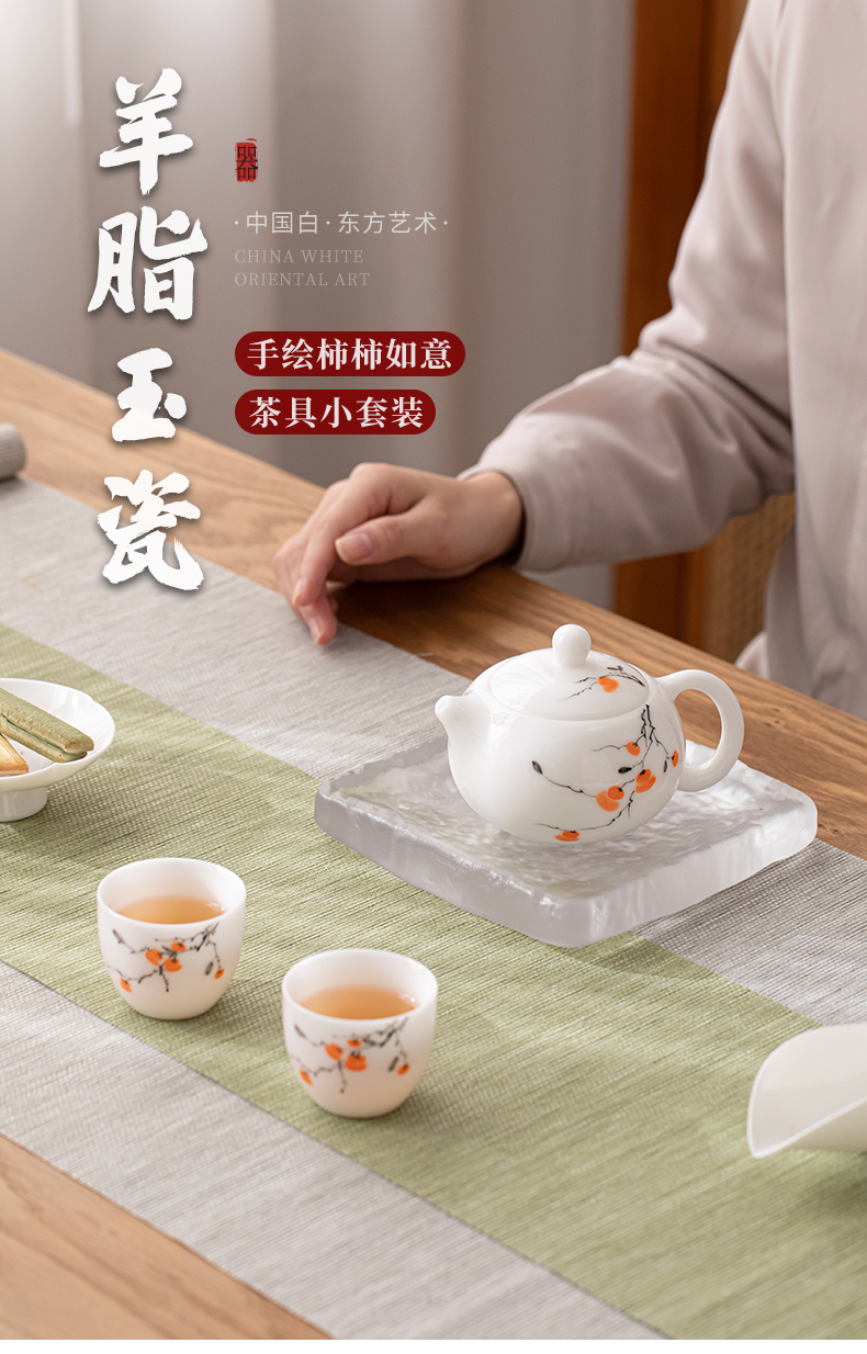 苏氏陶瓷(SUSHI CERAMICS) 柿柿如意西施壶两茶杯 J1183 茶具*3头 白色(单位:套)