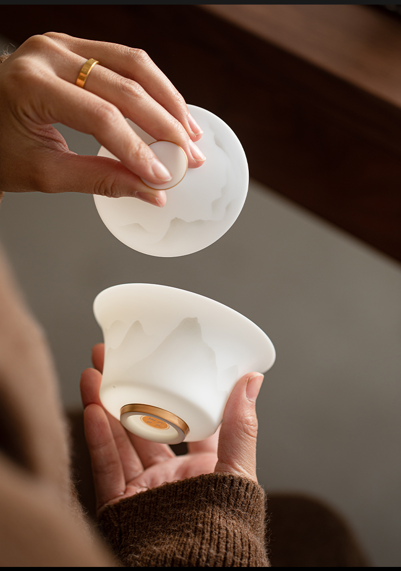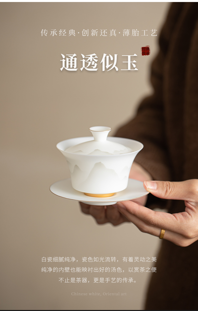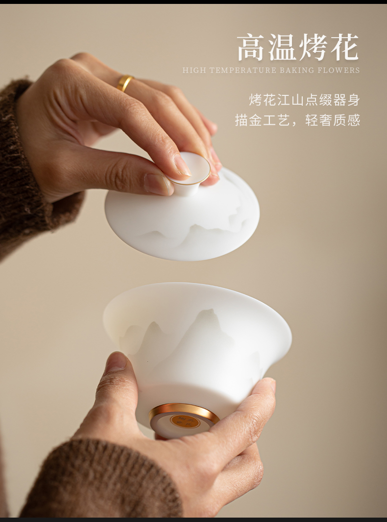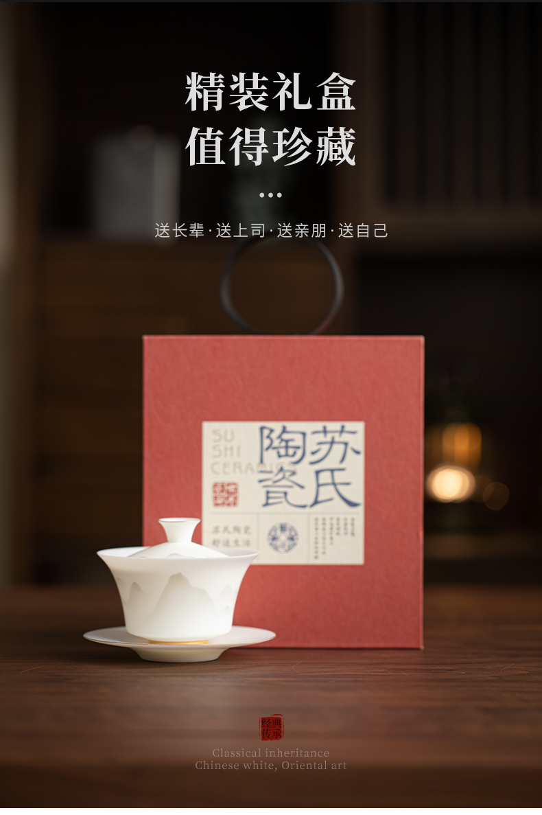 苏氏陶瓷(SUSHI CERAMICS) 玉瓷淡墨秋山三才茶碗 J1219 盖碗130ml 白色(单位:套)