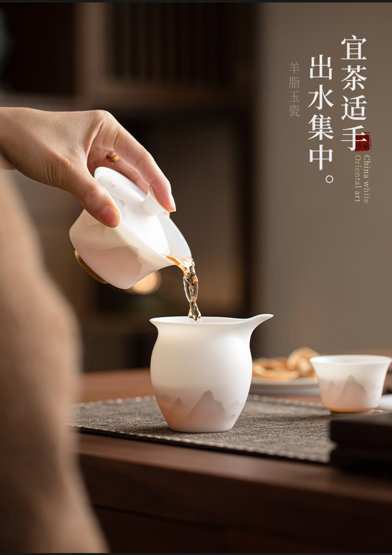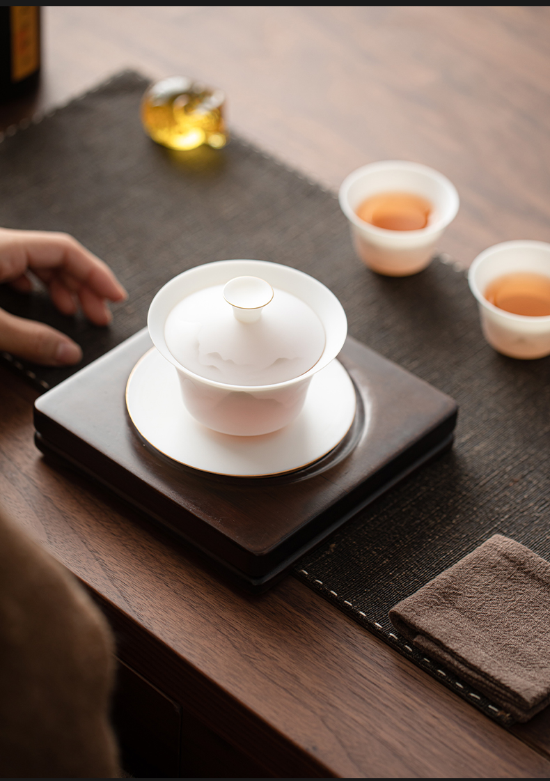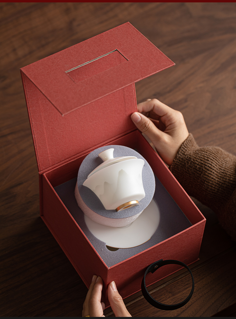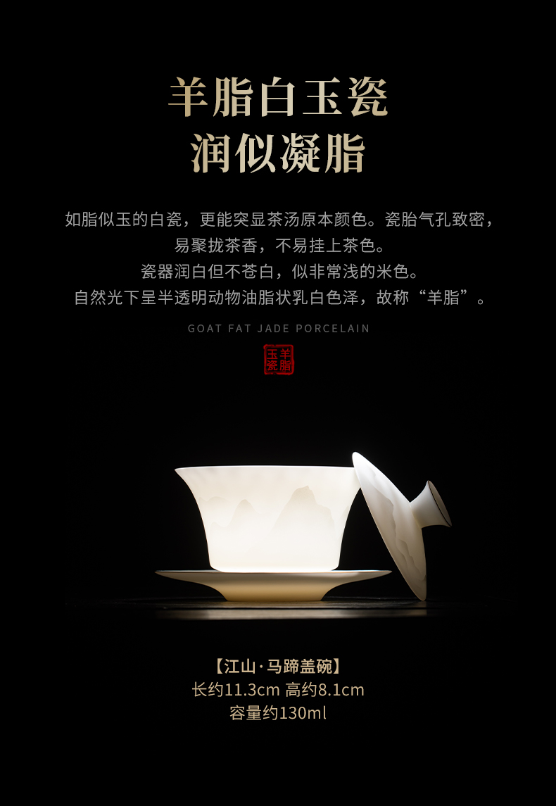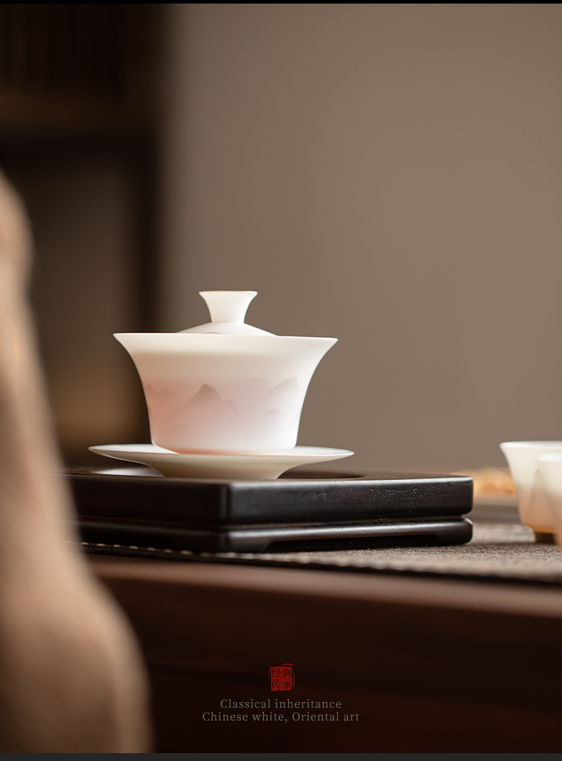 苏氏陶瓷(SUSHI CERAMICS) 玉瓷淡墨秋山三才茶碗 J1219 盖碗130ml 白色(单位:套)