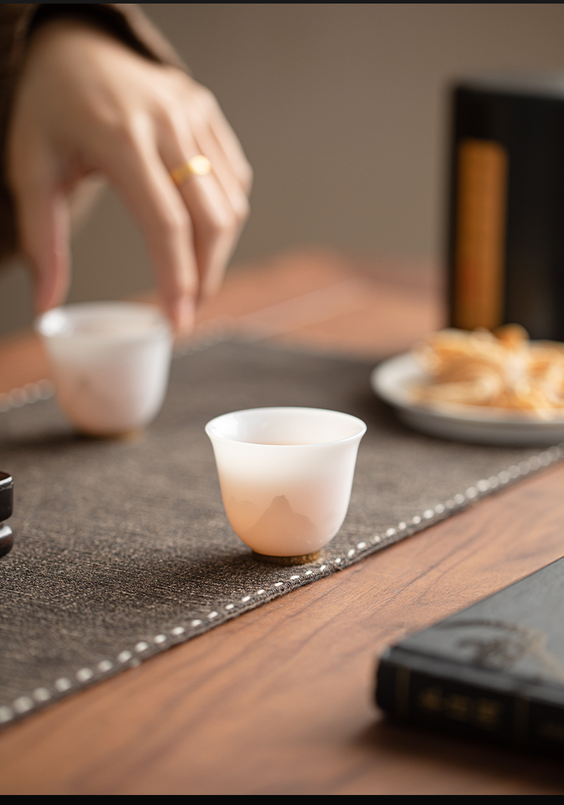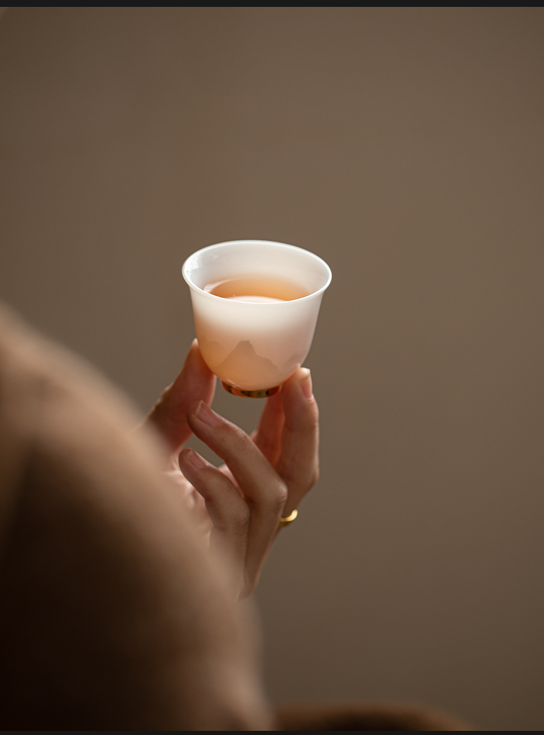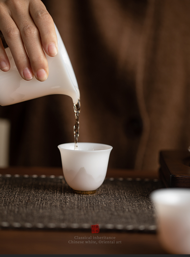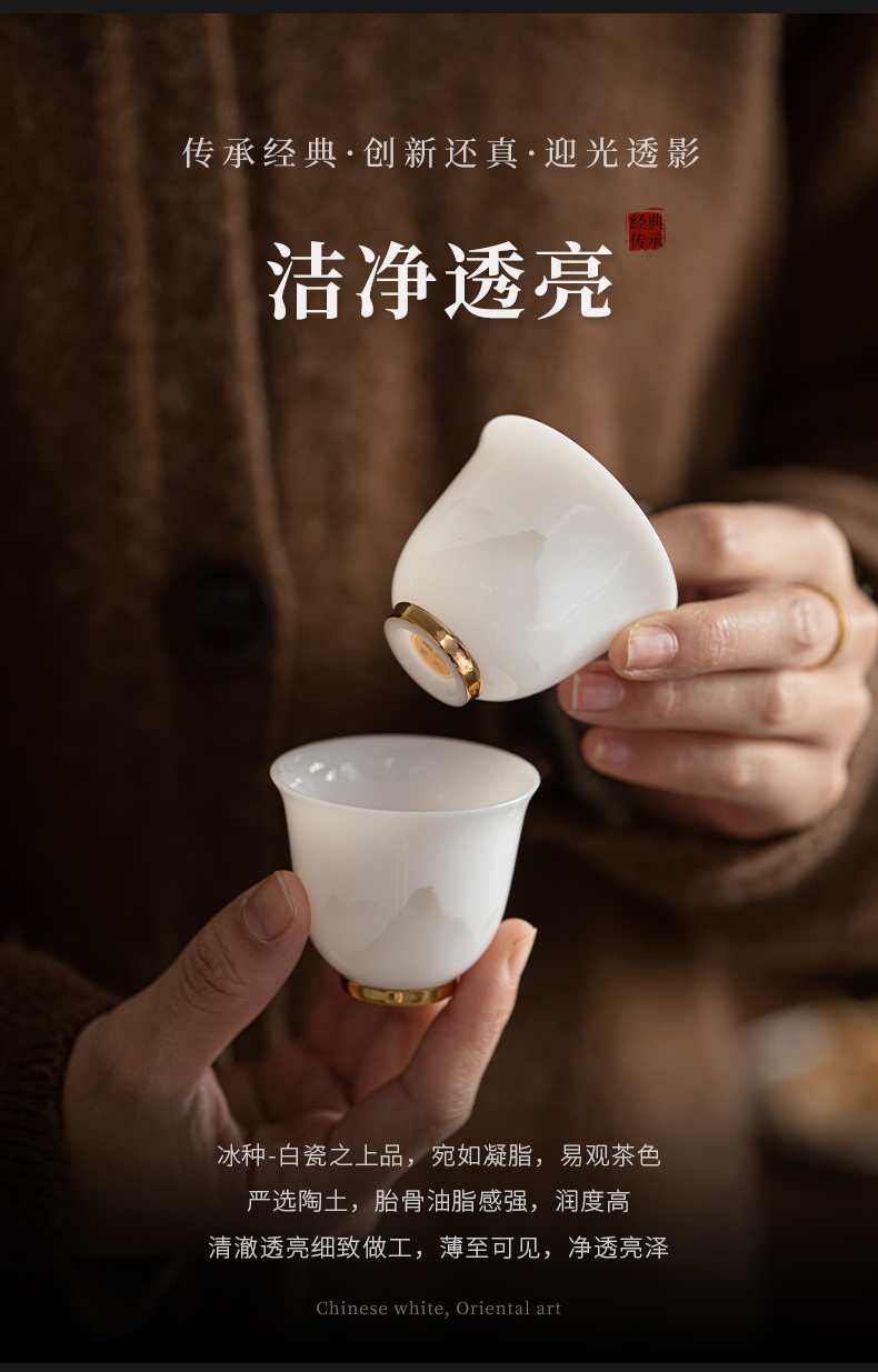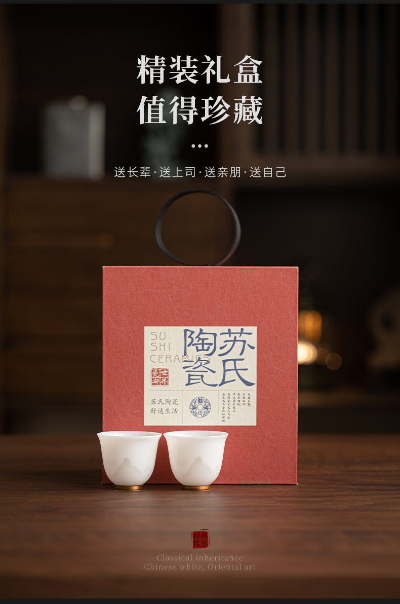 苏氏陶瓷(SUSHI CERAMICS) 玉瓷淡墨秋山玲珑对杯 J1208 茶杯40ml*2 白色(单位:套)