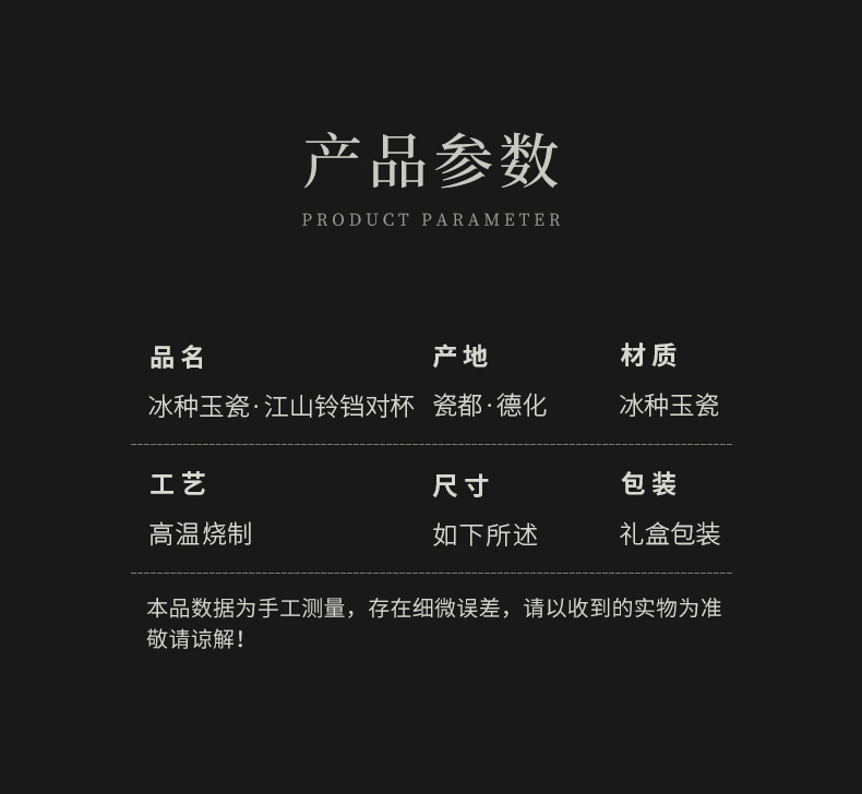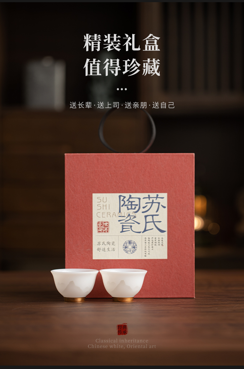 苏氏陶瓷(SUSHI CERAMICS) 玉瓷淡墨秋山铃铛对杯 J1209 茶杯40ml*2 白色(单位:套)