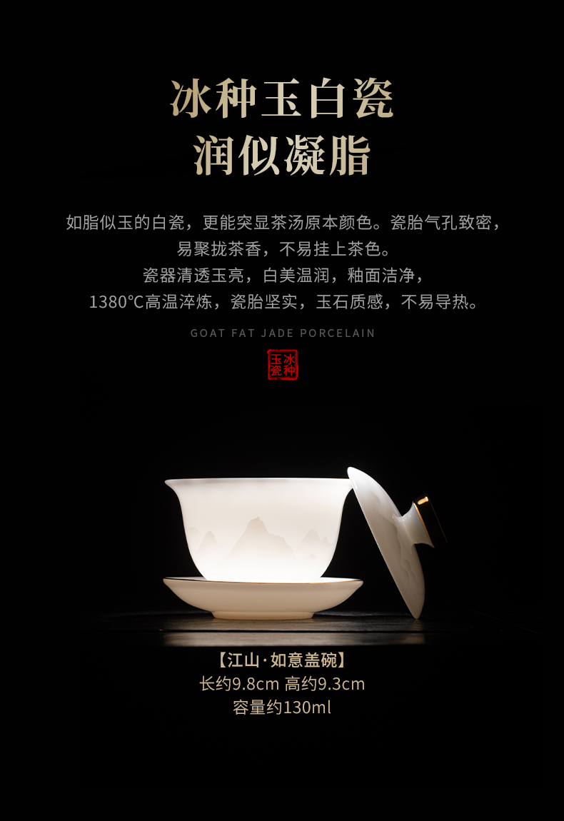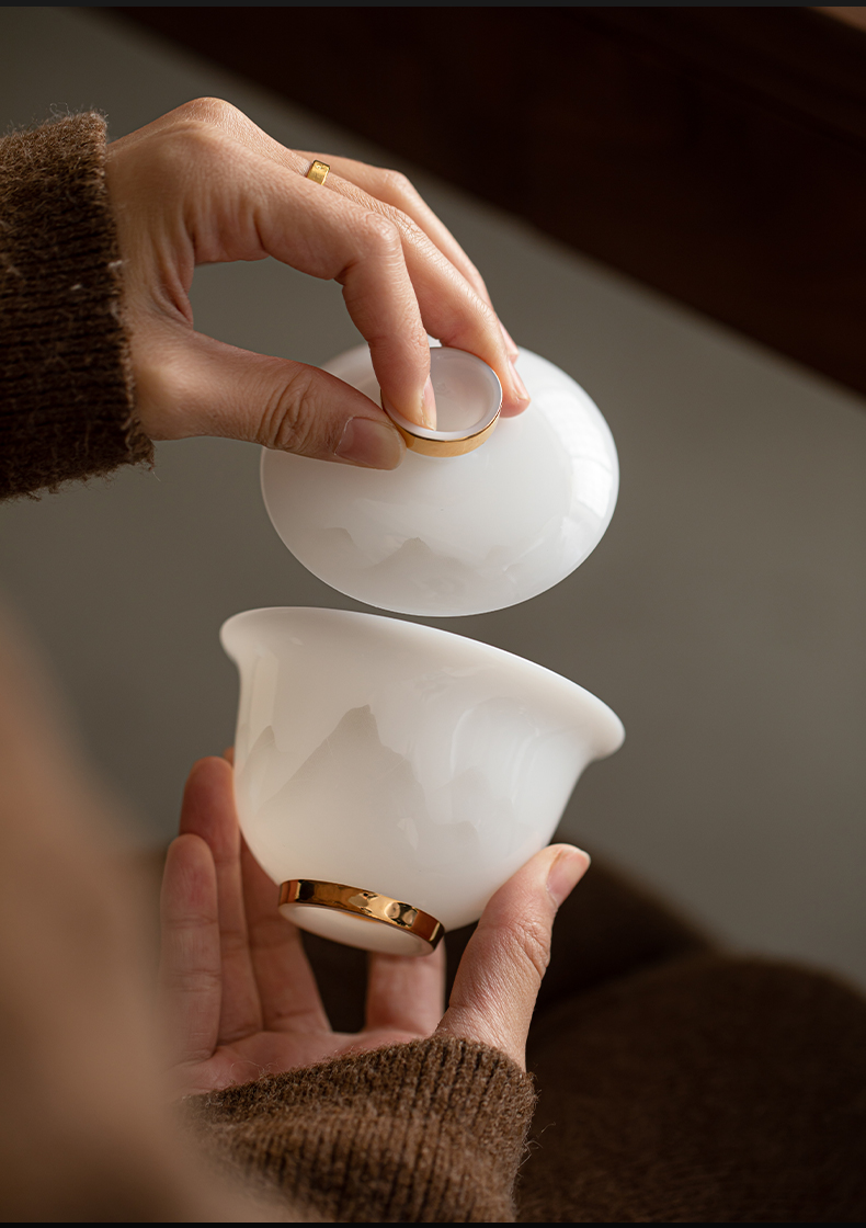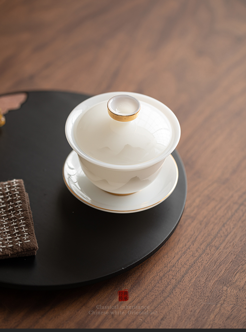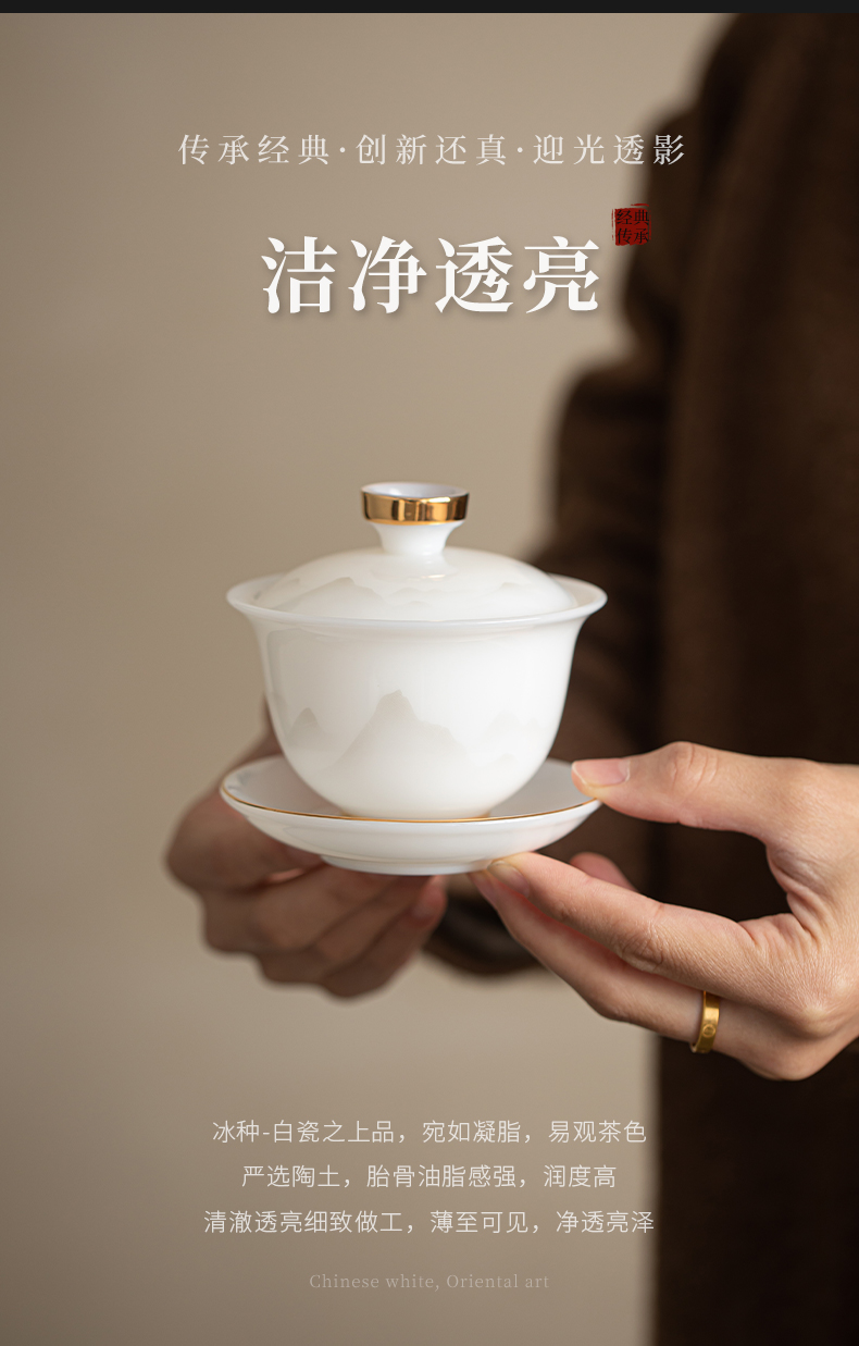 苏氏陶瓷(SUSHI CERAMICS) 冰种淡墨秋山三才盖碗 J1212 盖碗130ml 白色(单位:套)