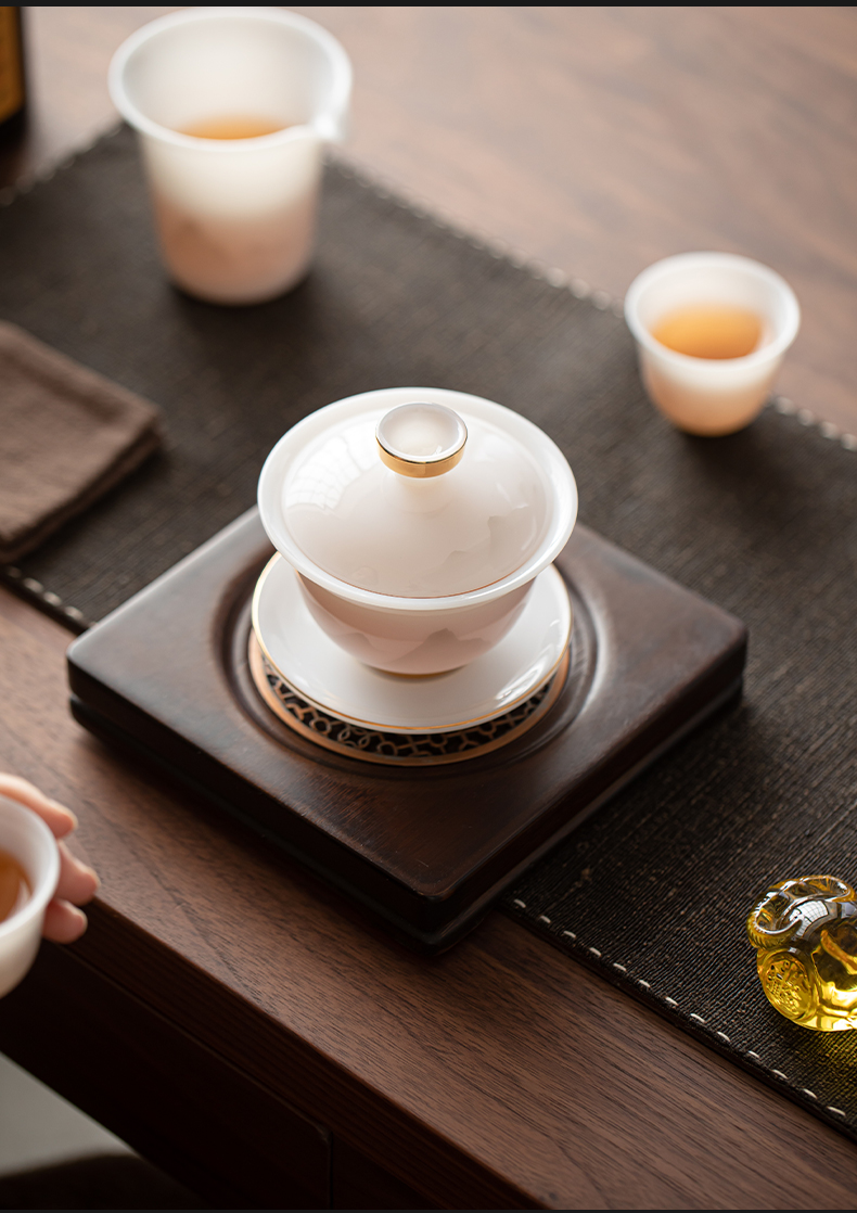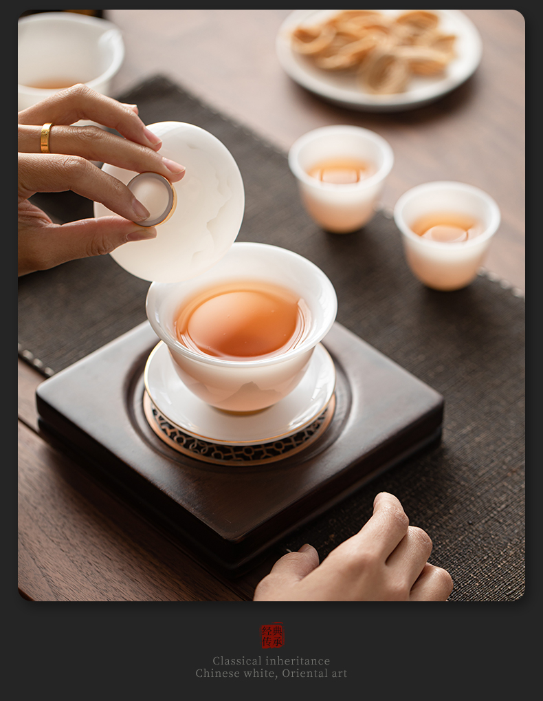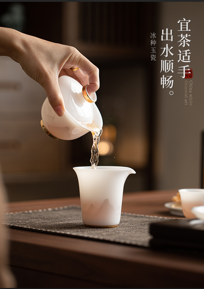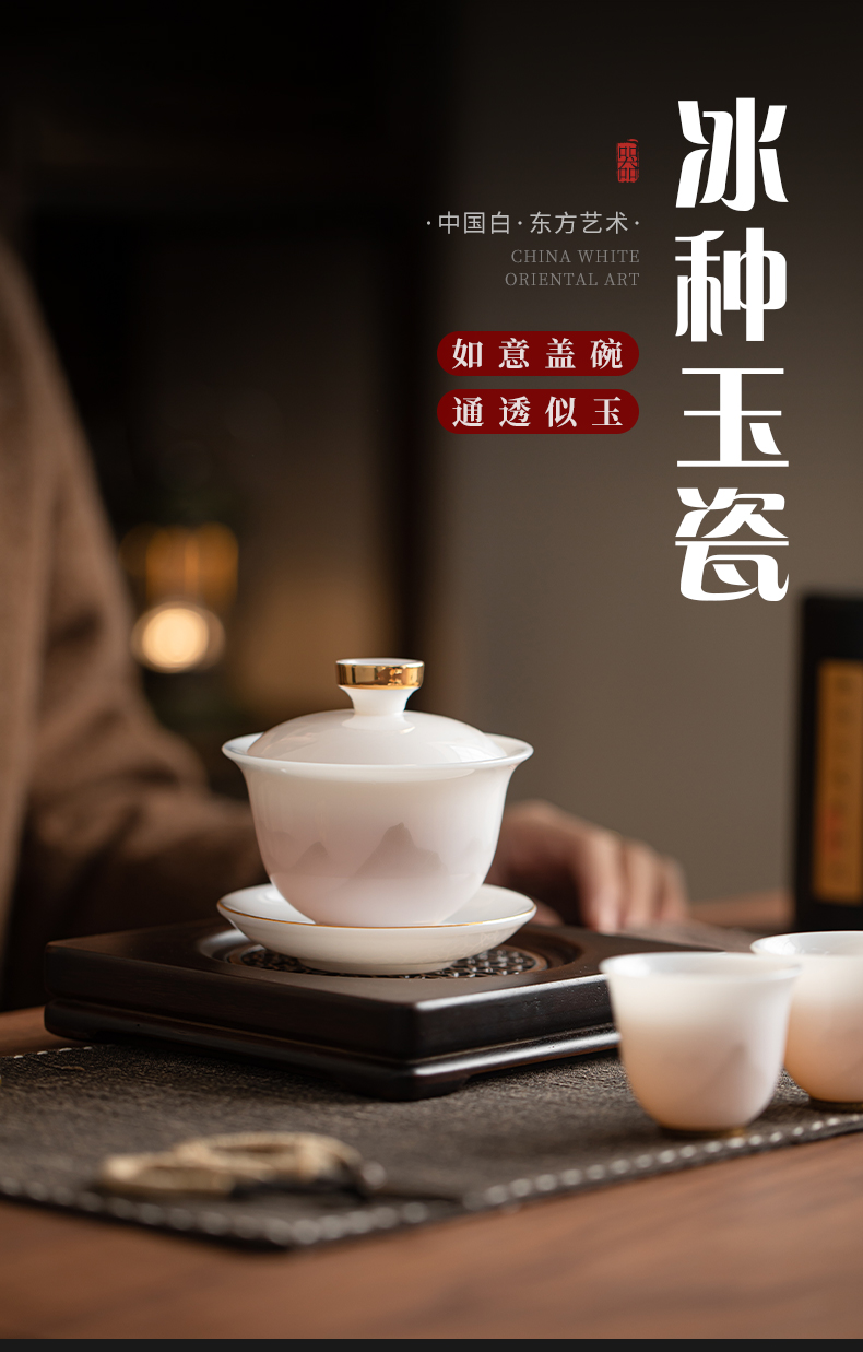 苏氏陶瓷(SUSHI CERAMICS) 冰种淡墨秋山三才盖碗 J1212 盖碗130ml 白色(单位:套)