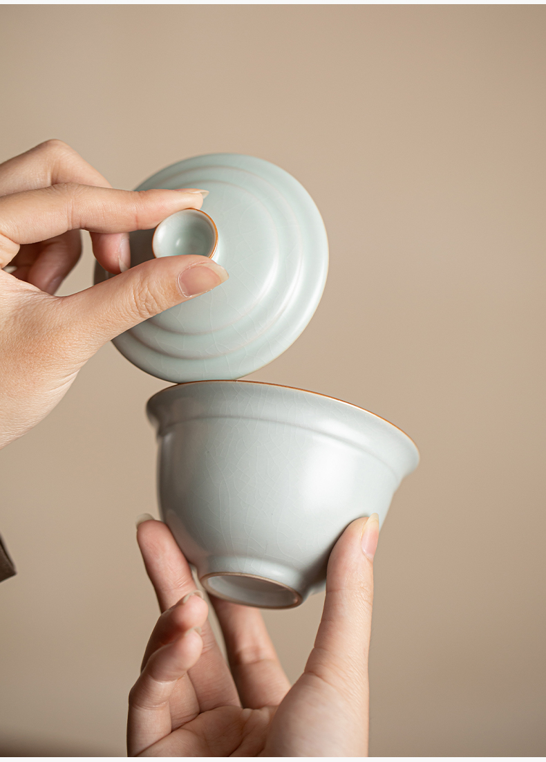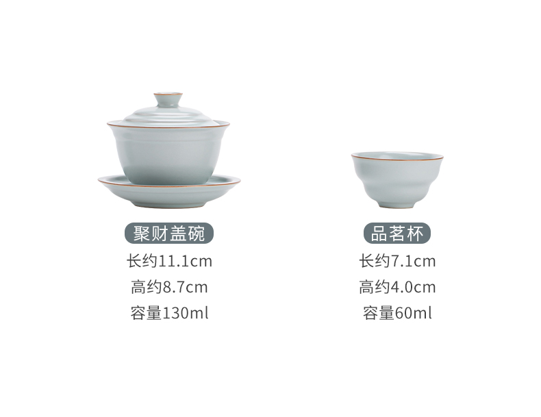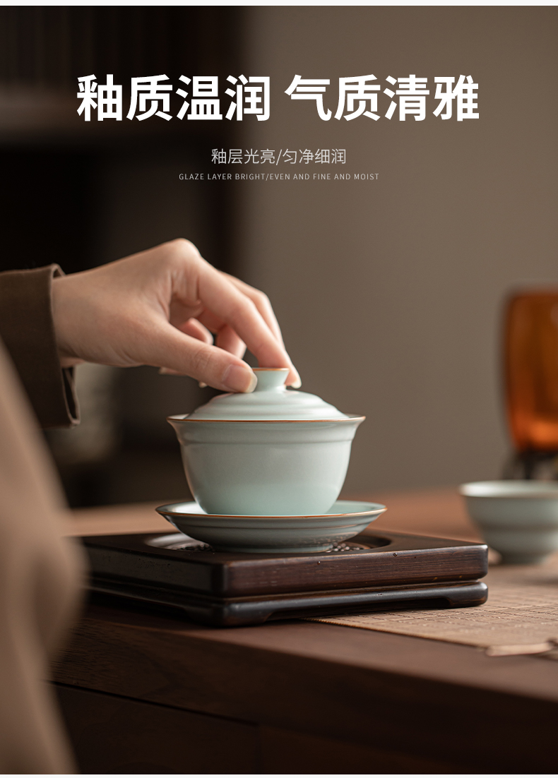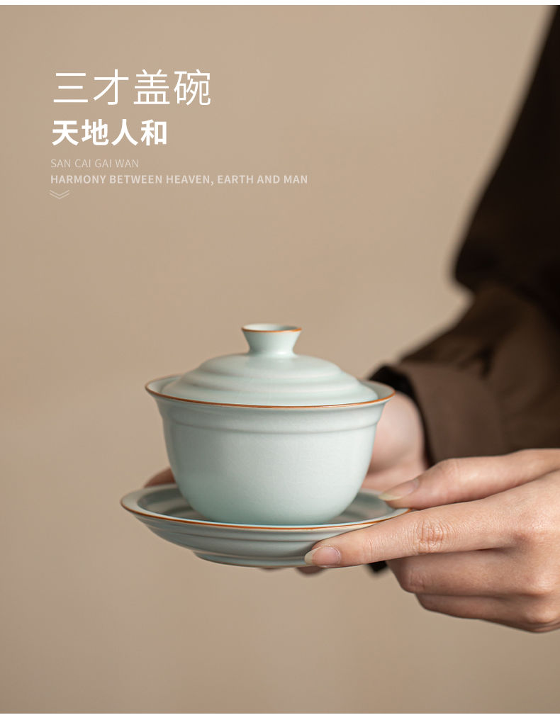 苏氏陶瓷(SUSHI CERAMICS) 汝窑聚财盖碗带两茶杯 J1226 茶具套装3头 蓝色(单位:套)
