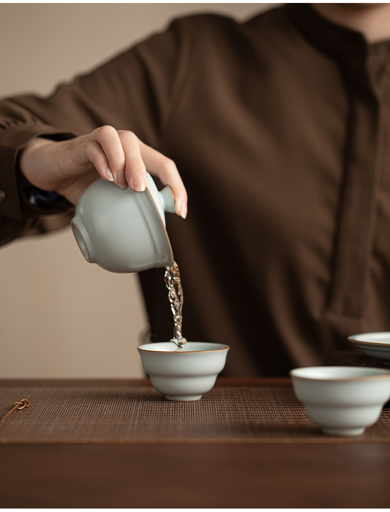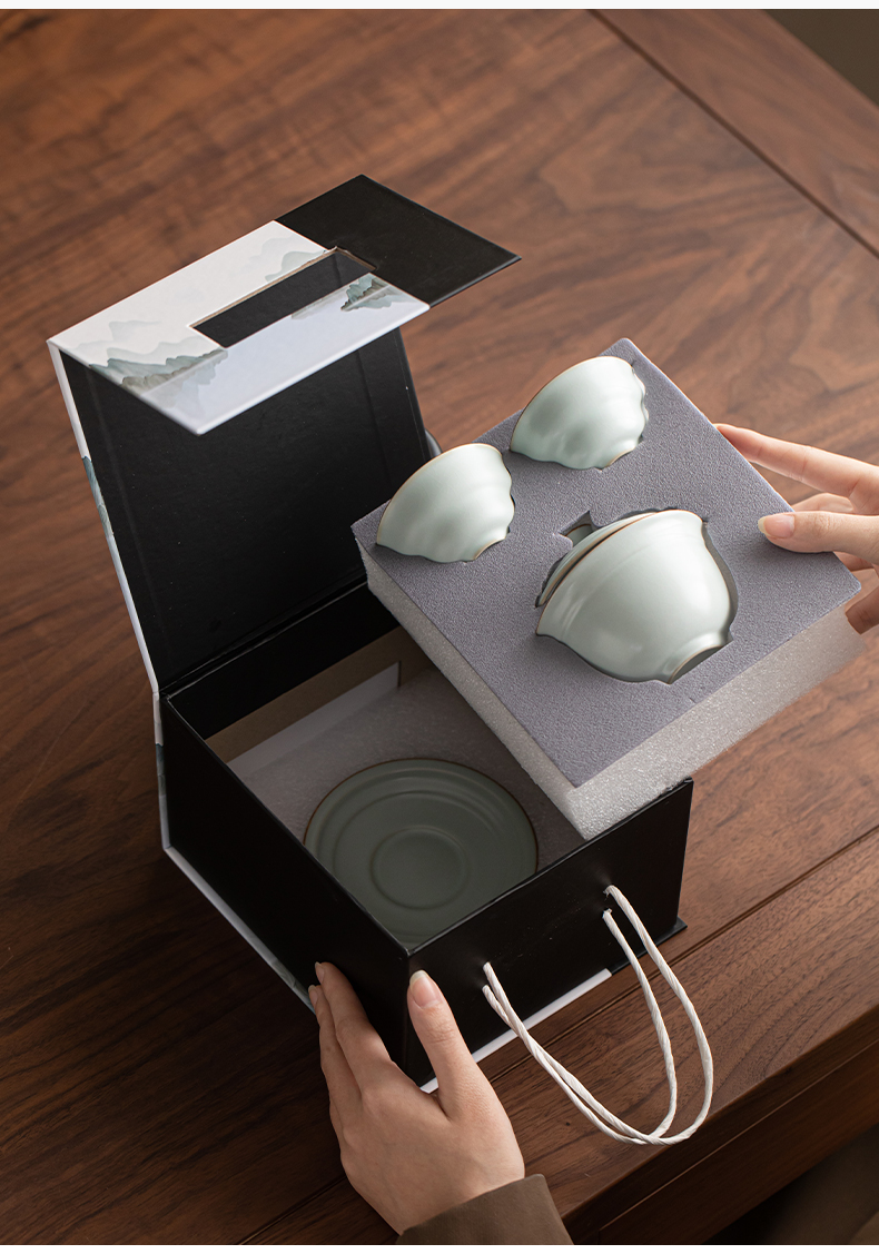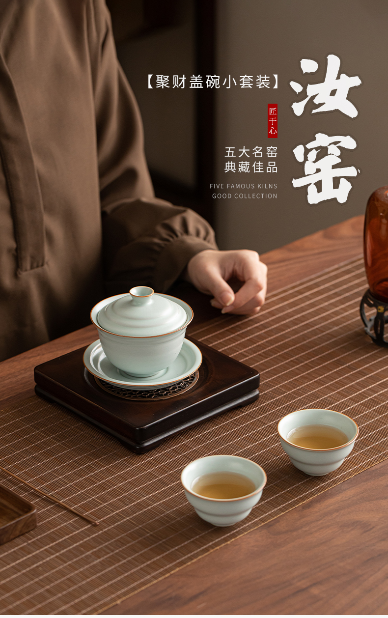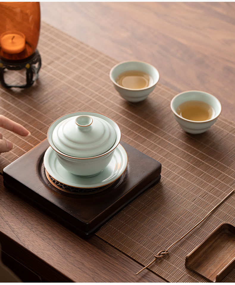 苏氏陶瓷(SUSHI CERAMICS) 汝窑聚财盖碗带两茶杯 J1226 茶具套装3头 蓝色(单位:套)