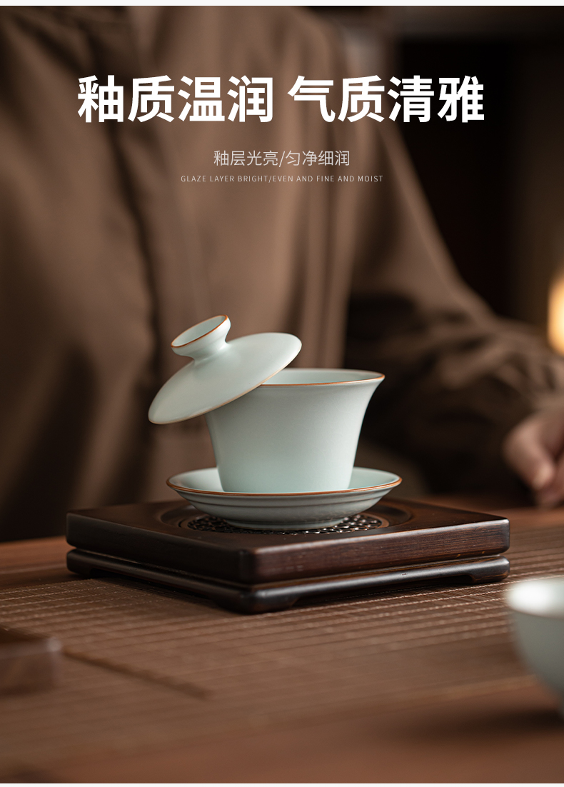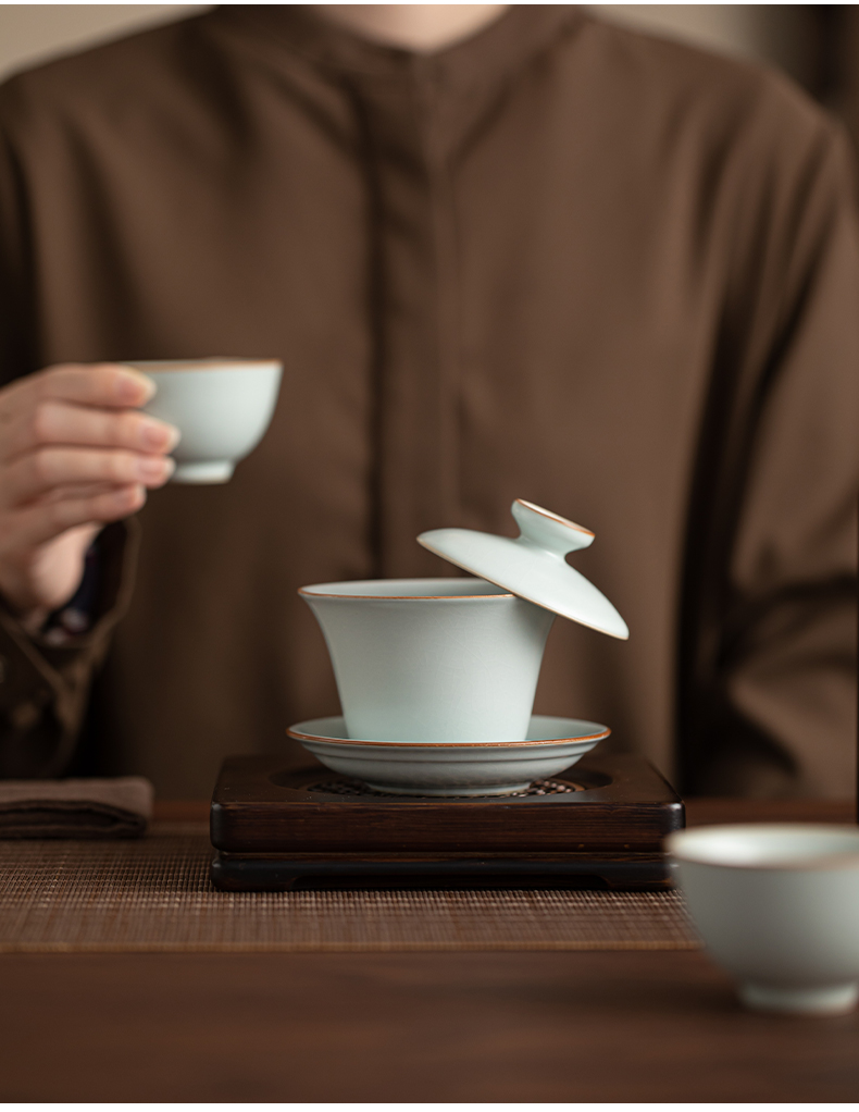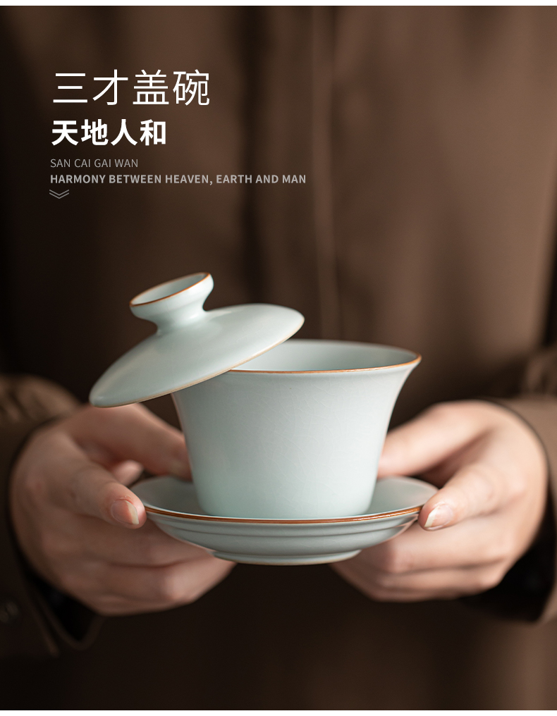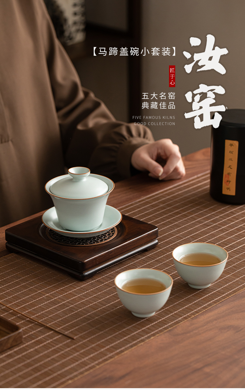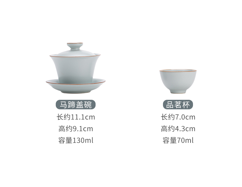 苏氏陶瓷(SUSHI CERAMICS) 汝窑马蹄盖碗带两茶杯 J1227 茶具套装*3头 蓝色(单位:套)