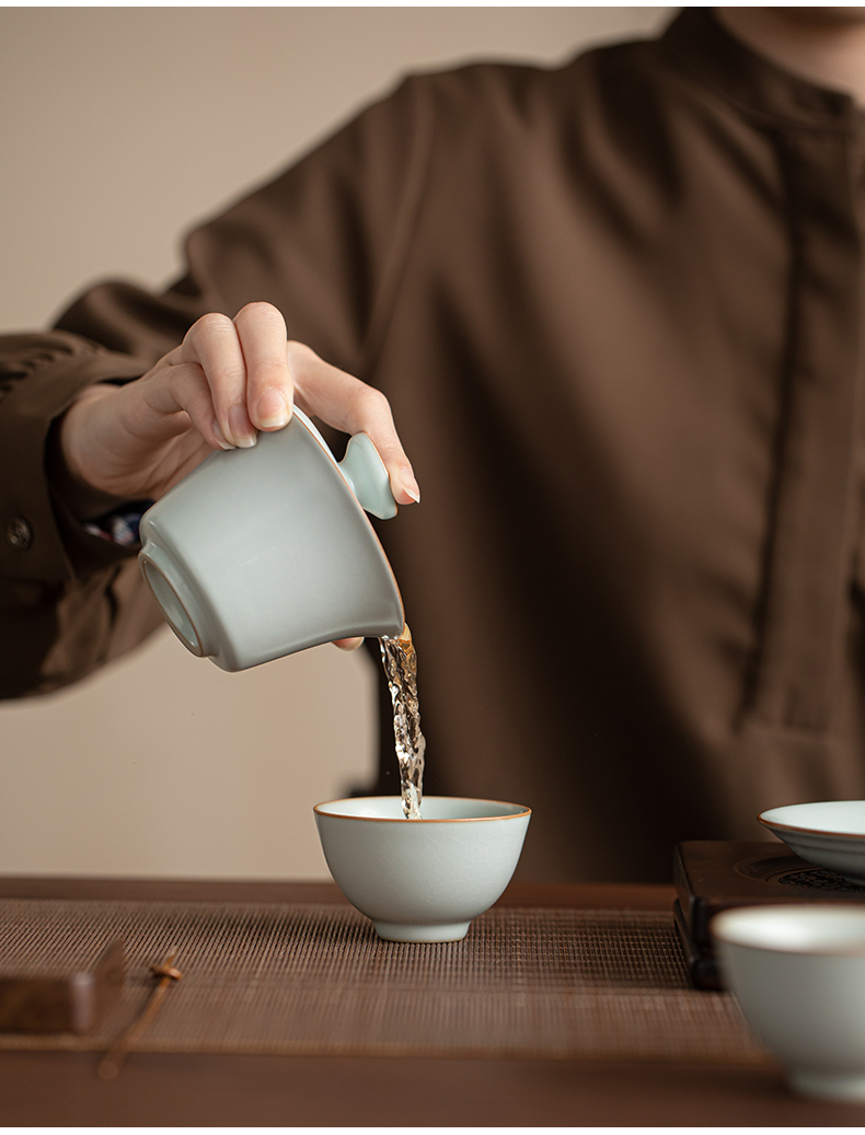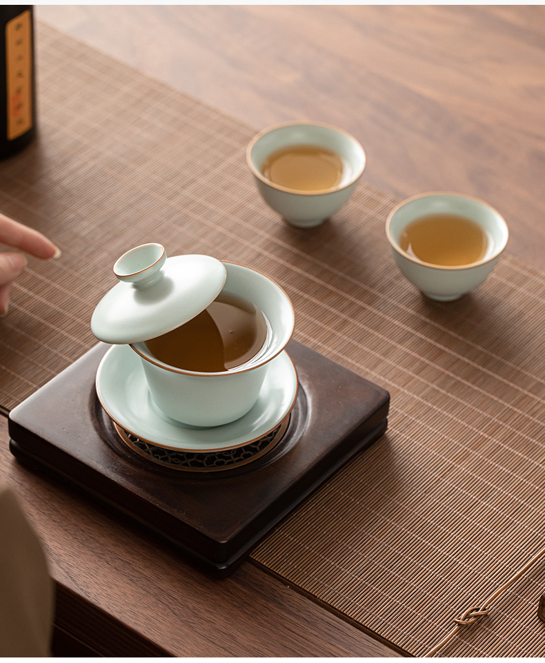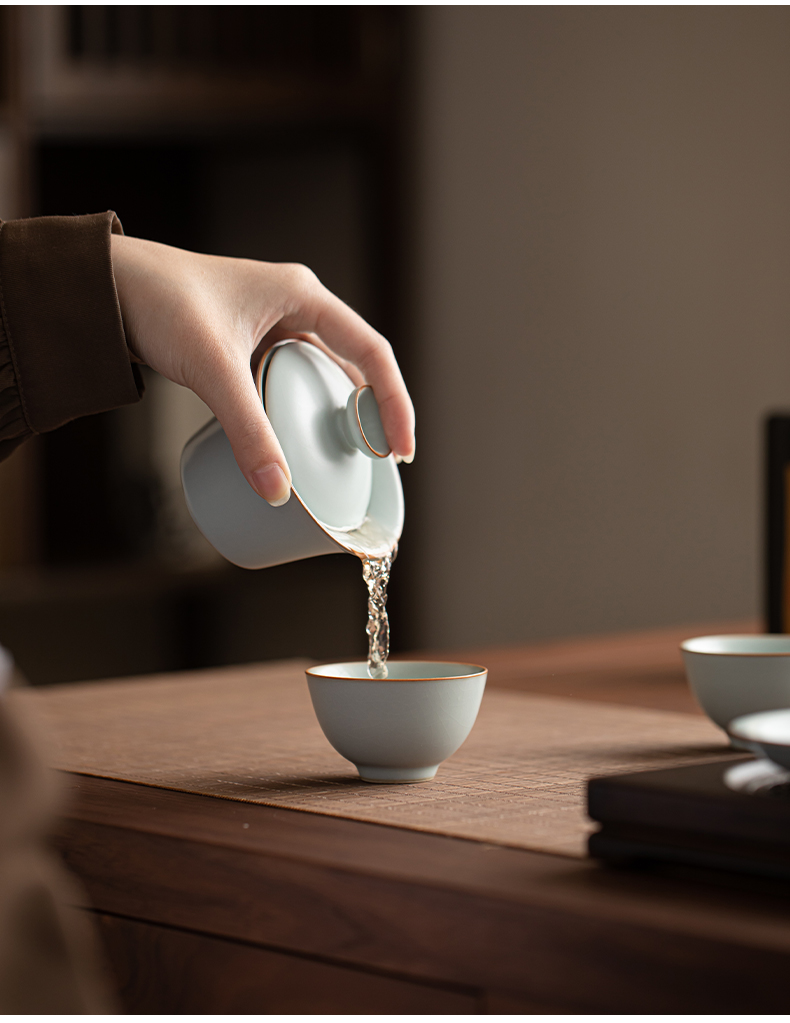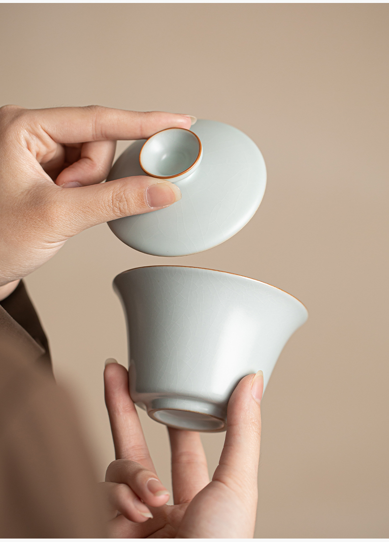 苏氏陶瓷(SUSHI CERAMICS) 汝窑马蹄盖碗带两茶杯 J1227 茶具套装*3头 蓝色(单位:套)