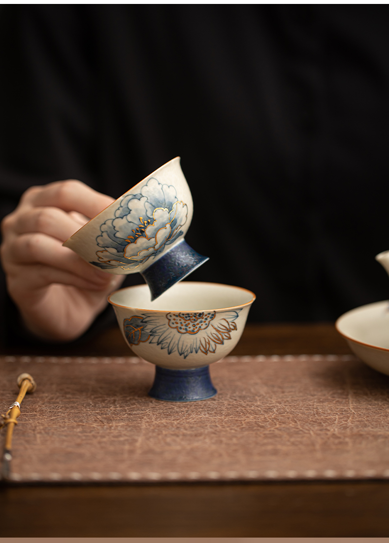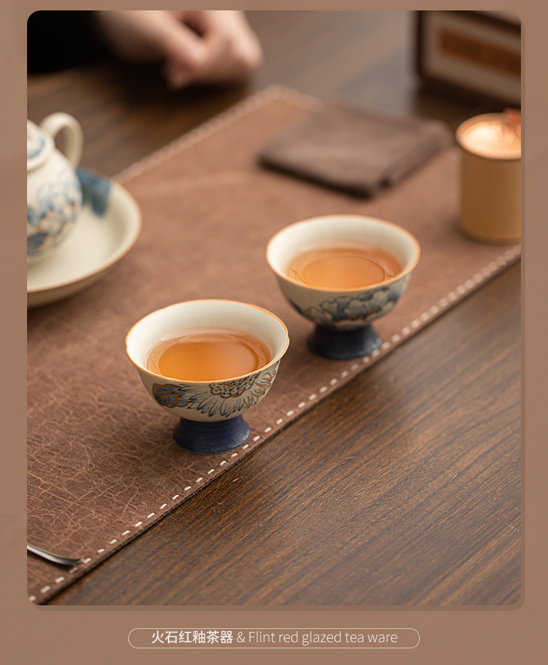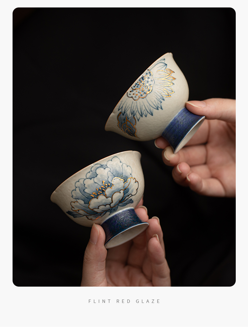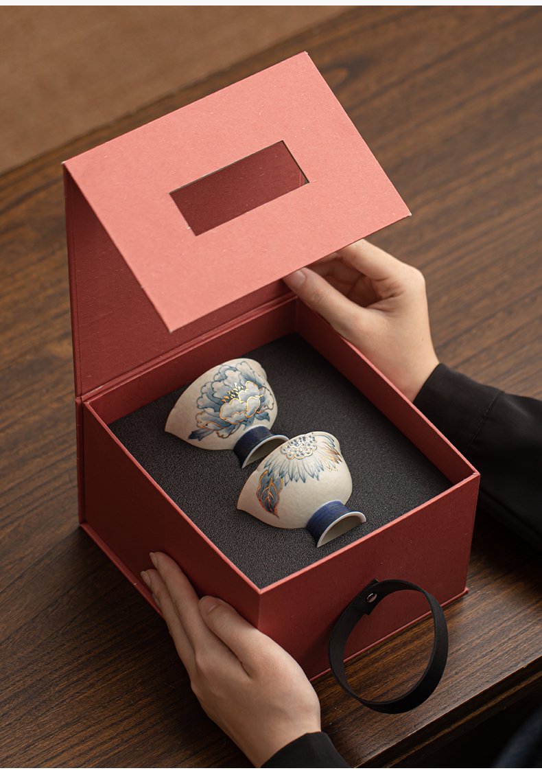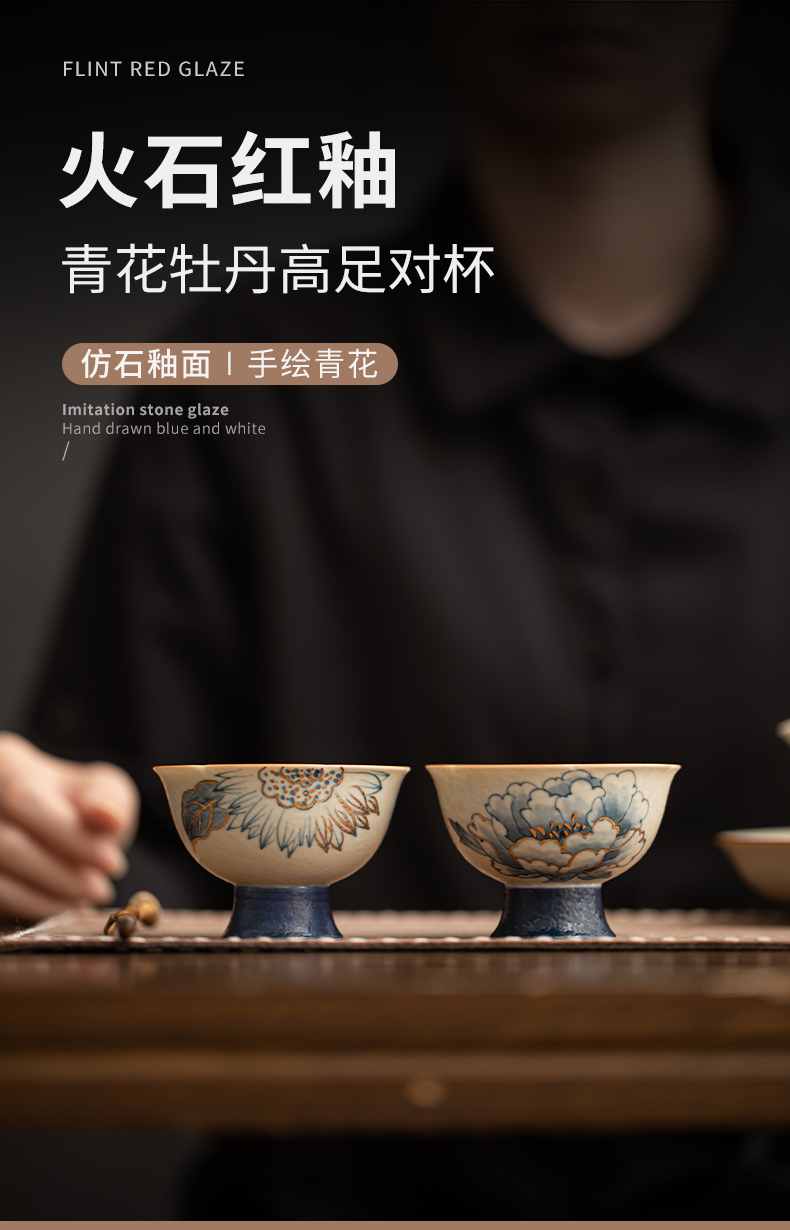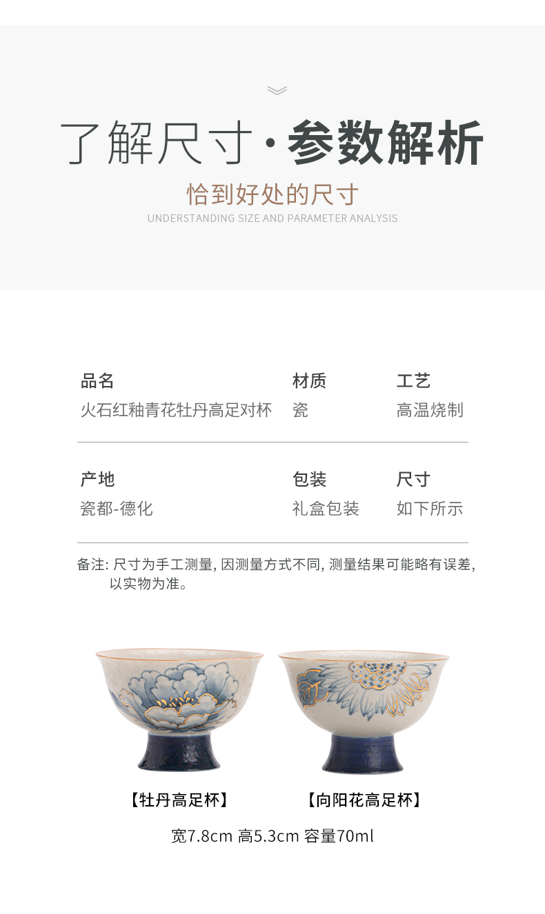苏氏陶瓷(SUSHI CERAMICS) 牡丹火石红釉高足对杯 J1256 茶杯70ml*2个 浅灰色(单位:套)