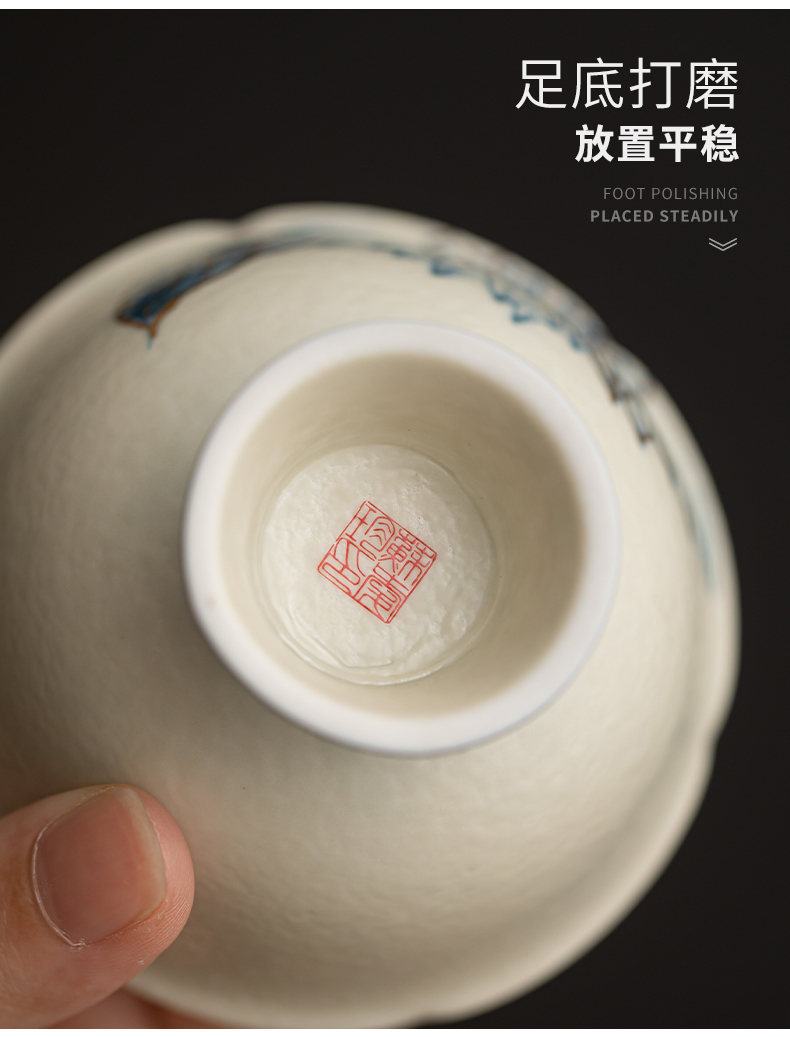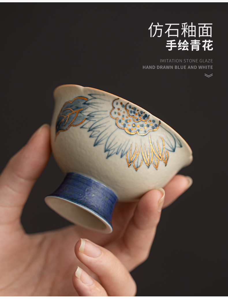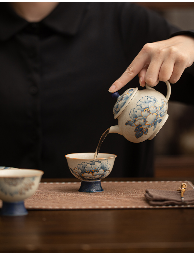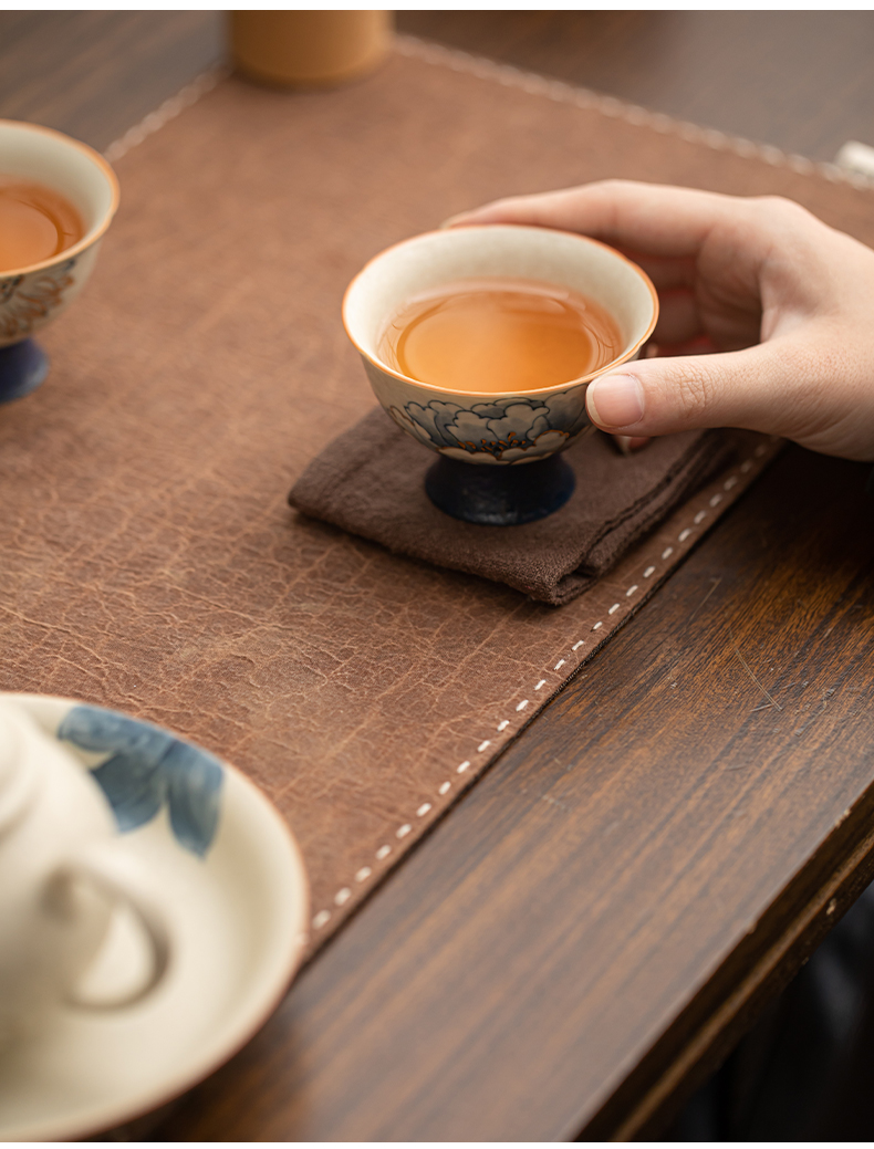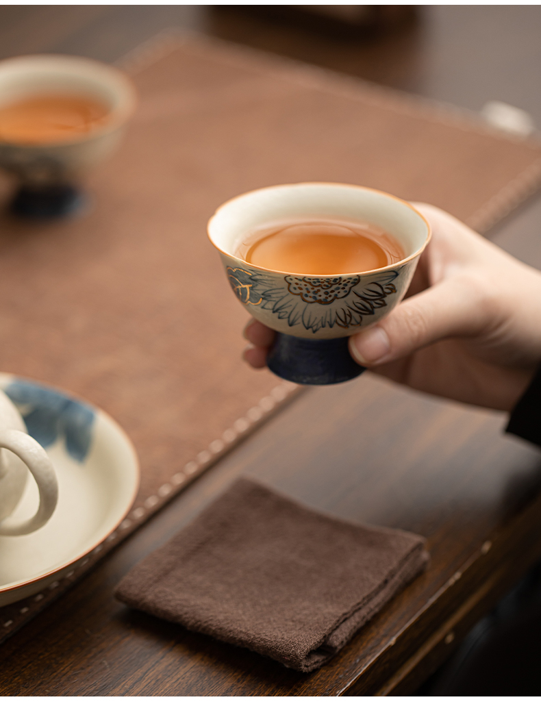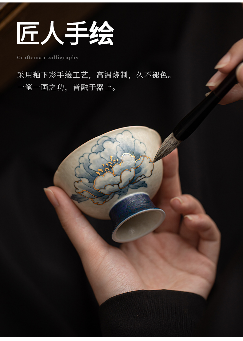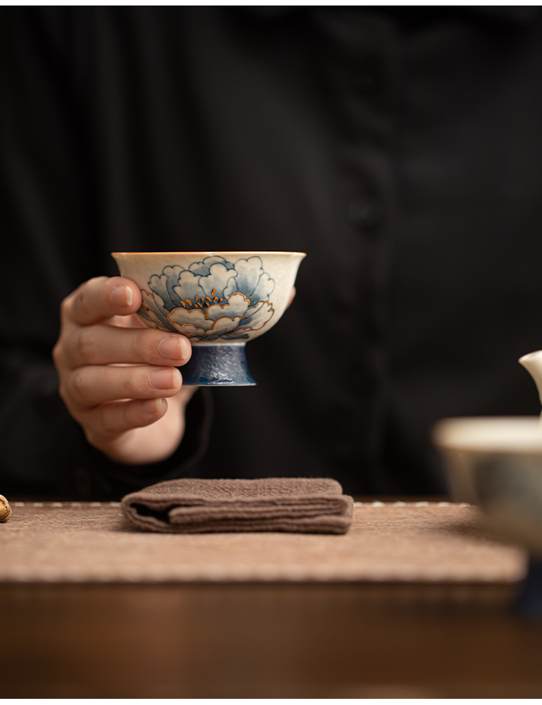 苏氏陶瓷(SUSHI CERAMICS) 牡丹火石红釉高足对杯 J1256 茶杯70ml*2个 浅灰色(单位:套)