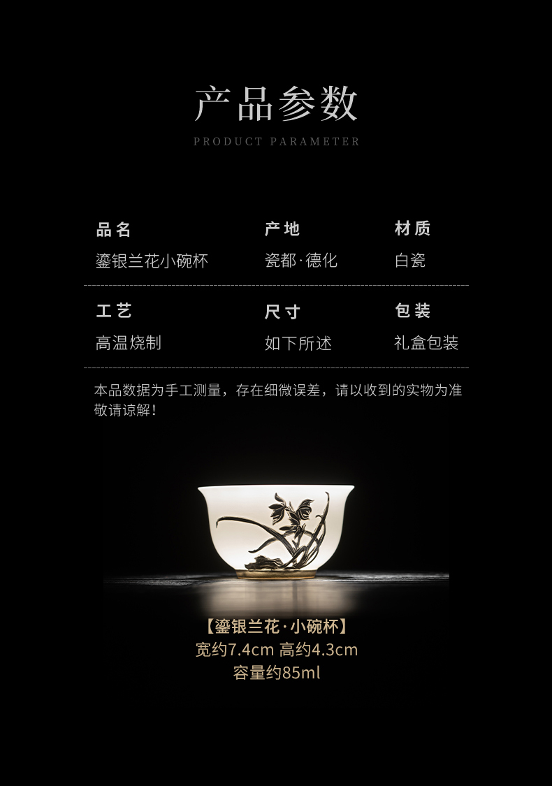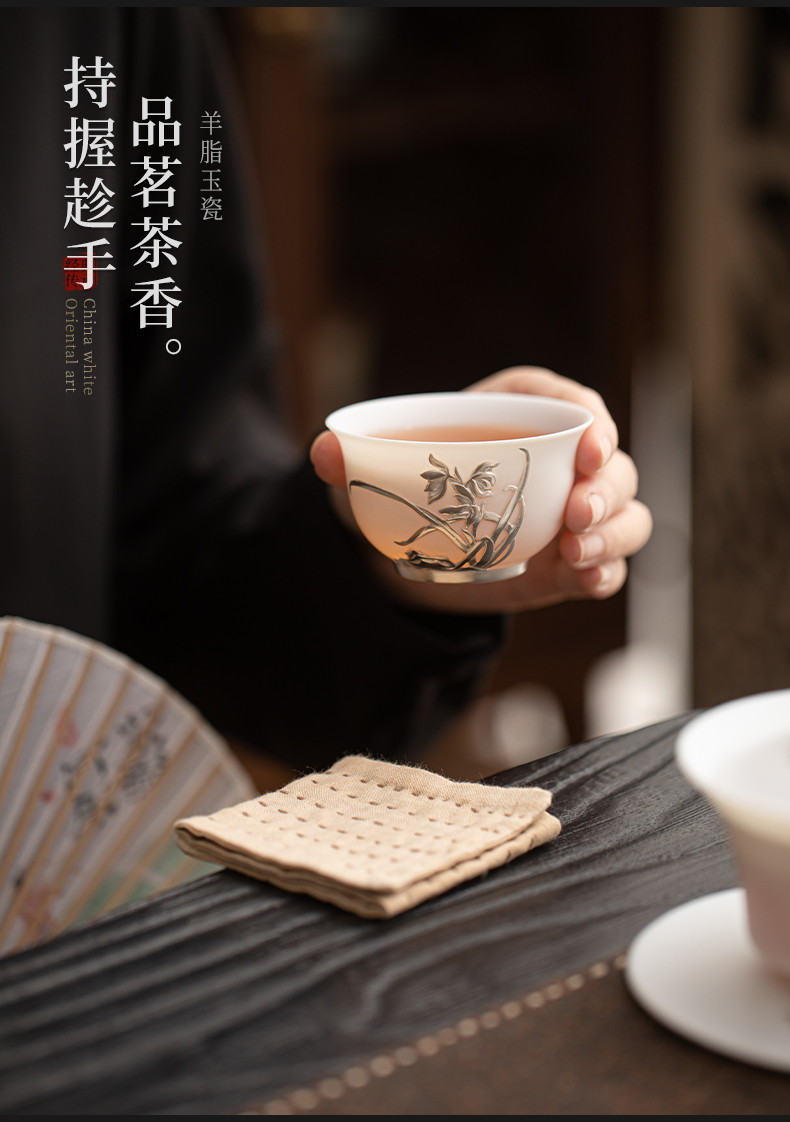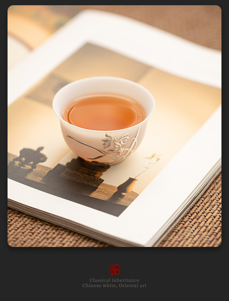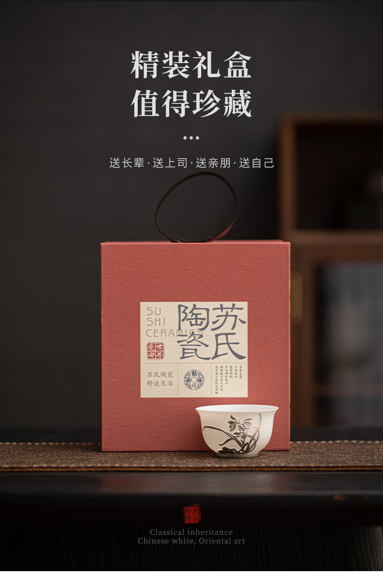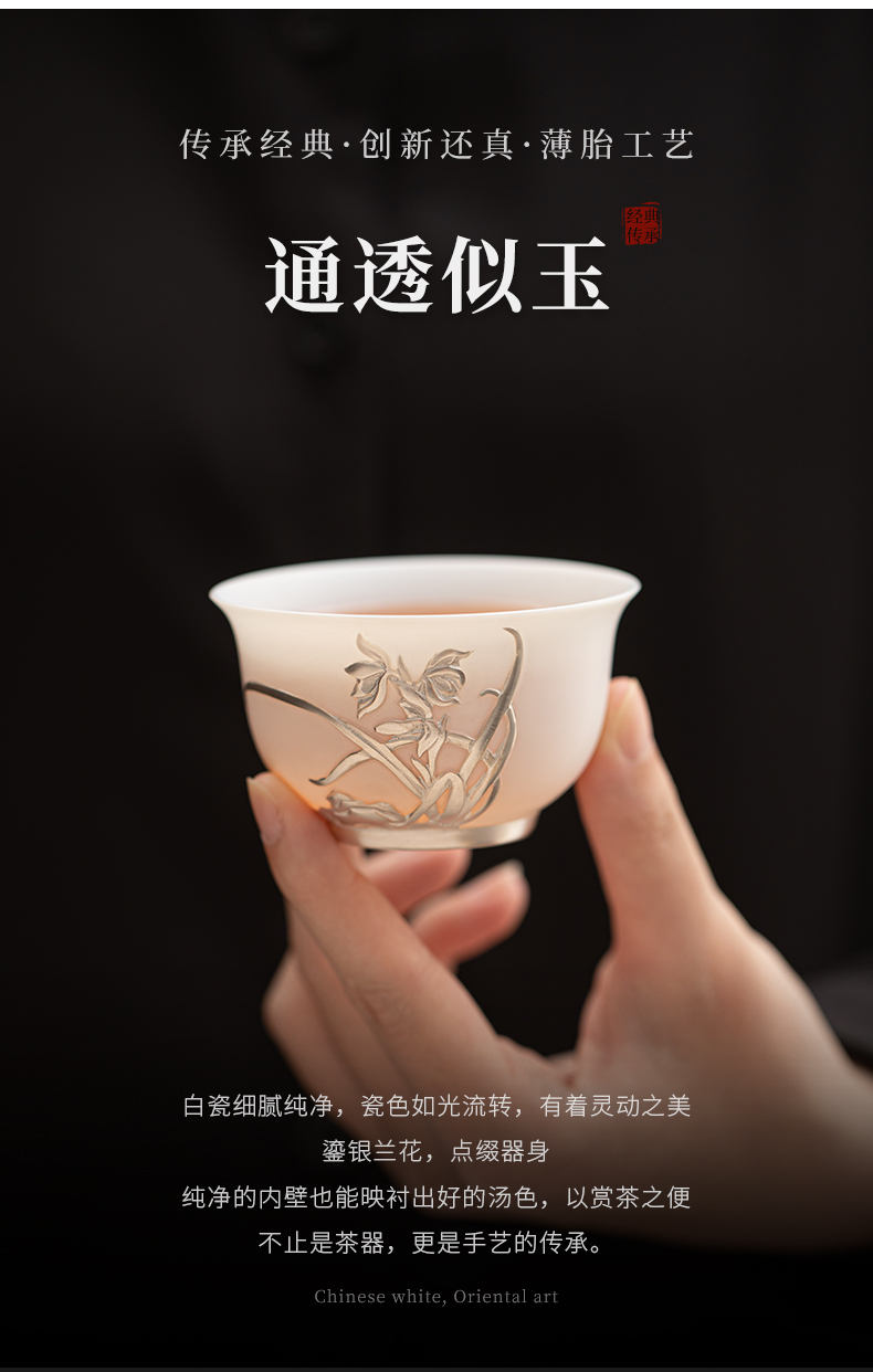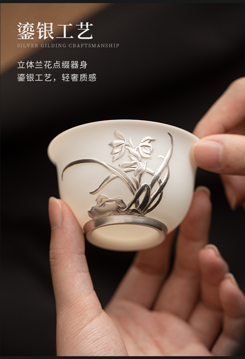 苏氏陶瓷(SUSHI CERAMICS) 玉瓷鎏银兰花主人杯 J1269 茶杯85ml 白色(单位:个)