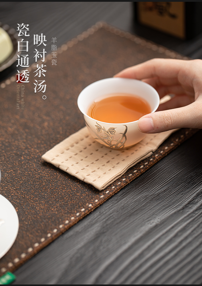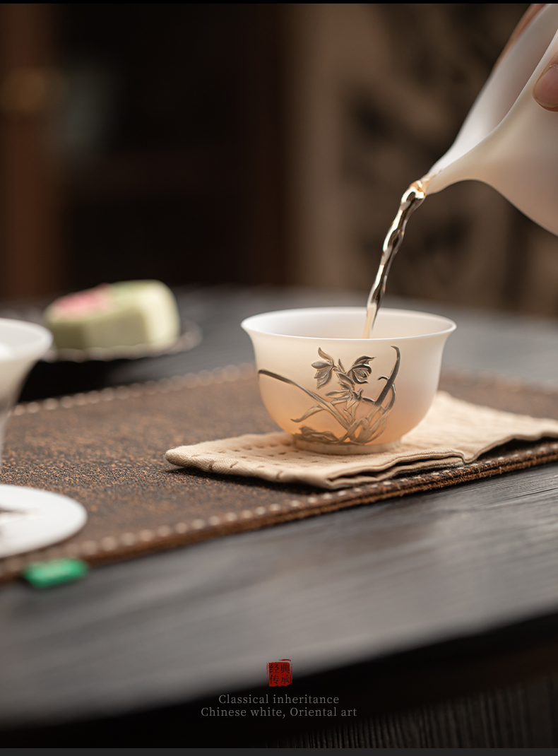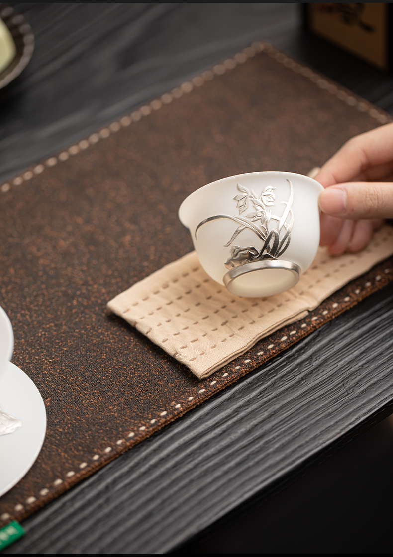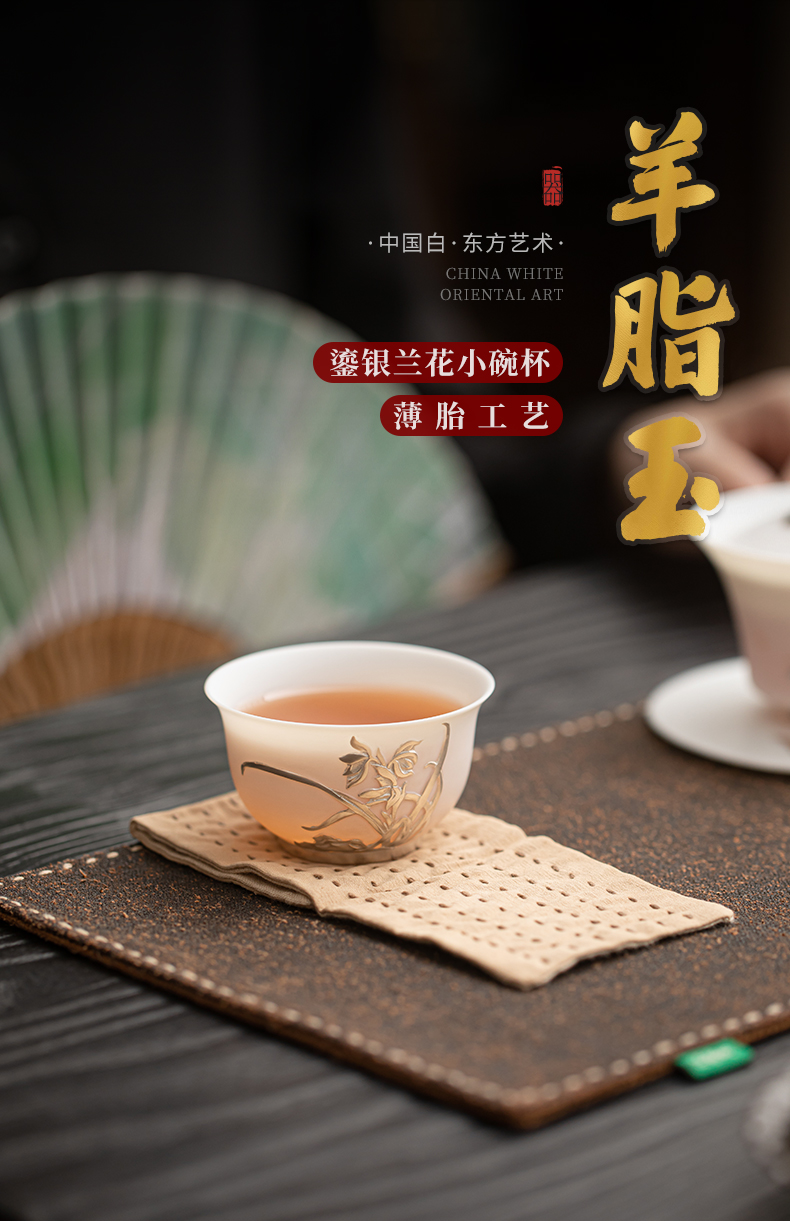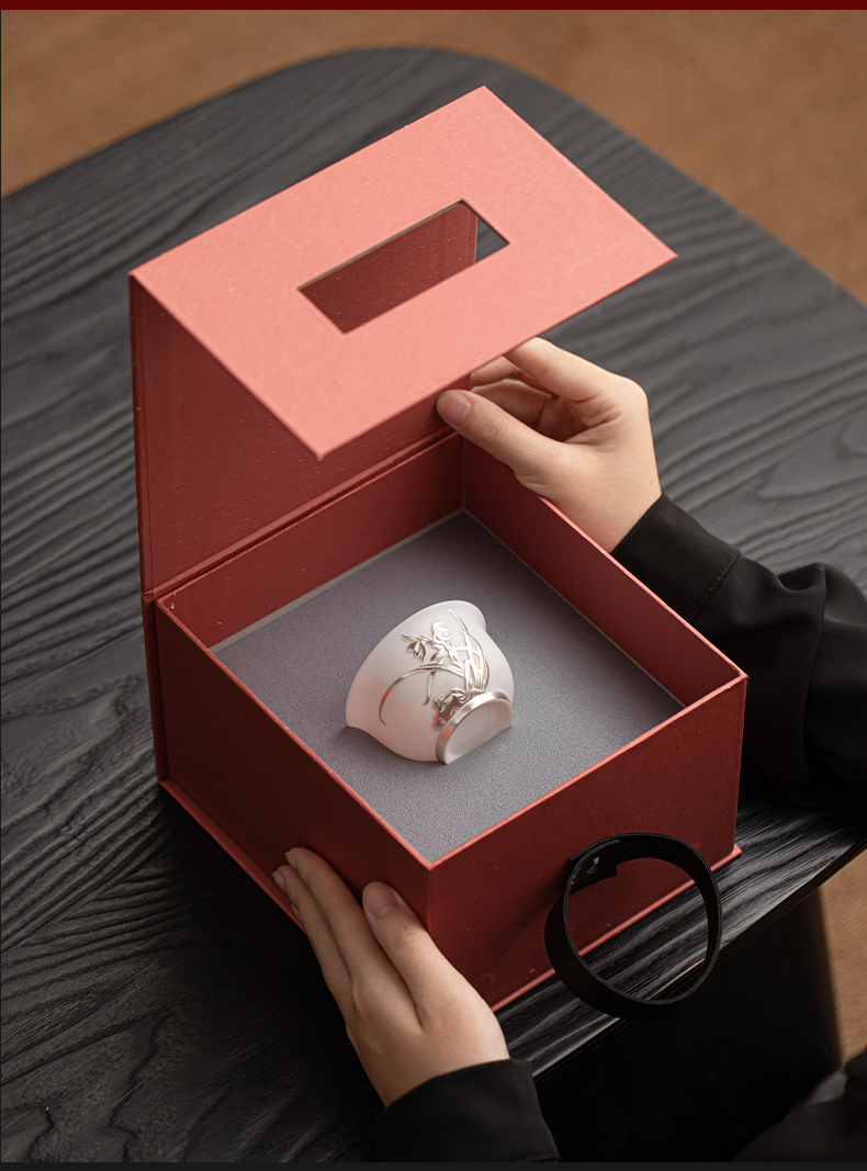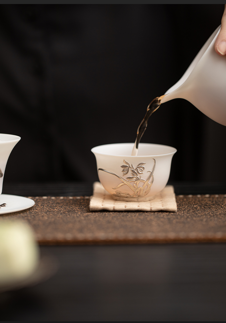 苏氏陶瓷(SUSHI CERAMICS) 玉瓷鎏银兰花主人杯 J1269 茶杯85ml 白色(单位:个)