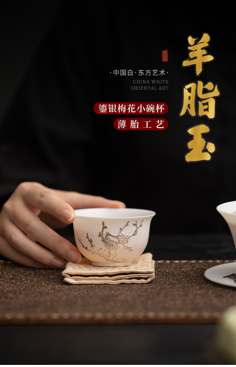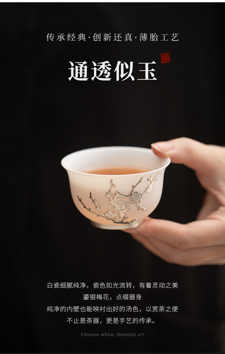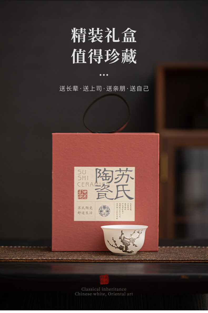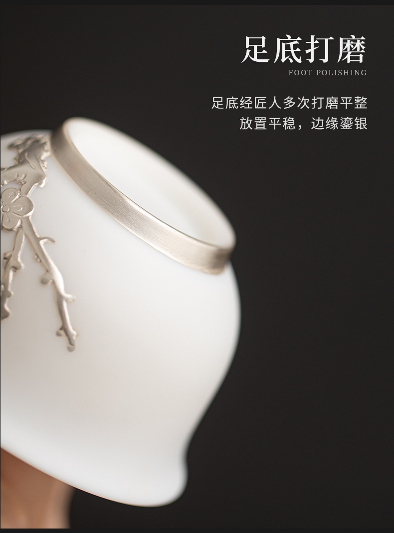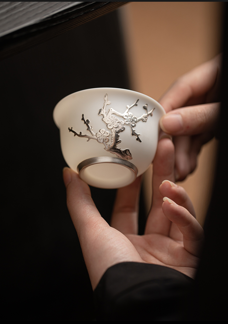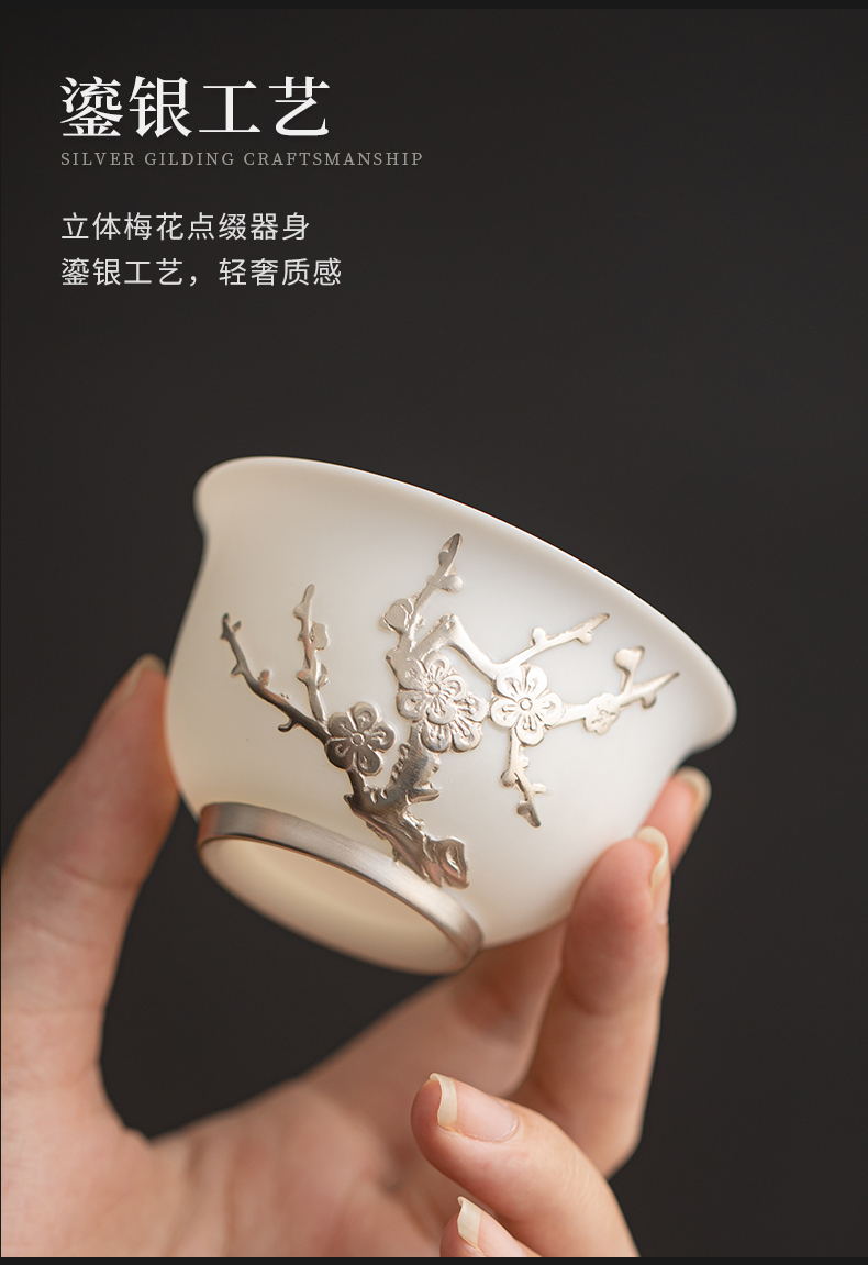 苏氏陶瓷(SUSHI CERAMICS) 玉瓷鎏银梅花主人杯 J1270 茶杯85ml*1 白色(单位:个)