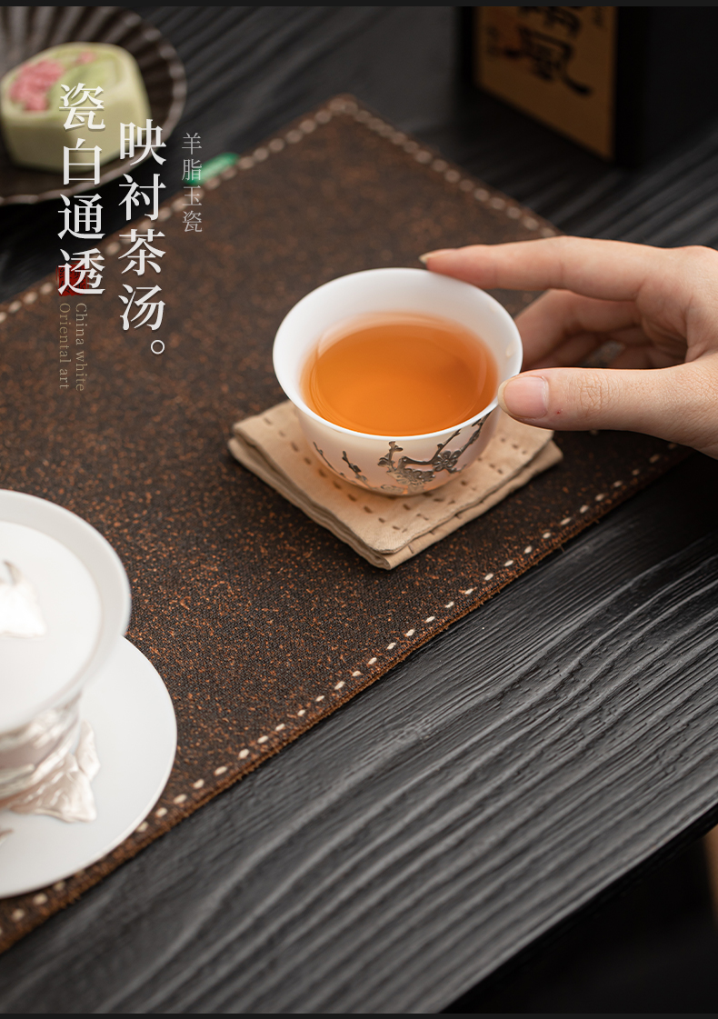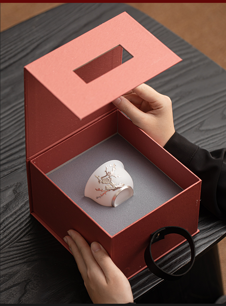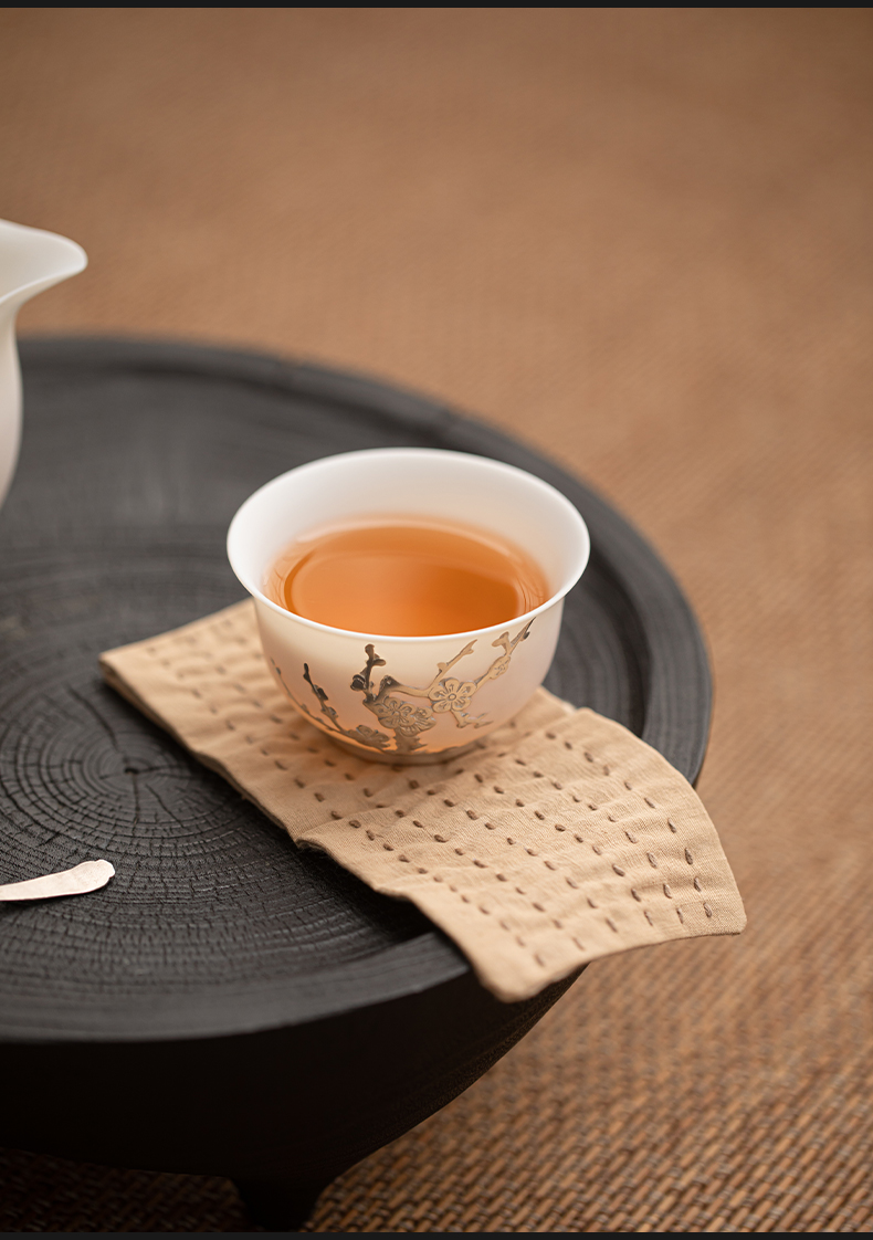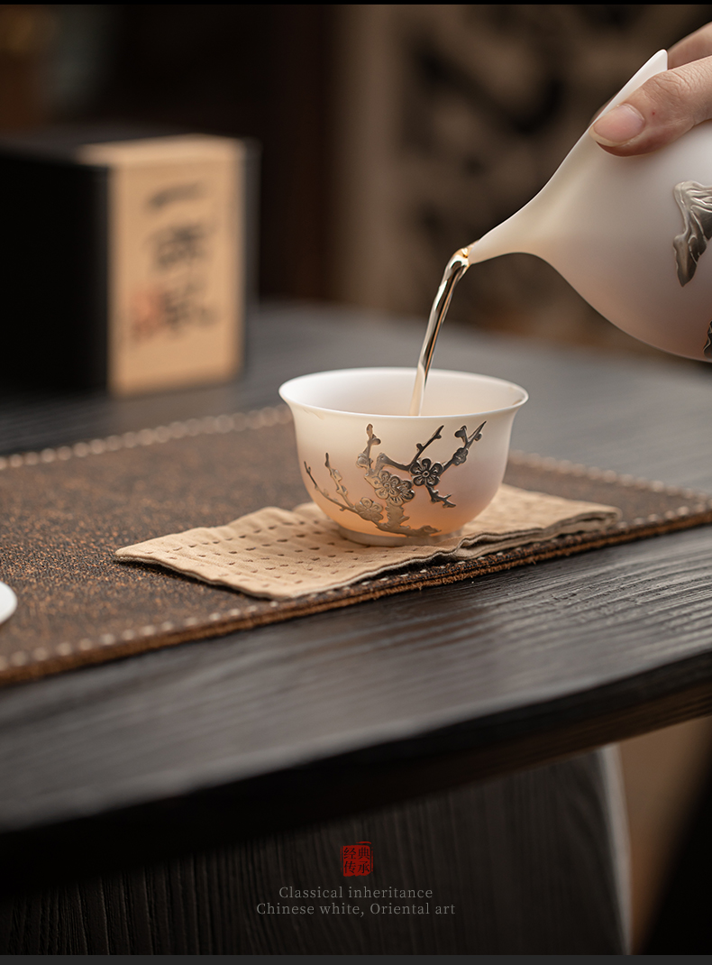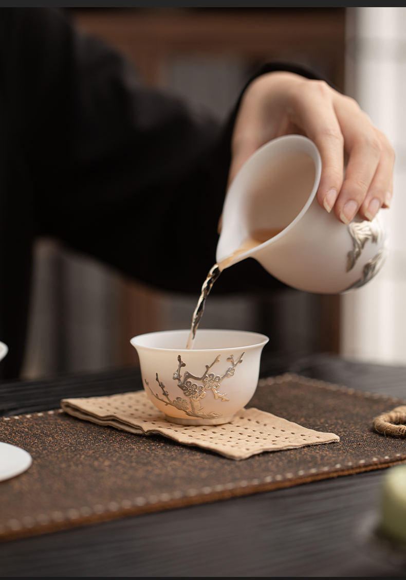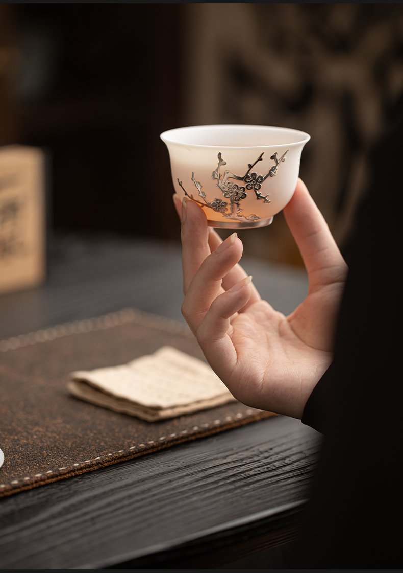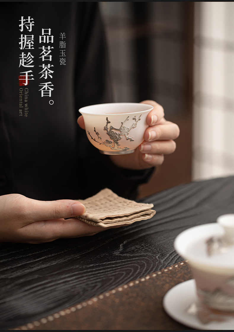 苏氏陶瓷(SUSHI CERAMICS) 玉瓷鎏银梅花主人杯 J1270 茶杯85ml*1 白色(单位:个)