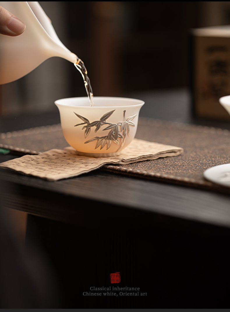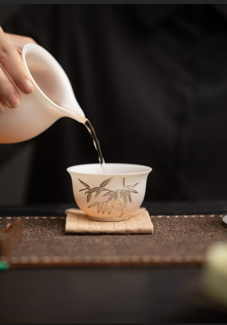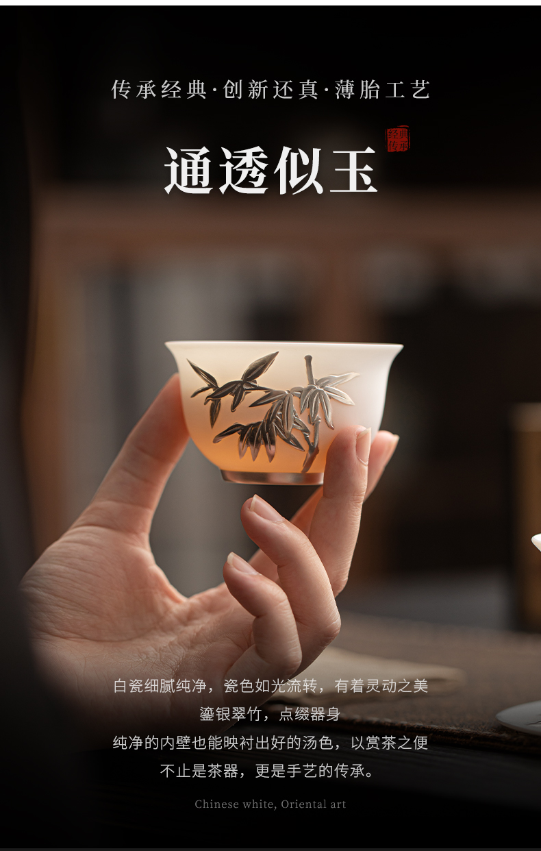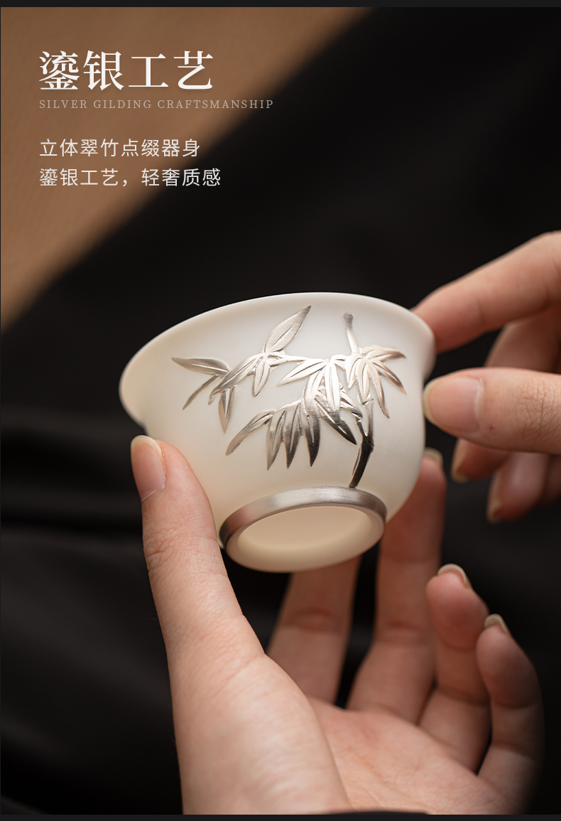 苏氏陶瓷(SUSHI CERAMICS) 玉瓷鎏银翠竹主人杯 J1262 茶杯85ml*1 白色(单位:个)