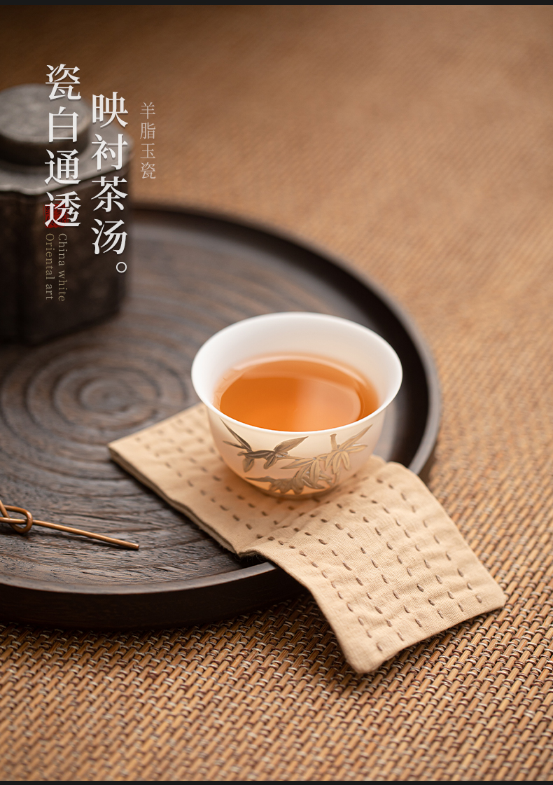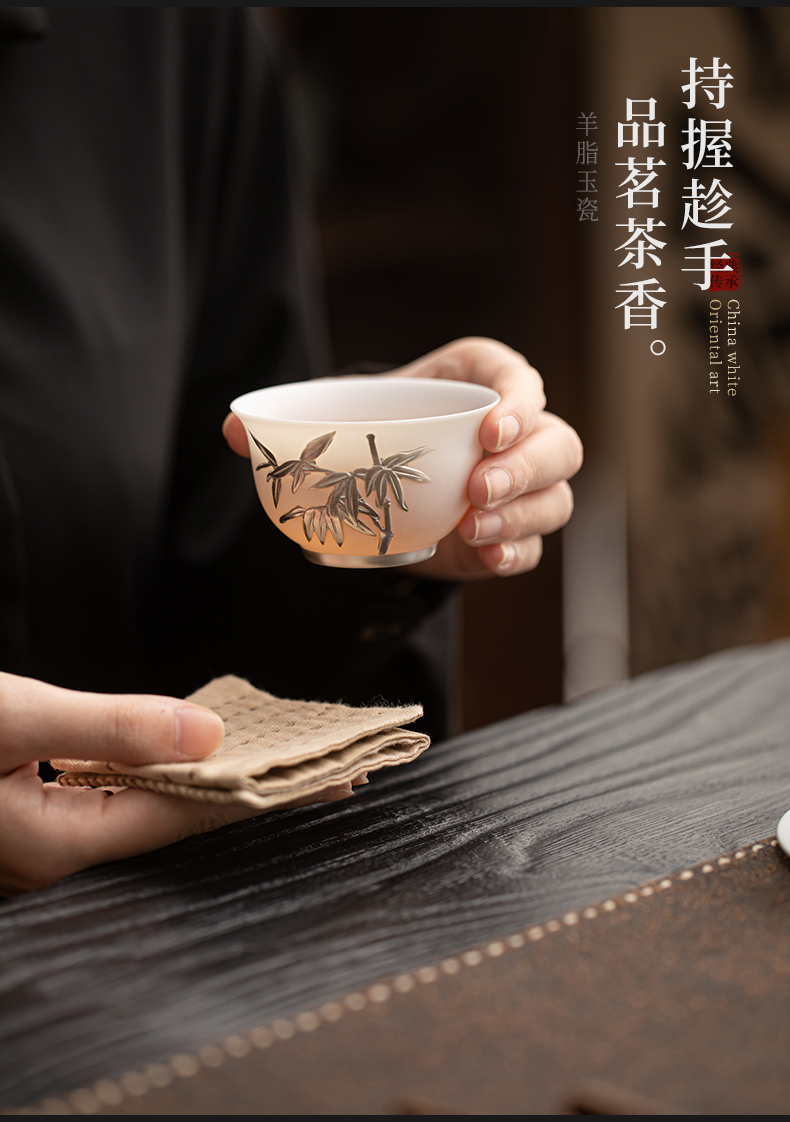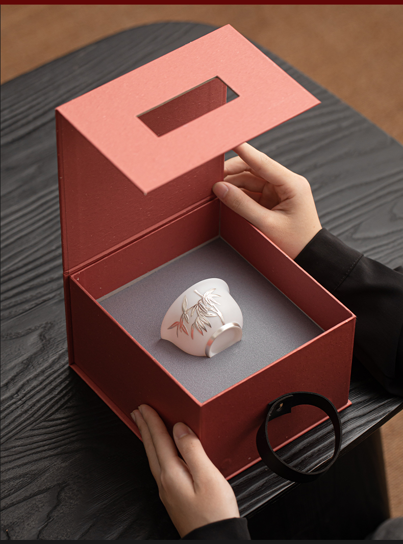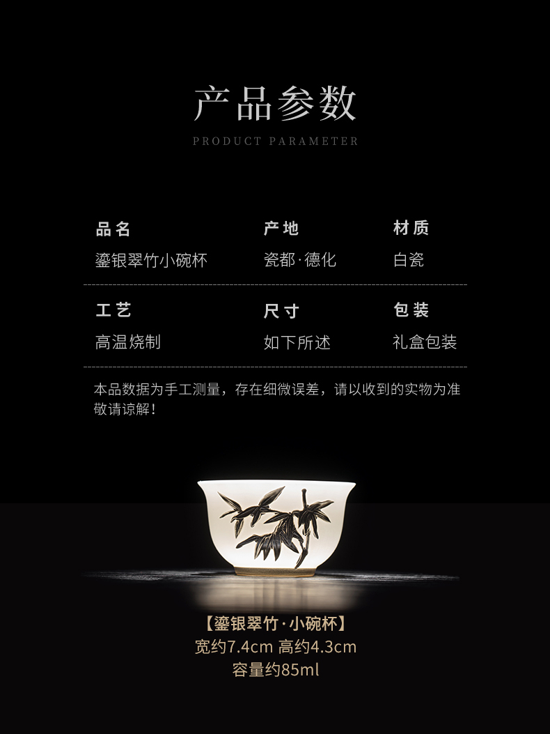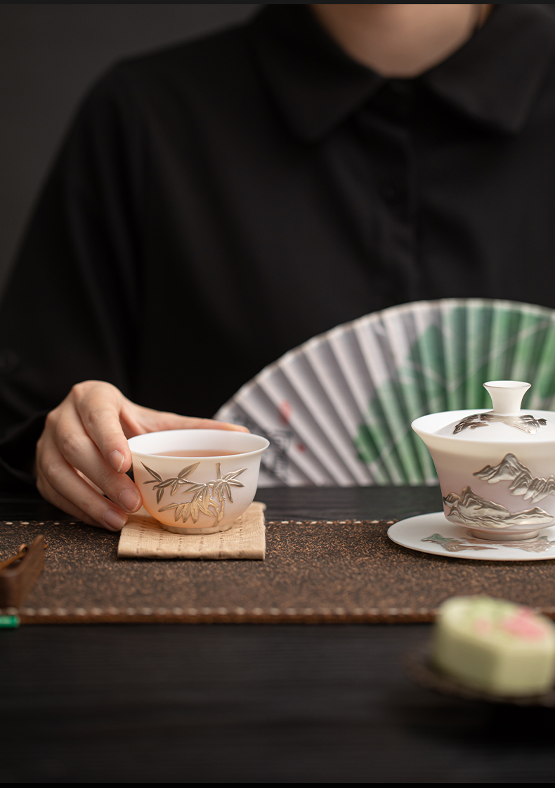 苏氏陶瓷(SUSHI CERAMICS) 玉瓷鎏银翠竹主人杯 J1262 茶杯85ml*1 白色(单位:个)